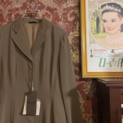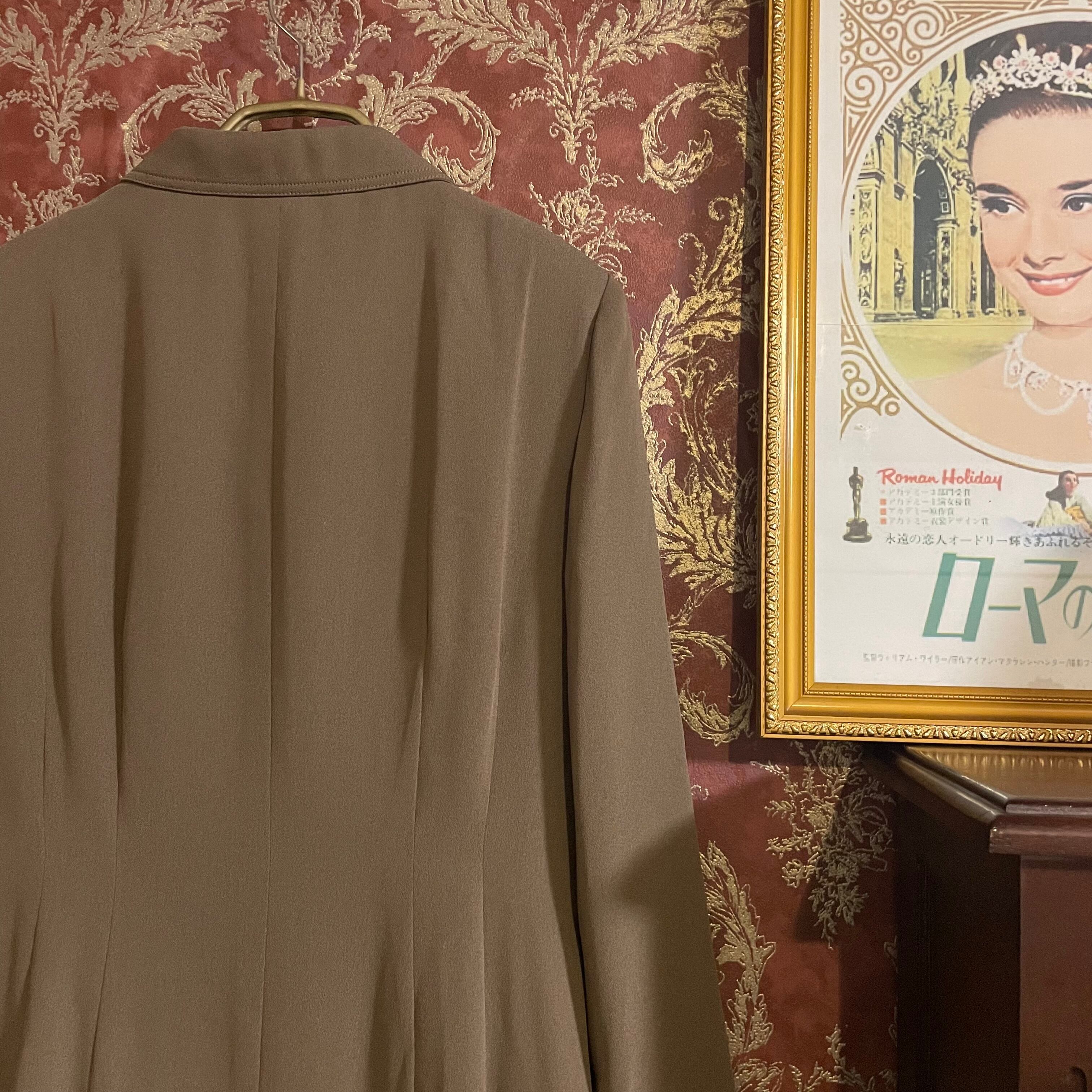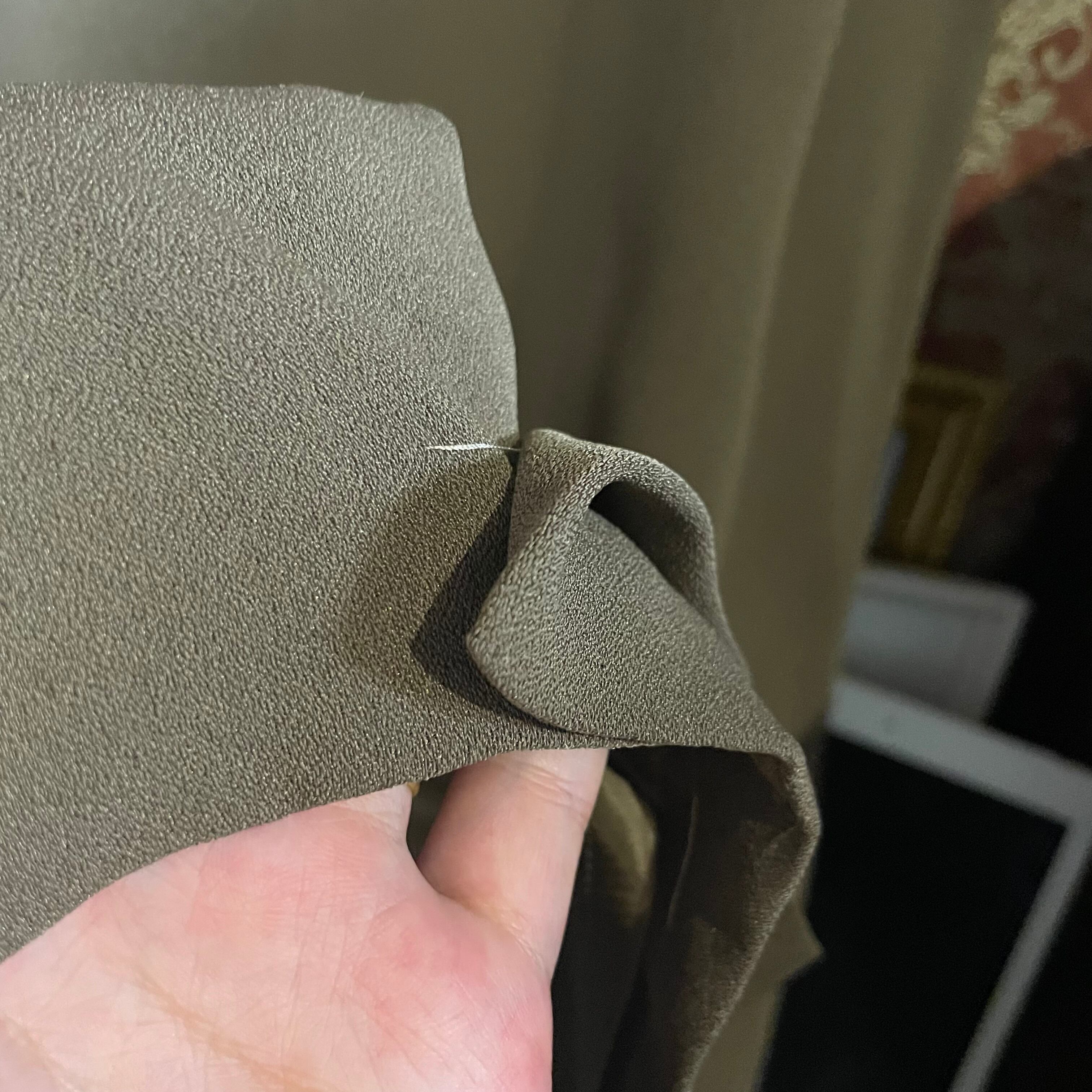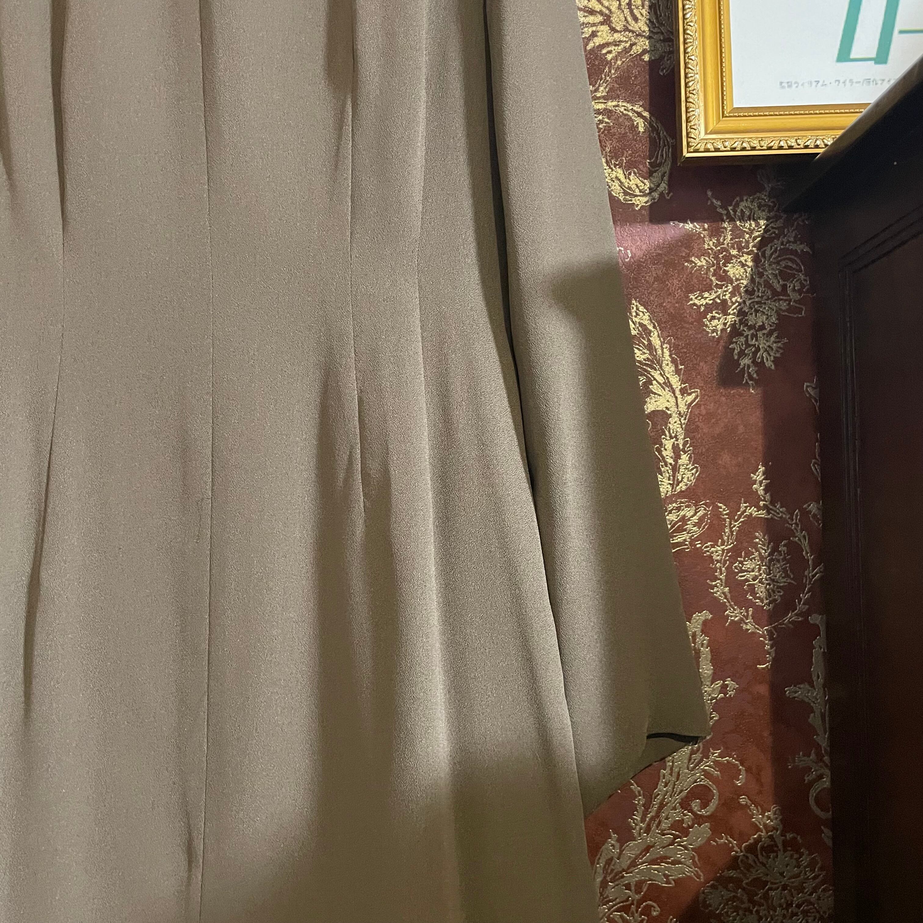 後ろに深いスリットが入っていますが新品のためしつけ糸が付いています。