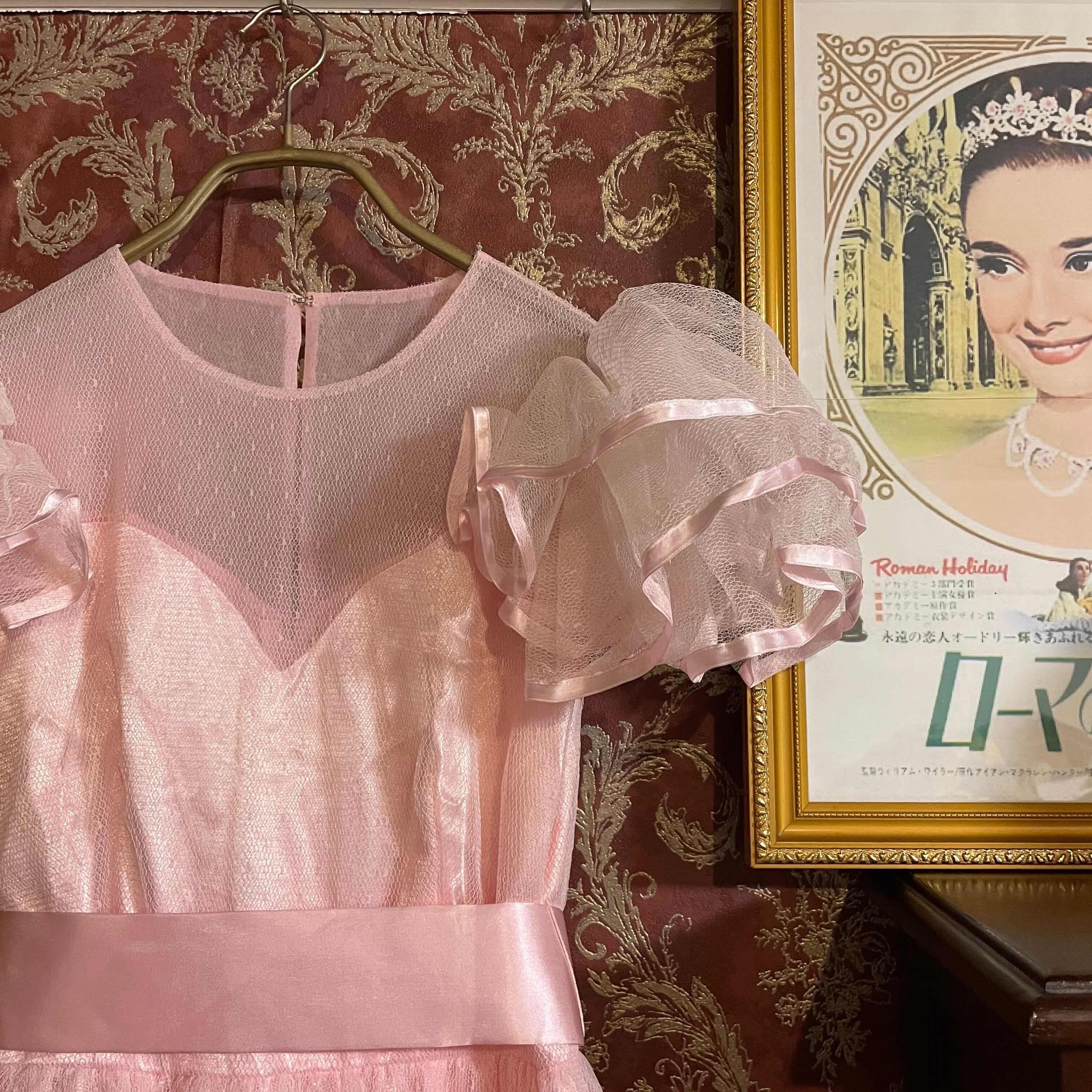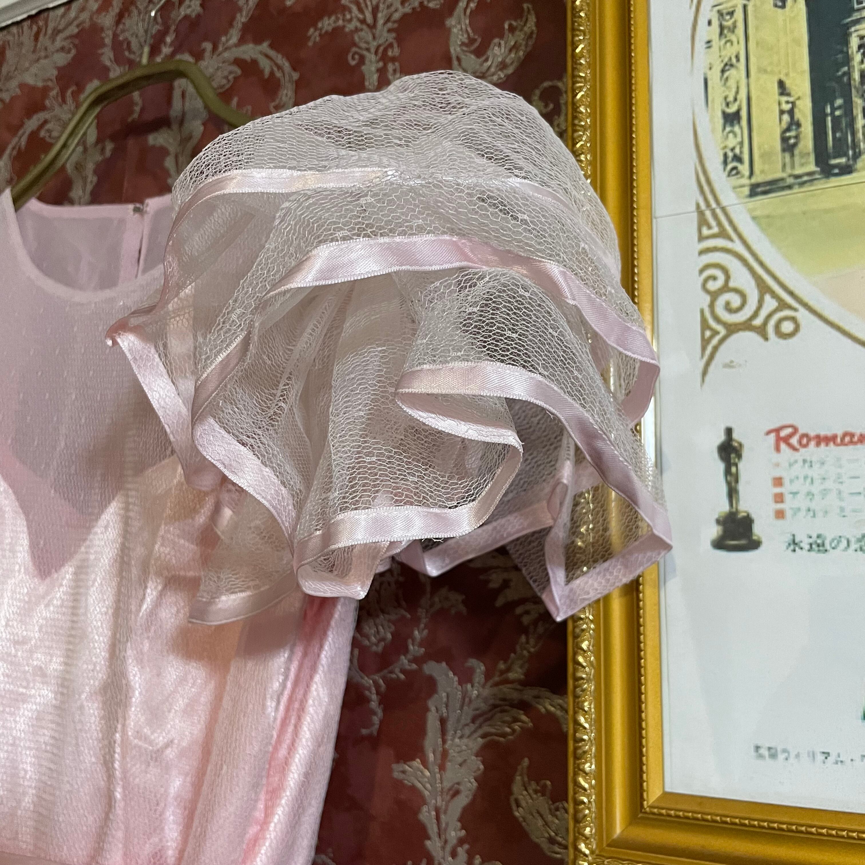 全体がチュールで作られ、袖とスカートは何層にも兼ねられたボリュームがとても豪華な一着です。