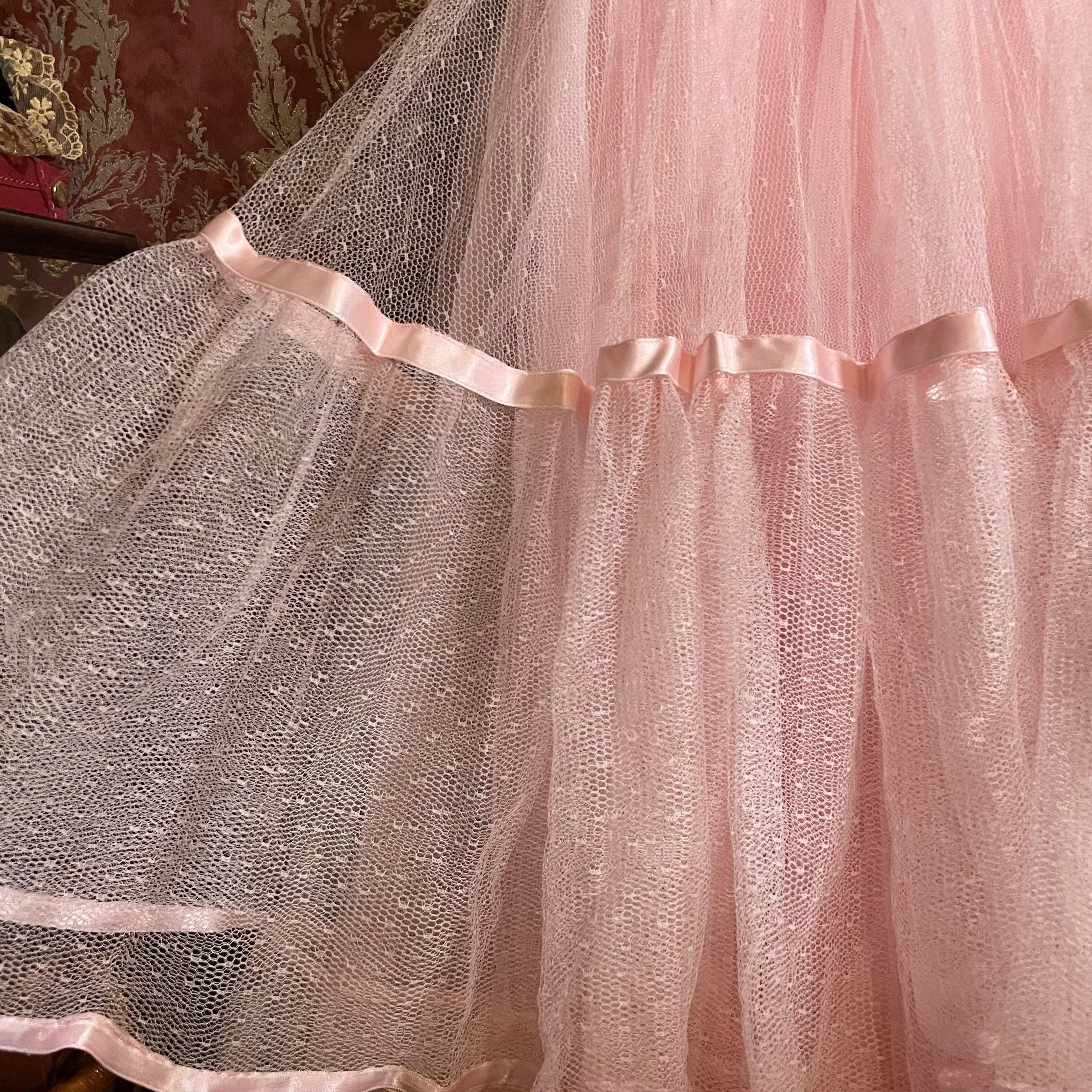 裏地はサテンが使われていて、チュールからすけて見える煌めきが最高です。