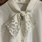 ボウタイ部分に刺繍が施された白ブラウスです。