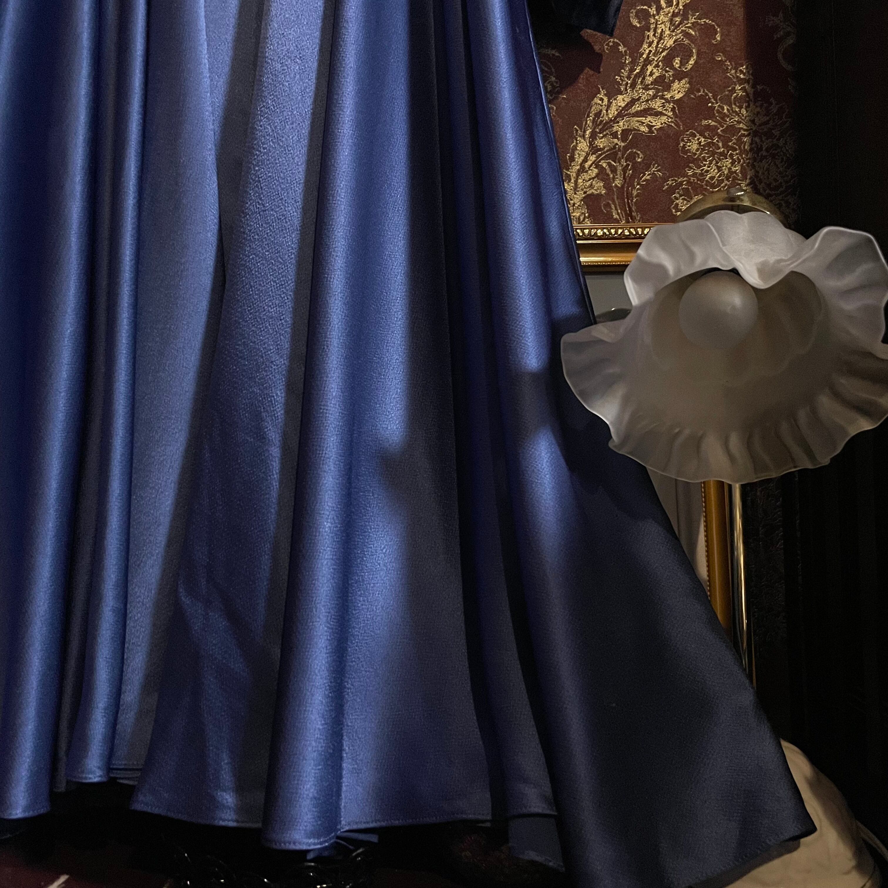 スカートは布量たっぷりの豪華な全円フレアで、ドレスのようなデザインです。