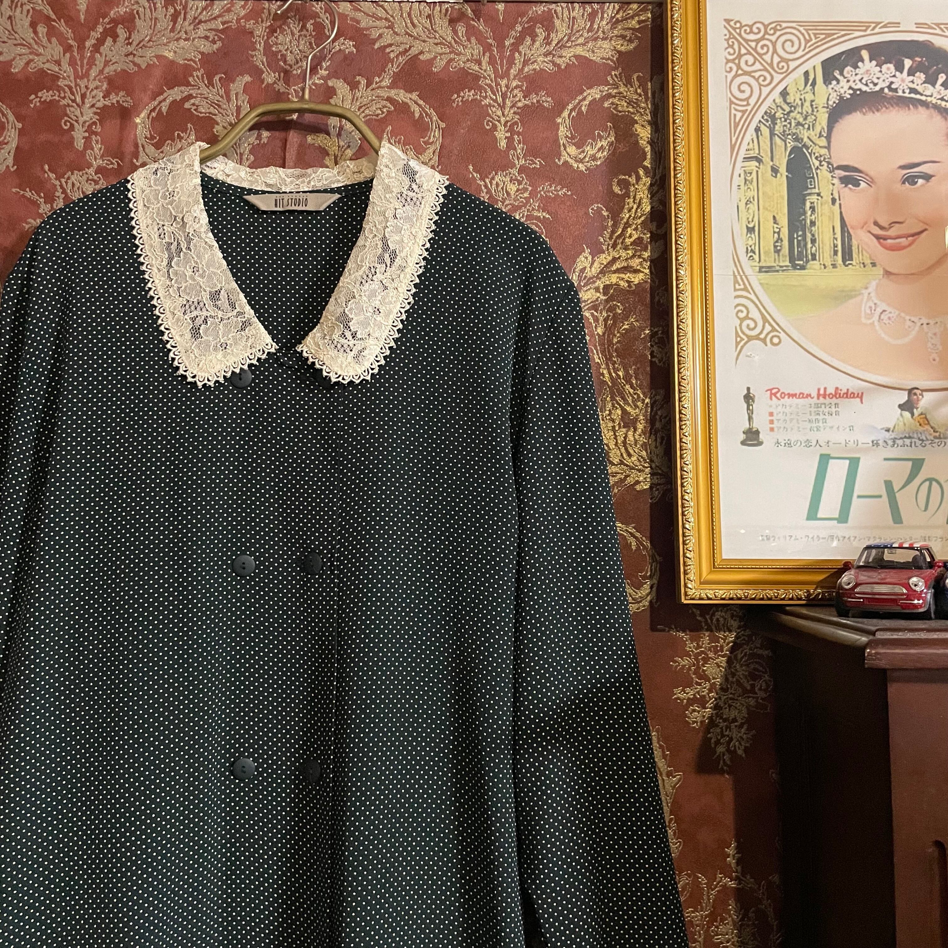 moss green × pin dot retro one piece