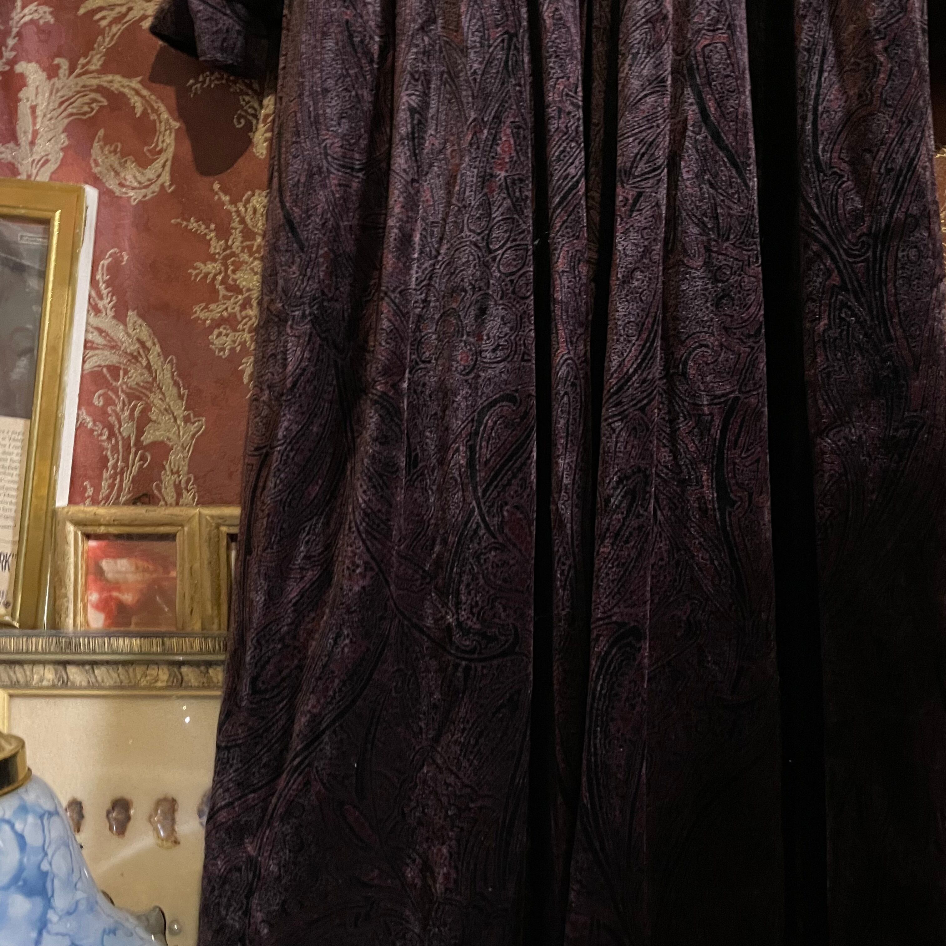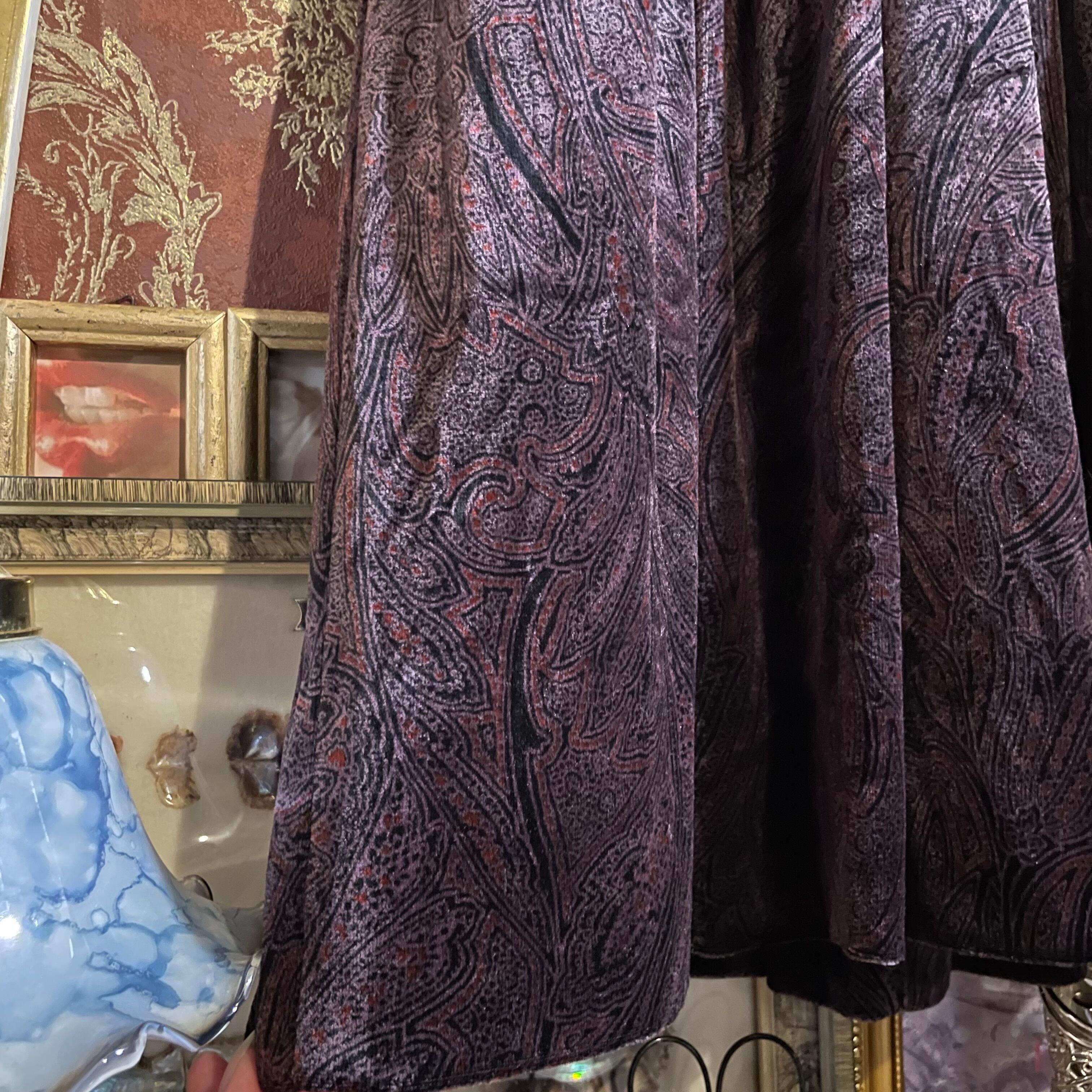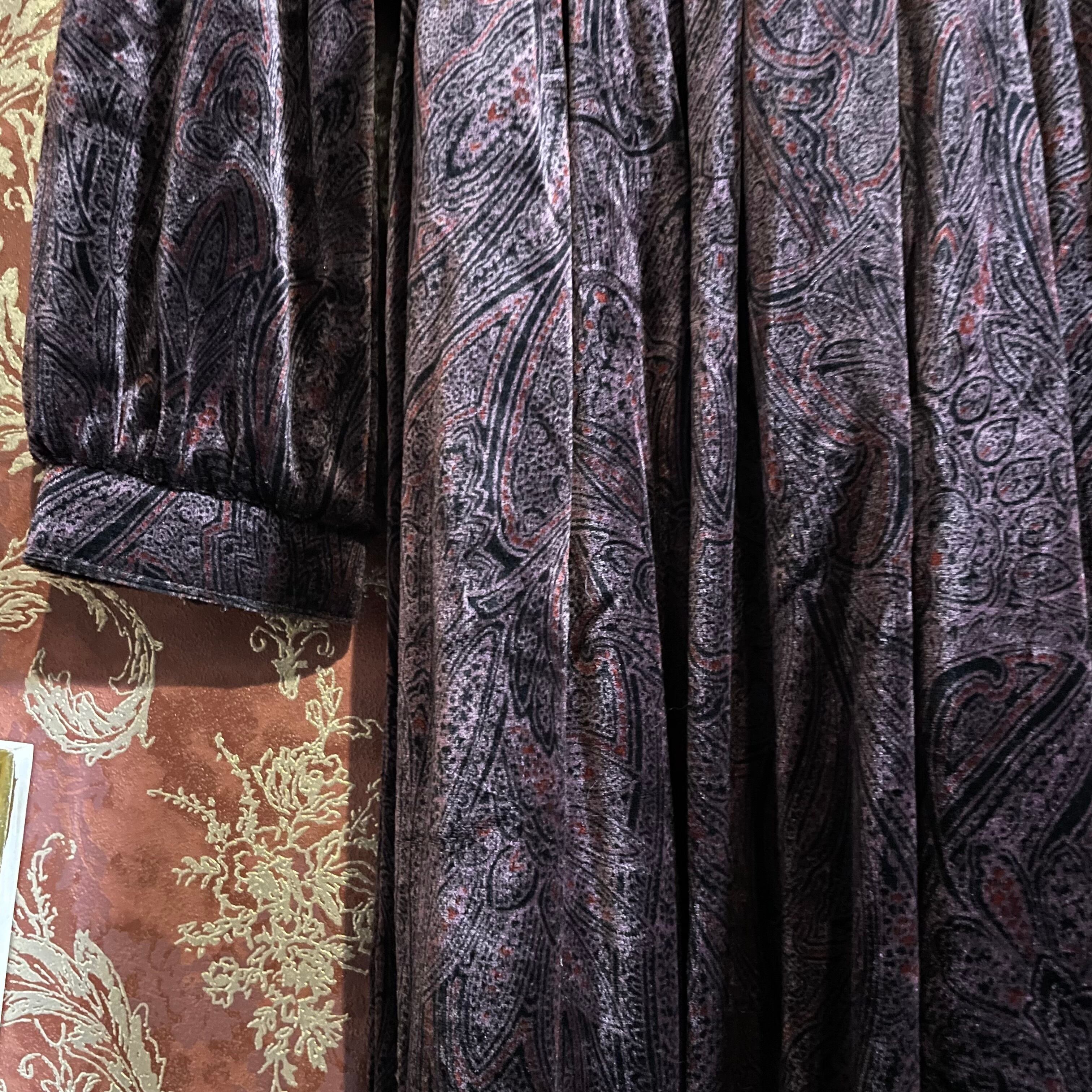 暗いカラーで統一されたペイズリー柄のワンピースです。