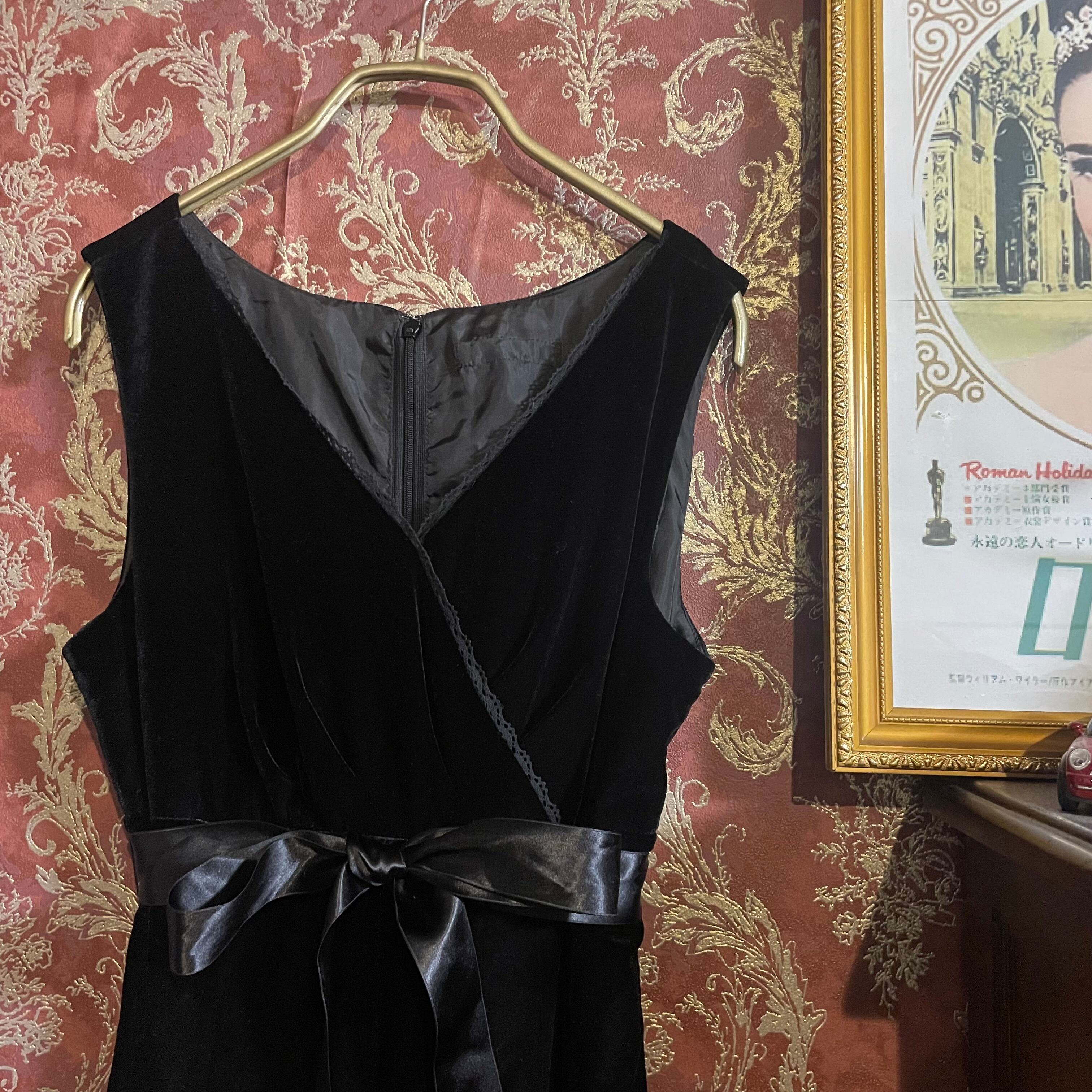 カシュクールデザインで、胸元のV字が女性らしい差を引き立て、胸下のリボンが可愛らしさを感じさせてくれます。