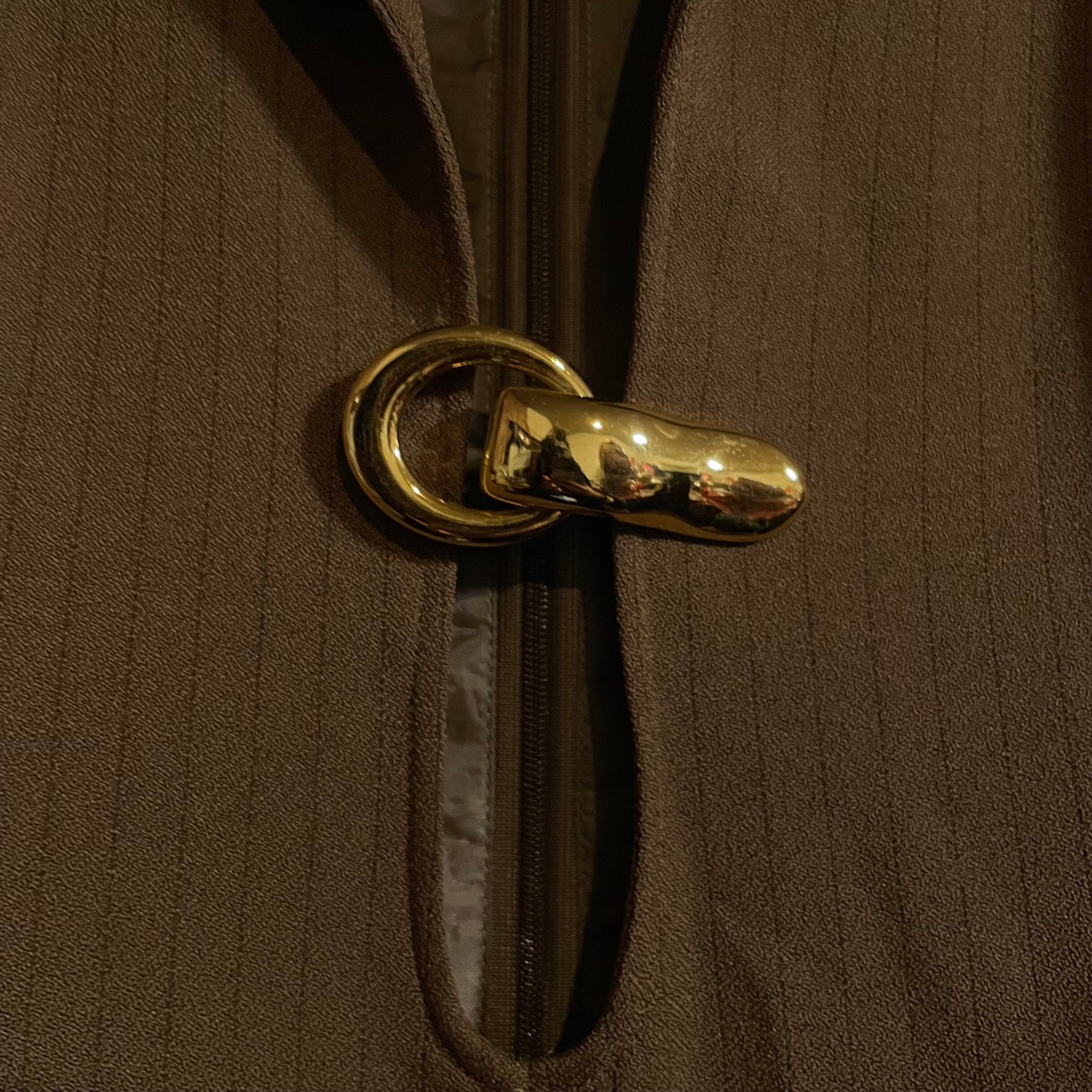 写真では色が違って見えてしまいますが実物は#786c37辺りです。