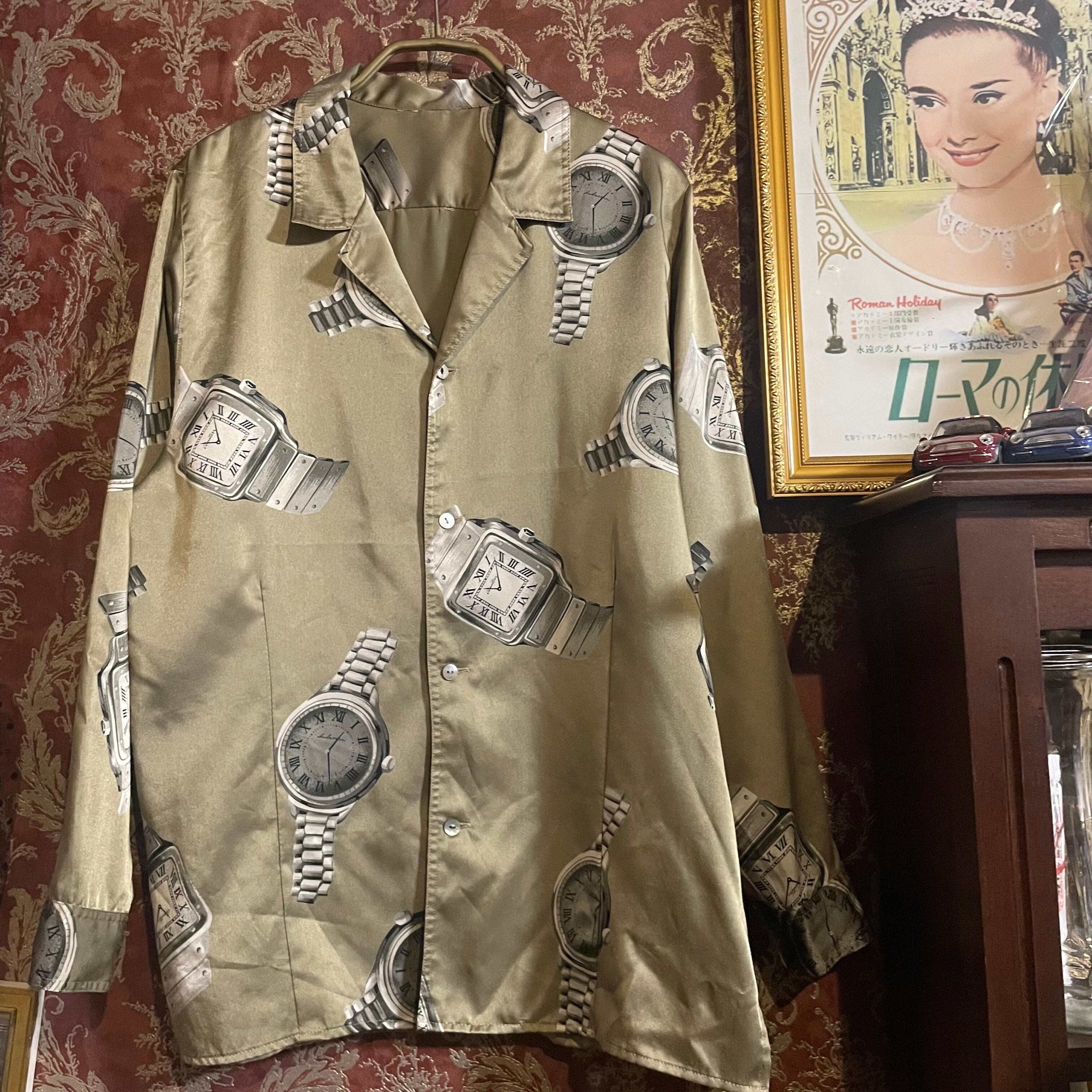 アナログ時計柄のとても珍しく個性的なシャツです。