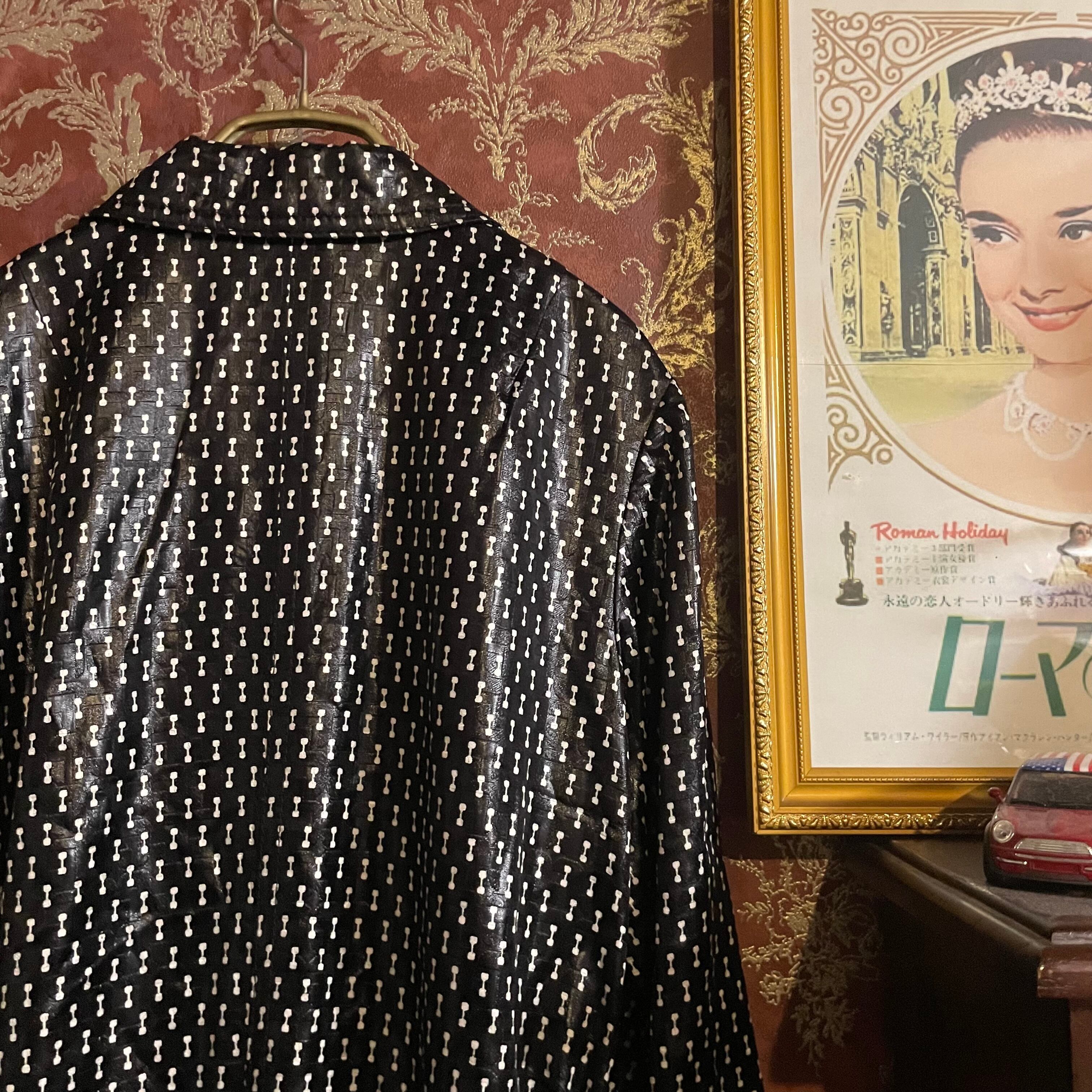 不思議な柄のモノトーンで、レトロな雰囲気たっぷりの素敵な一着です。