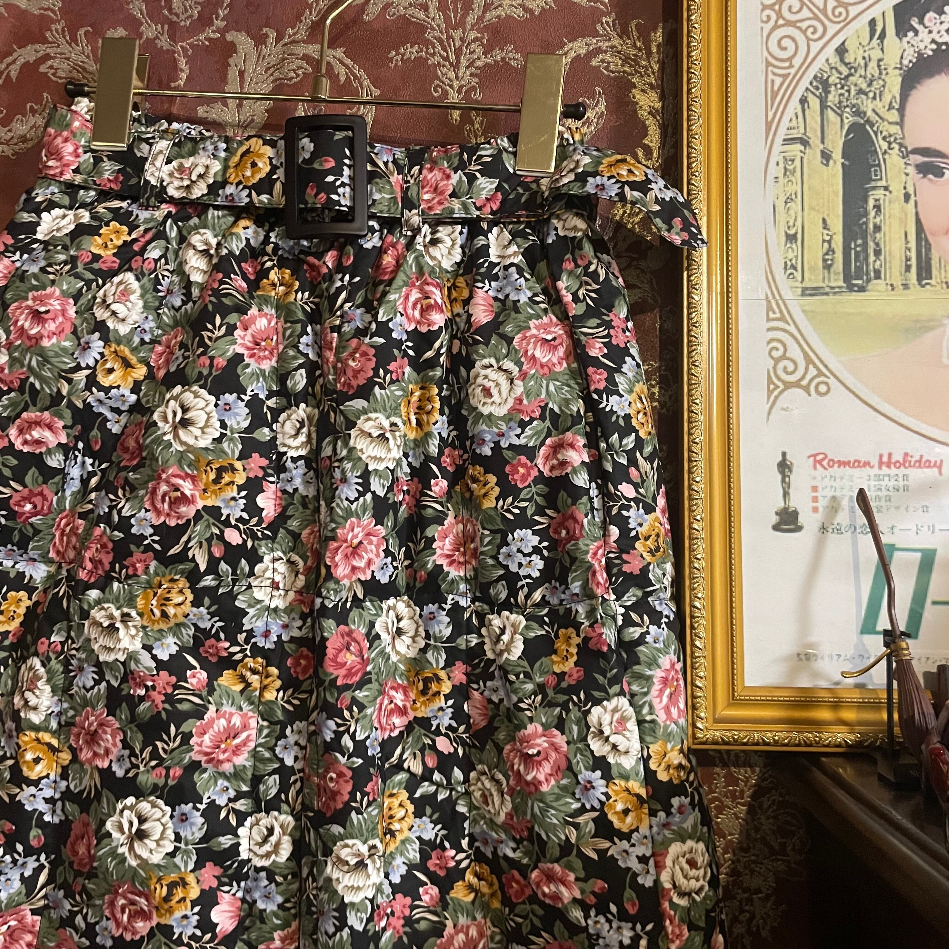 スカートはウエストゴムで、共布のベルトが附属しています。