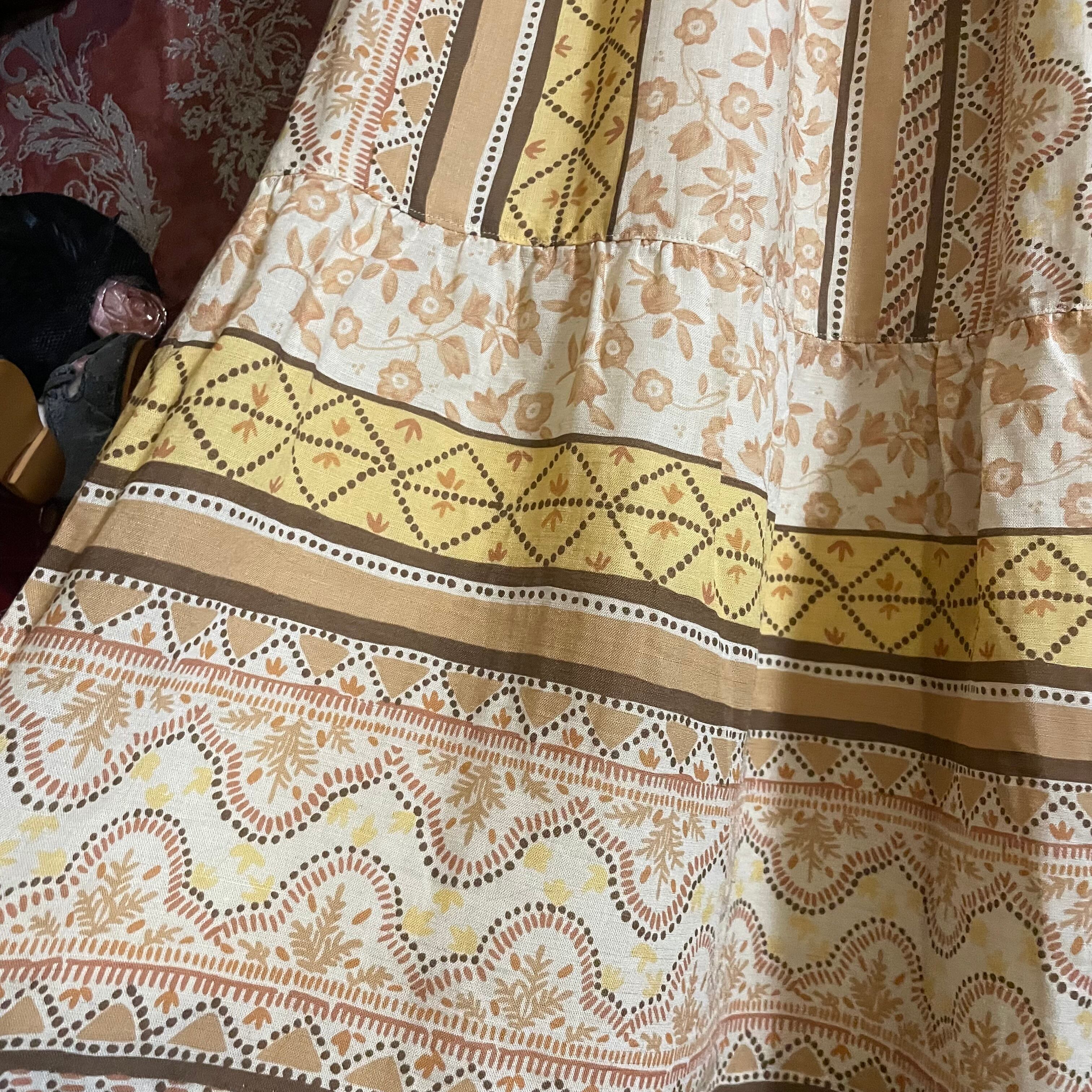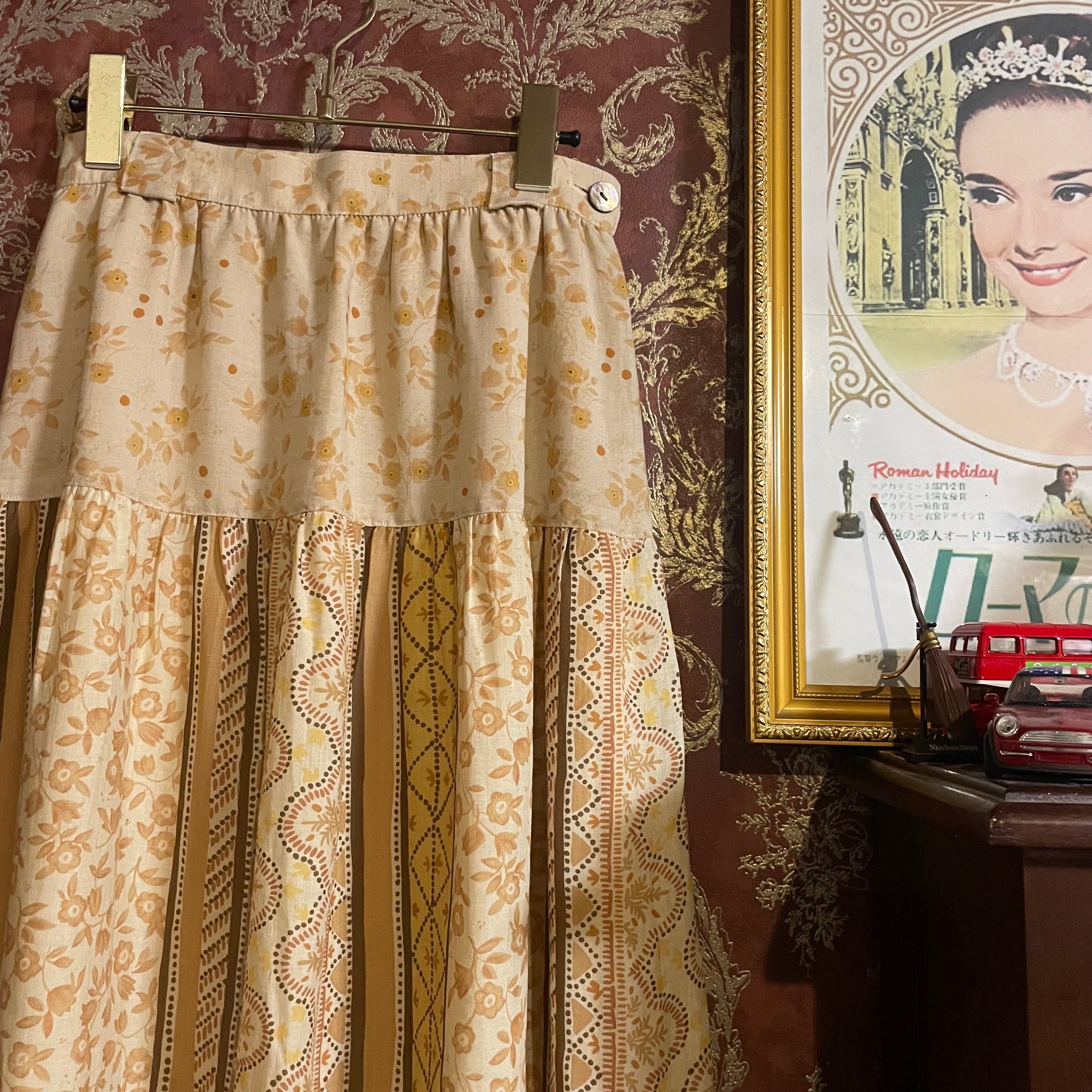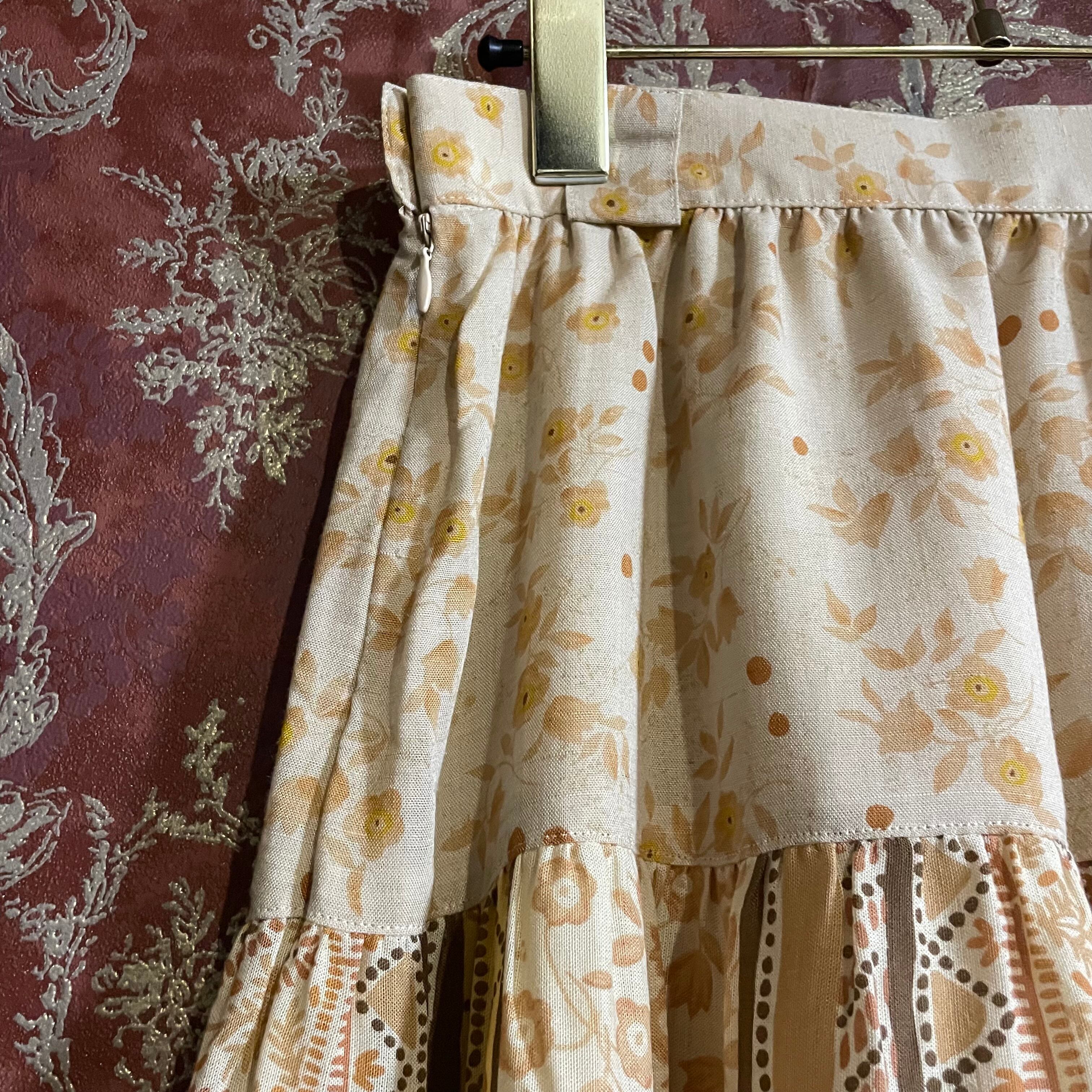 ベージュを基調としたエスニックな柄のティアードスカートです。
