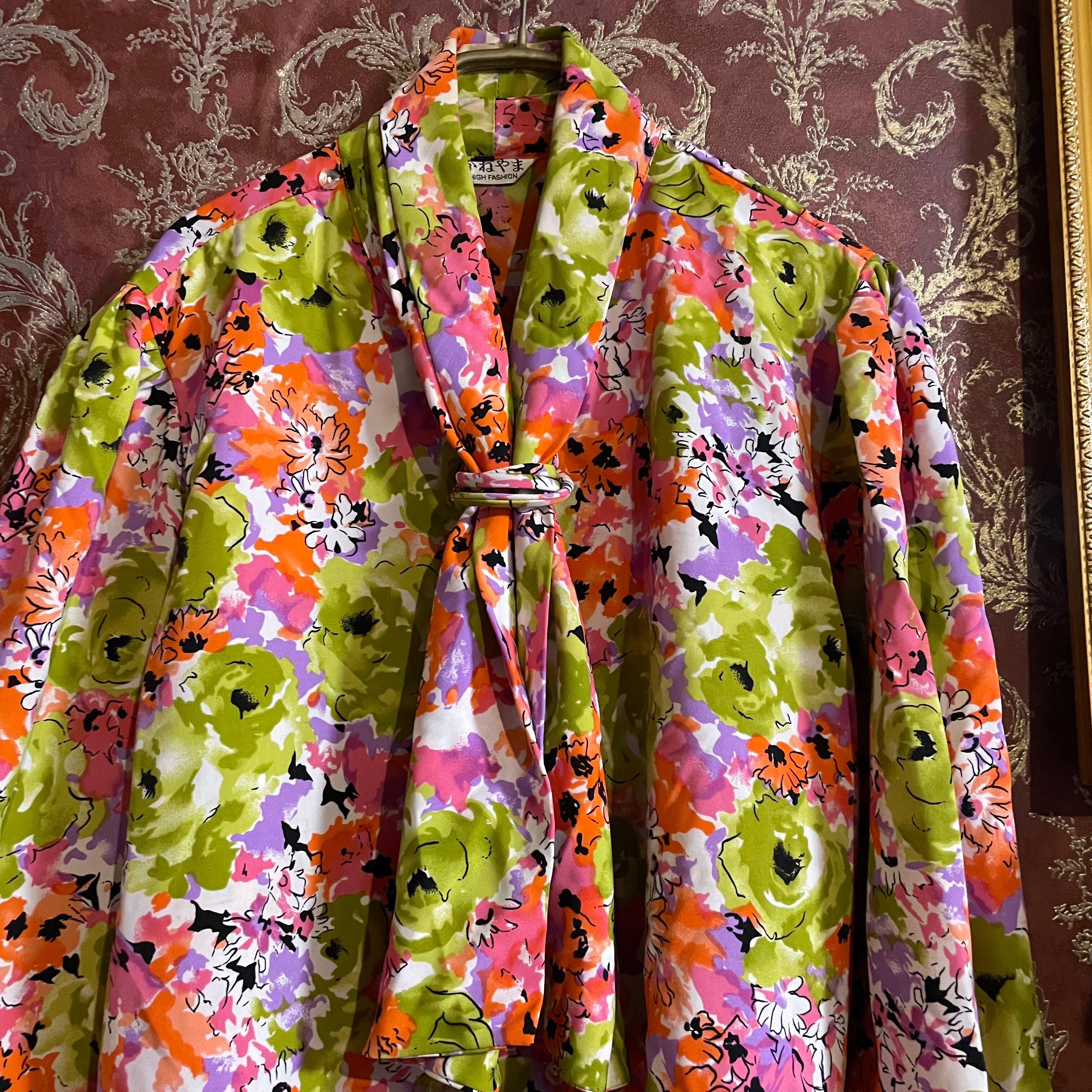 配色が個性的ですがとても明るく華やかな印象で、これから春にぴったりの一着です。