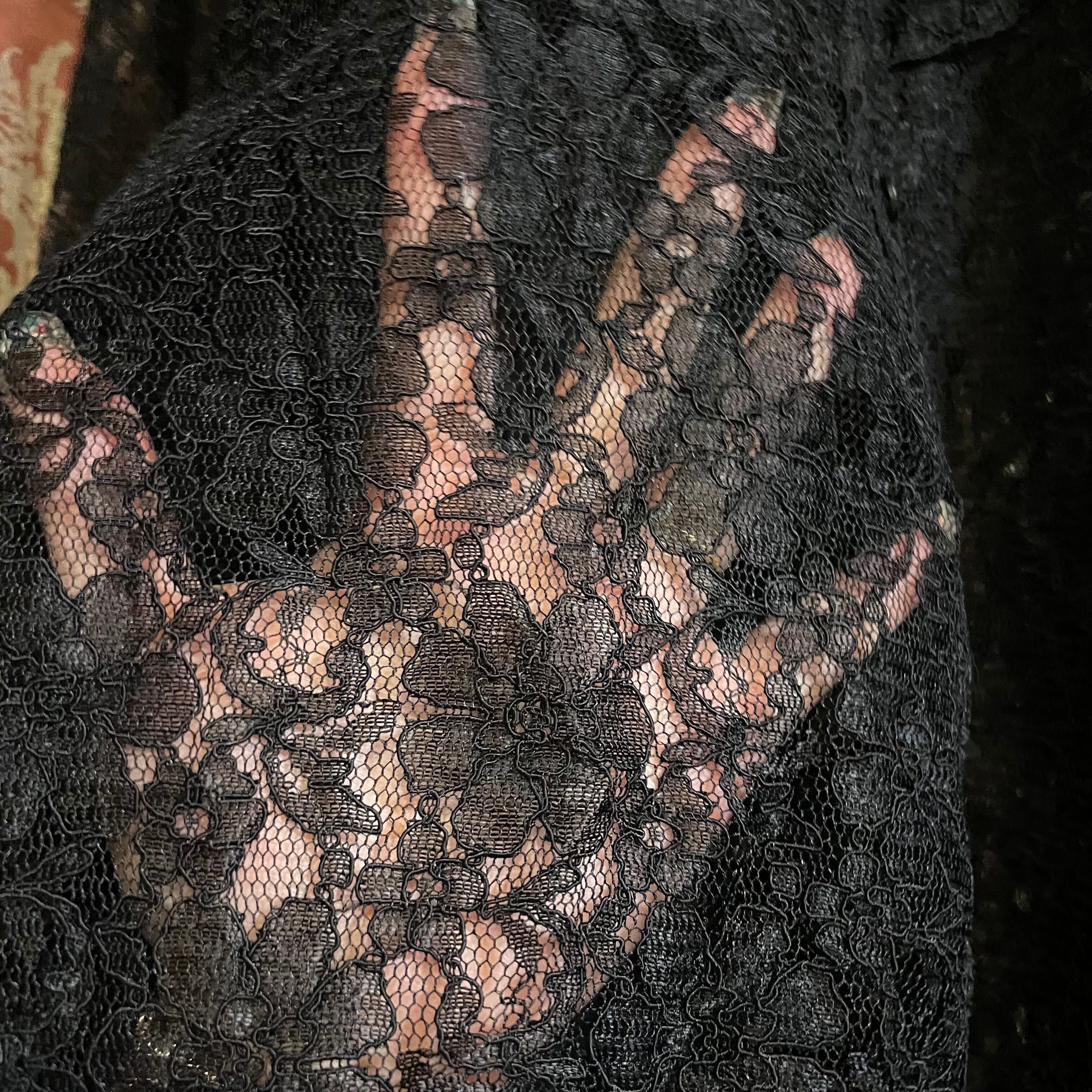 レース素材で華やかさもありつつ、黒色なので大人っぽく上品な印象を演出します。