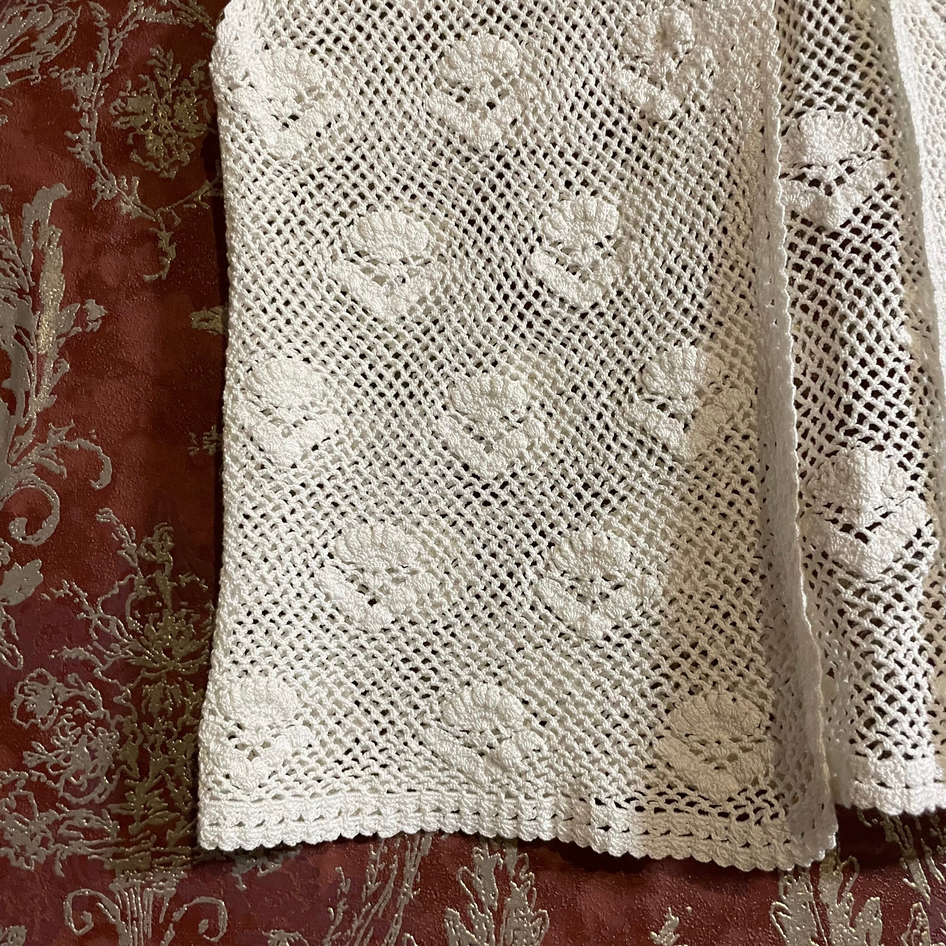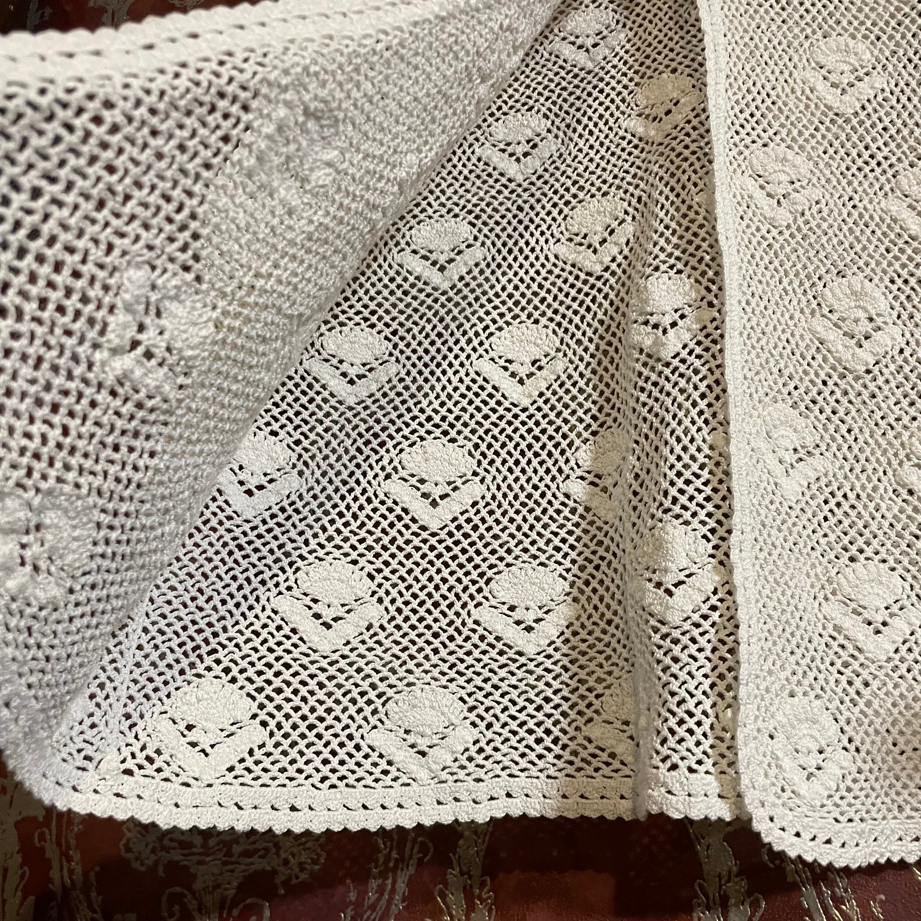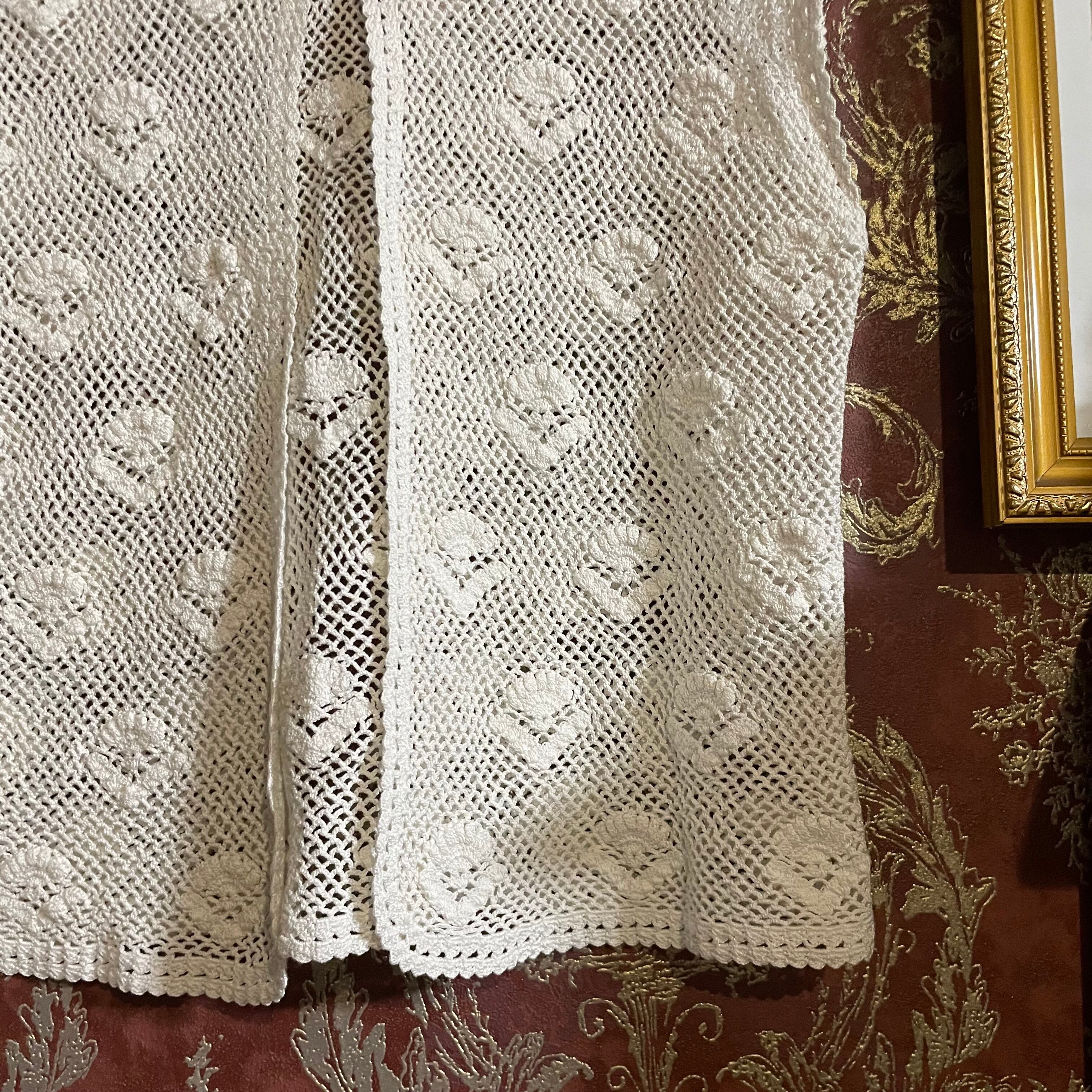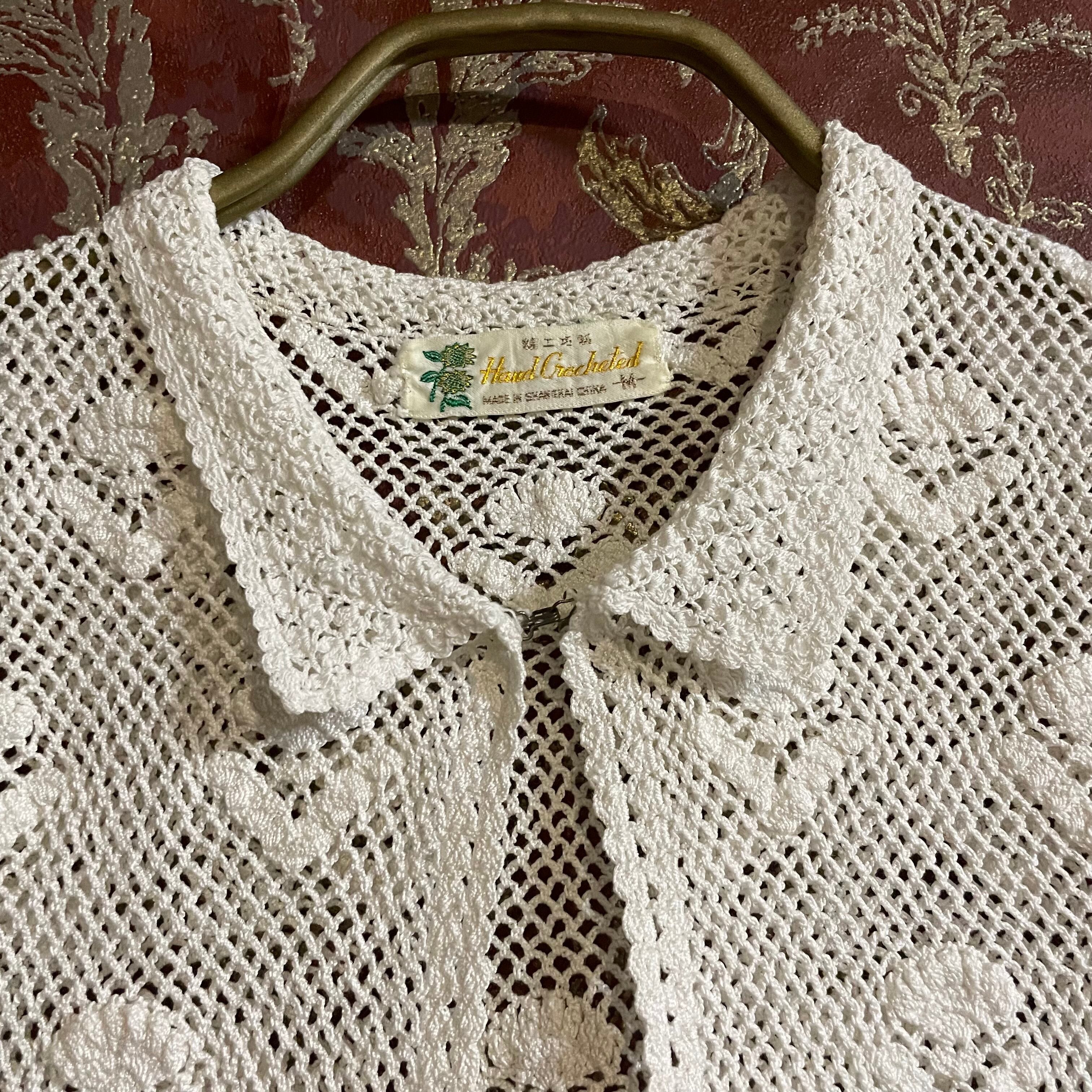 白の細い糸で丁寧に編まれていて、手編みならではのしっかりとした質感です。