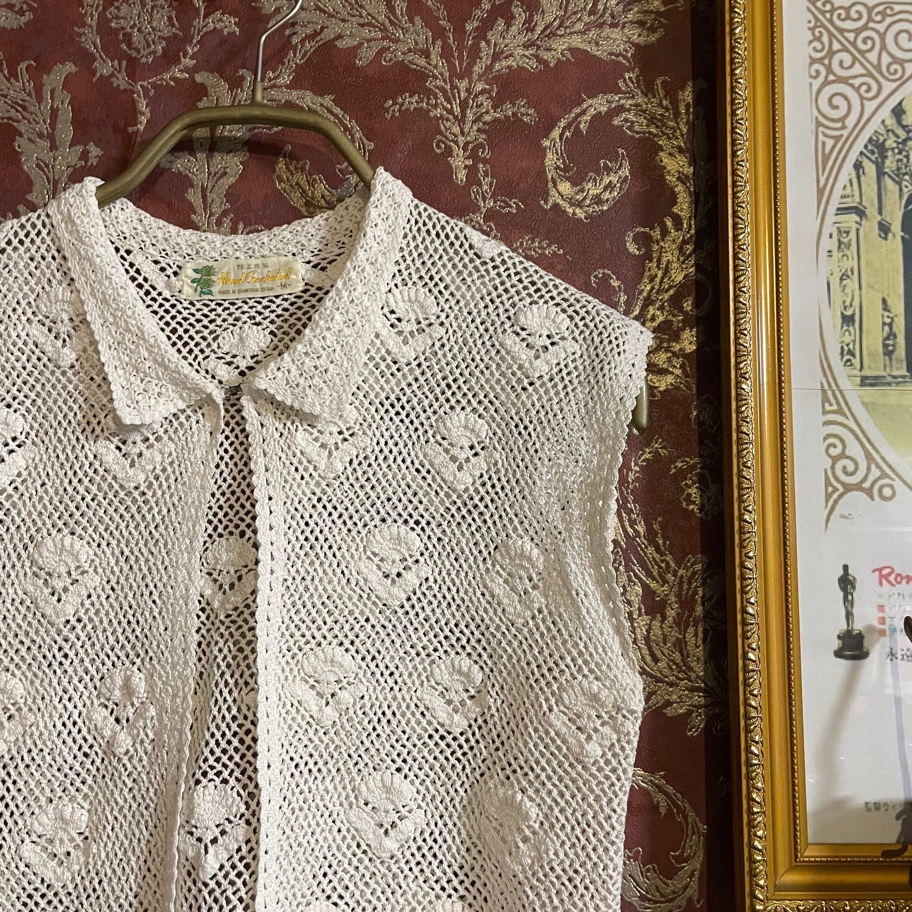hand crochet white vest