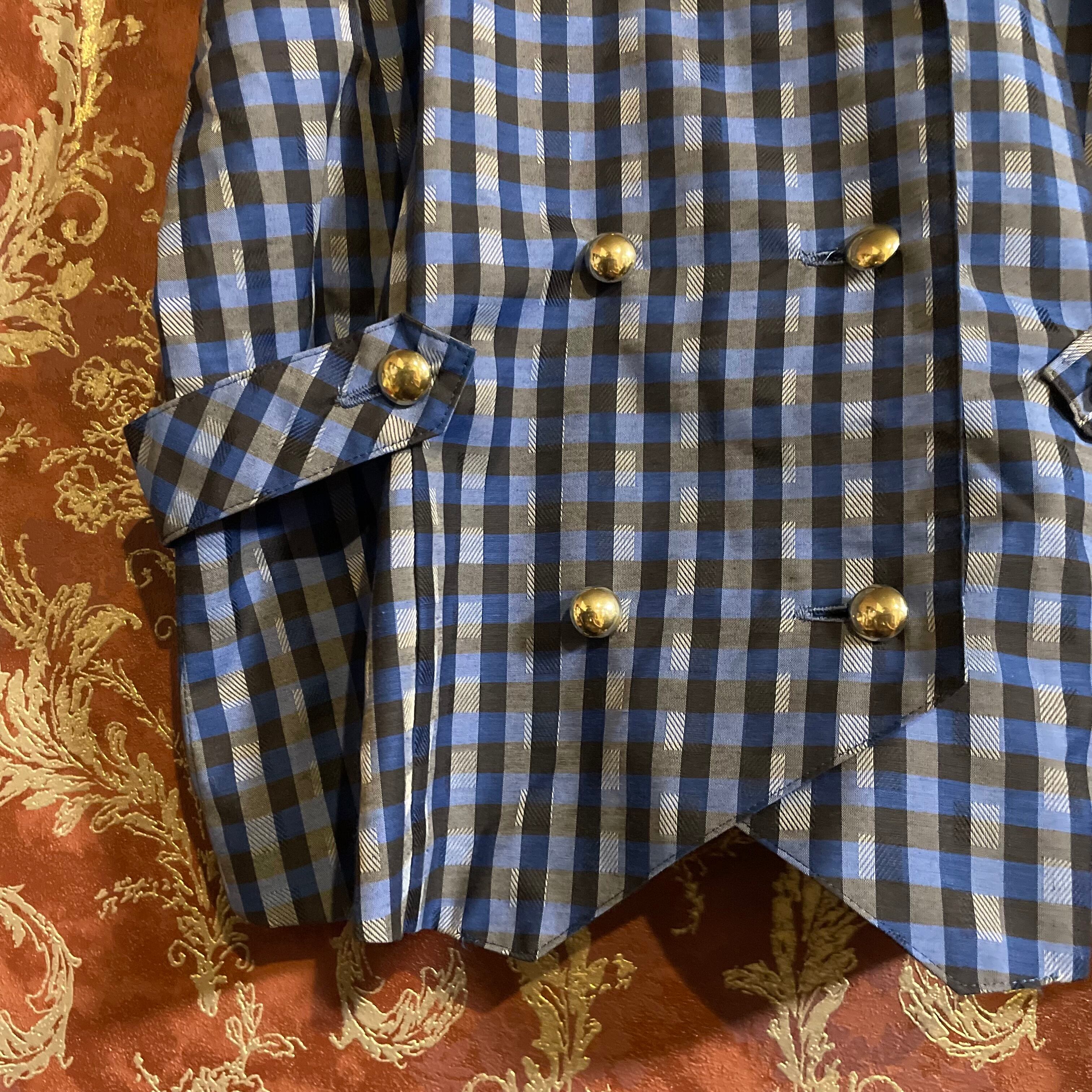 ブラウスはレトロなダブルボタンで程よく個性的な印象です◎