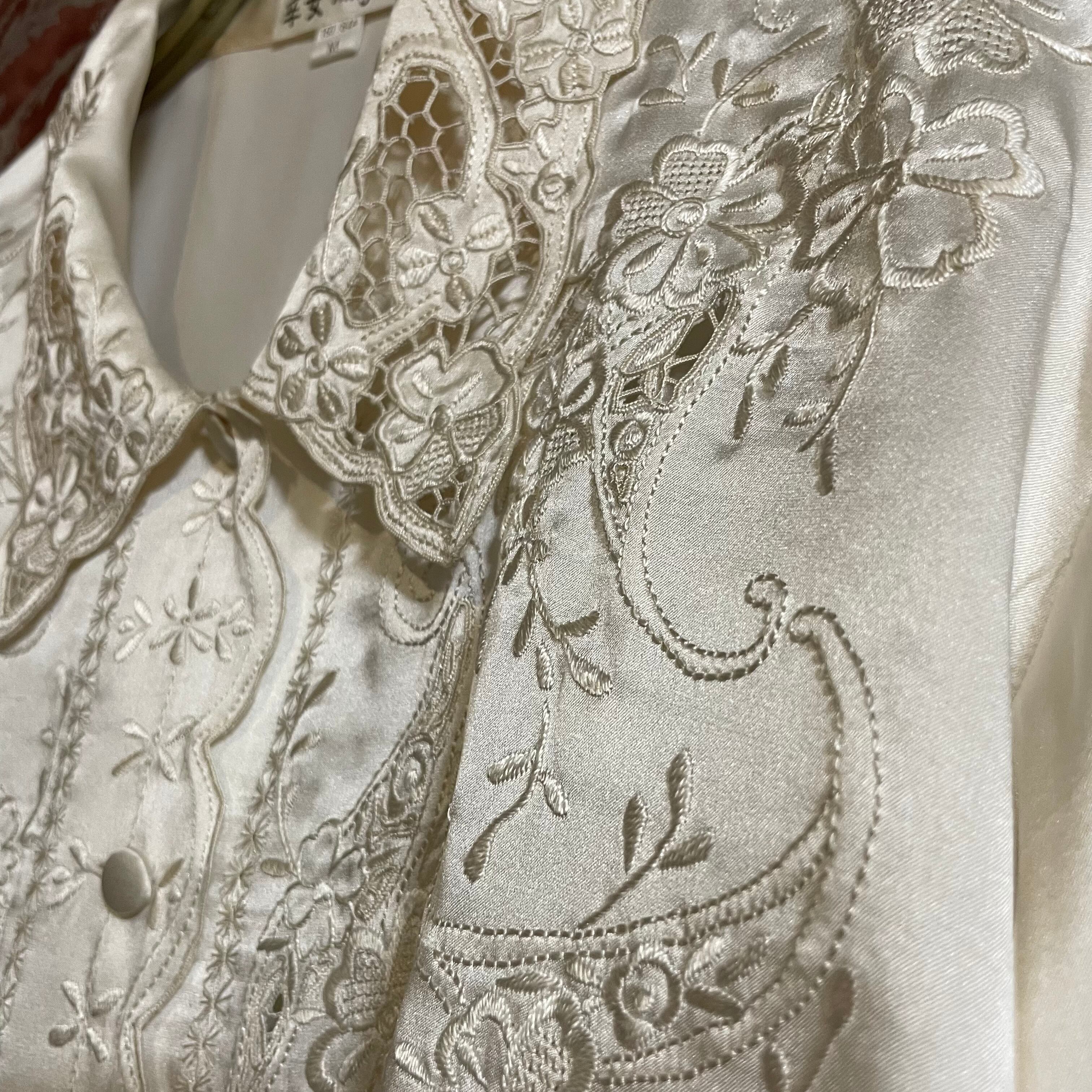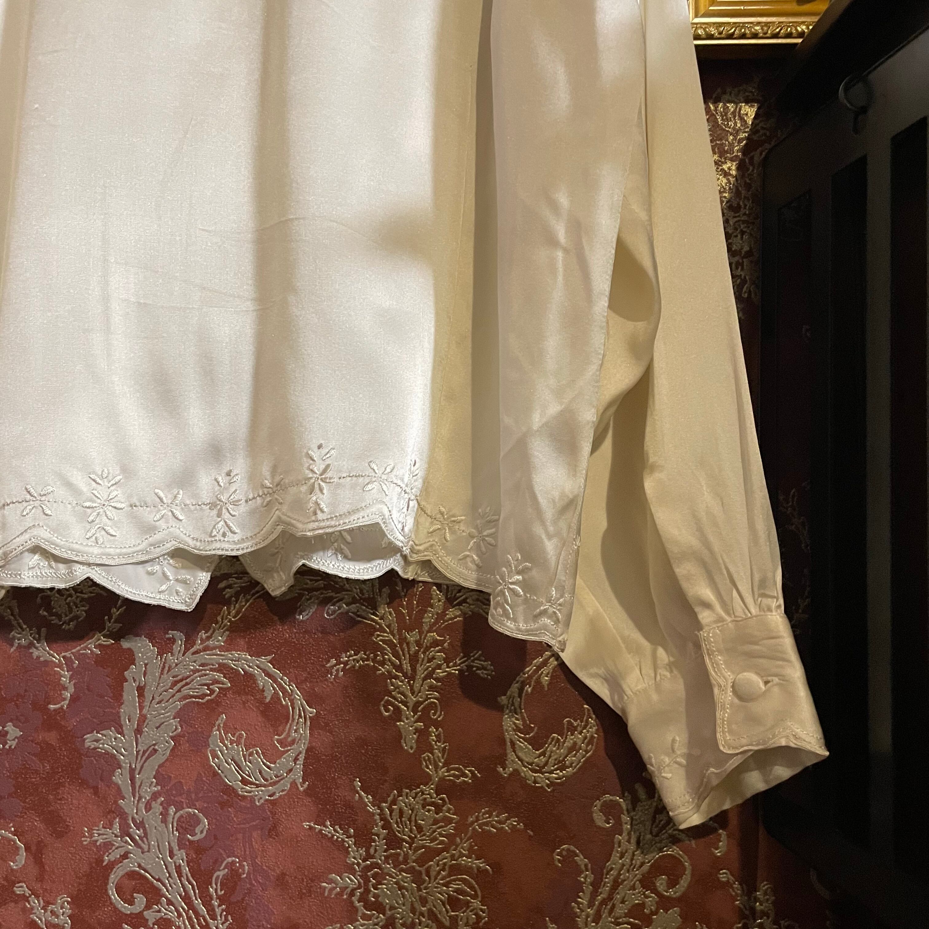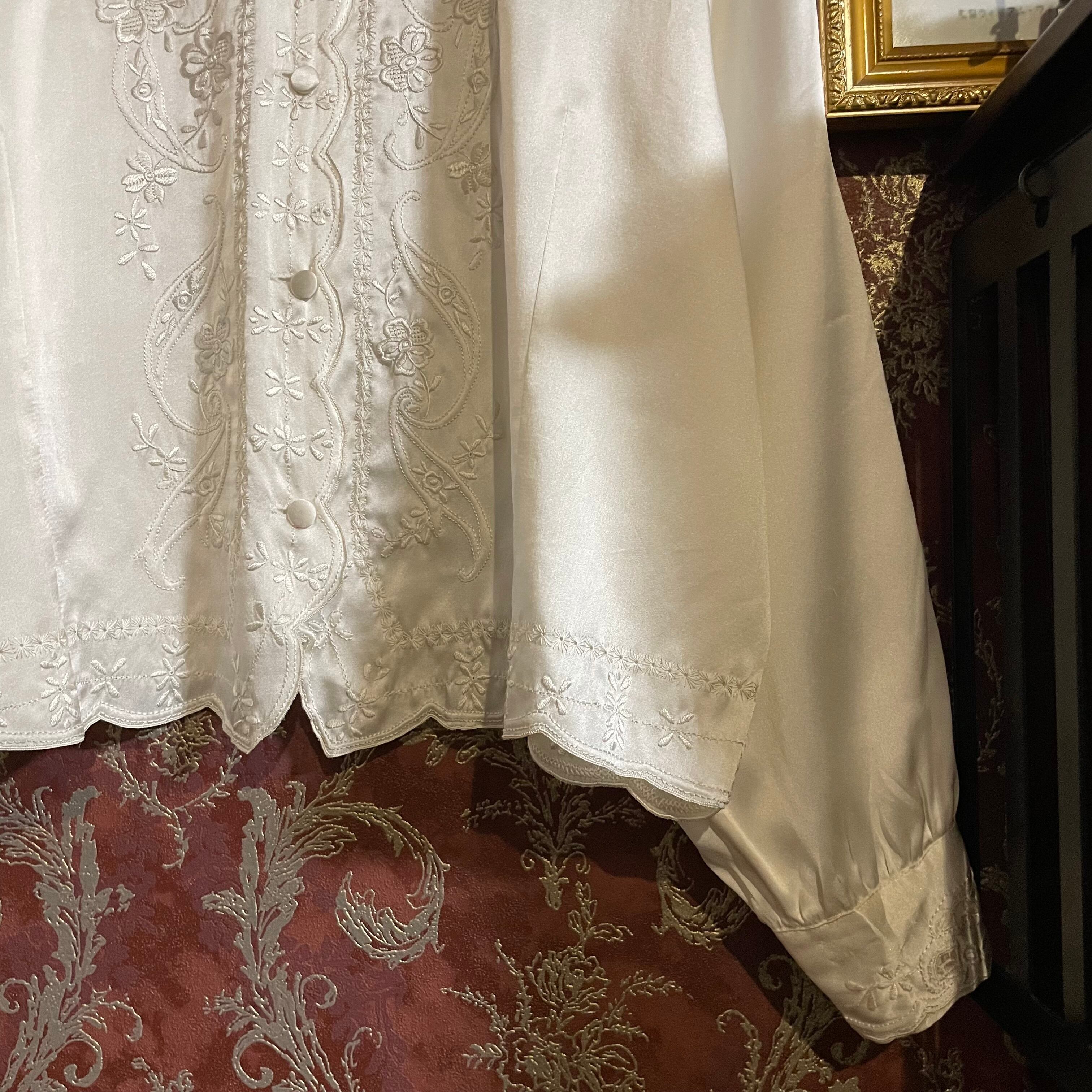 柔らかく繊細なシルクに、丁寧な刺繍が施された一着です。