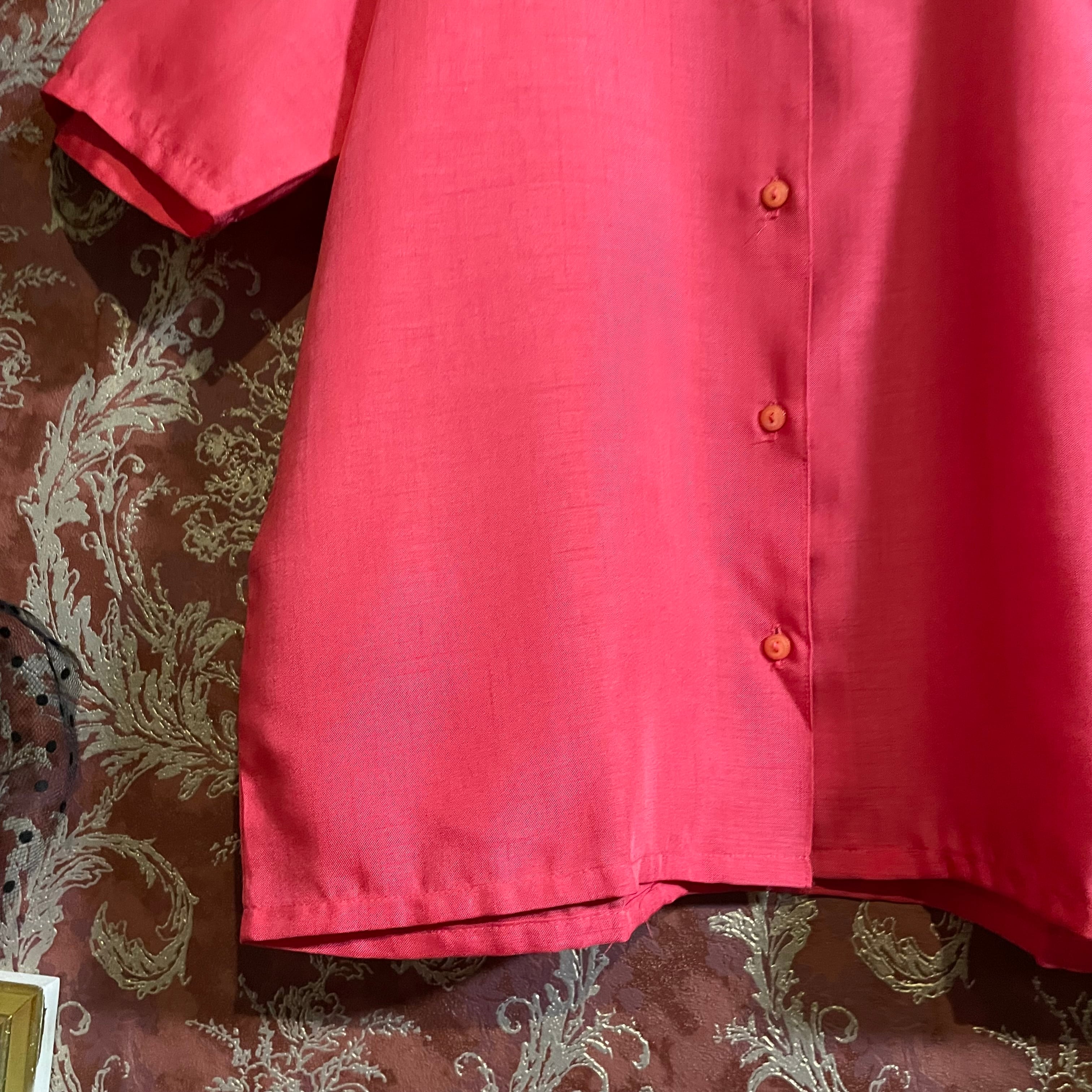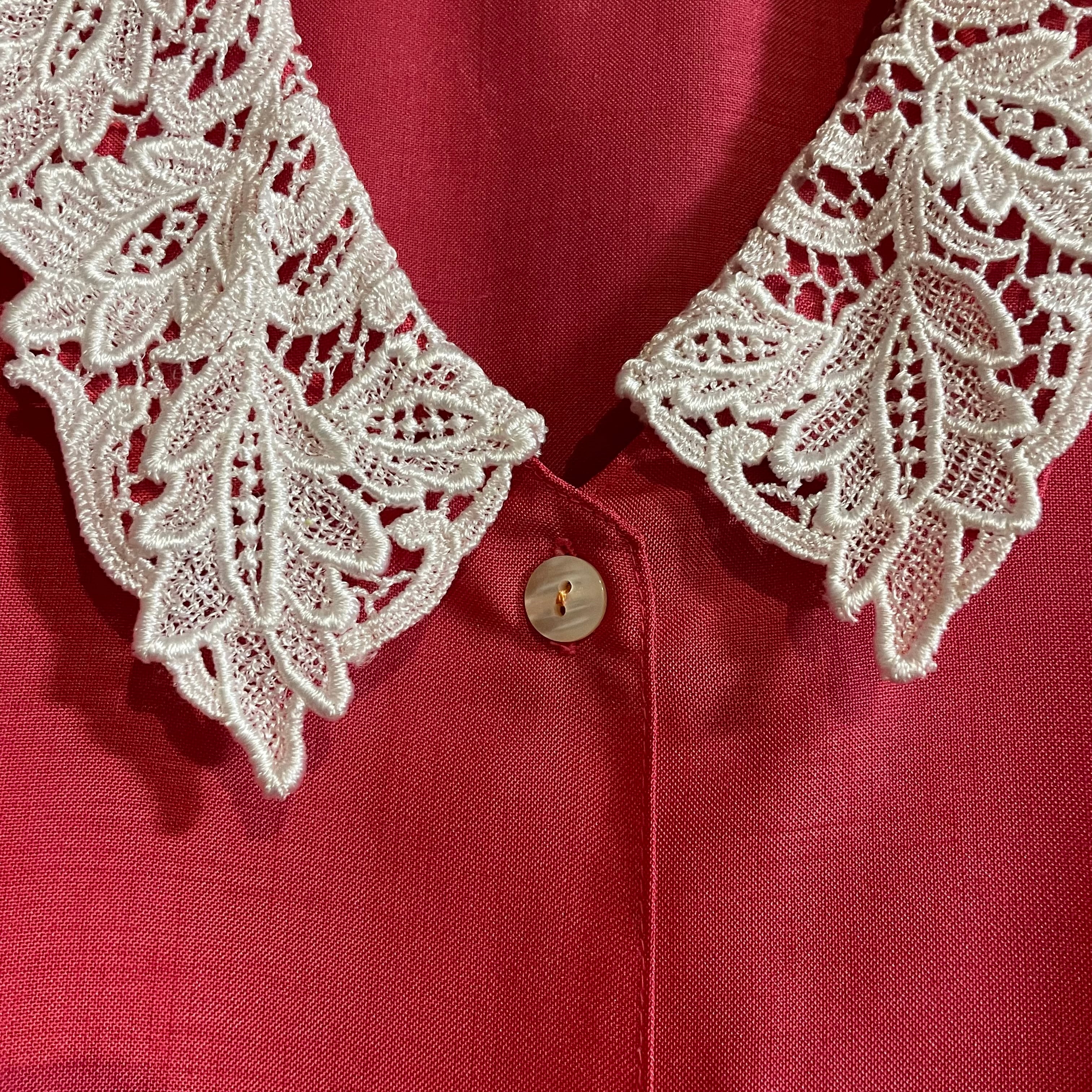 鮮やかなピンクにレース襟が可愛らしい半袖ブラウスです。