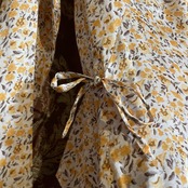 白をベースに黄色の花柄が爽やかで、ウエスト背面にはリボンが通っているのでサイズ調整可能です。