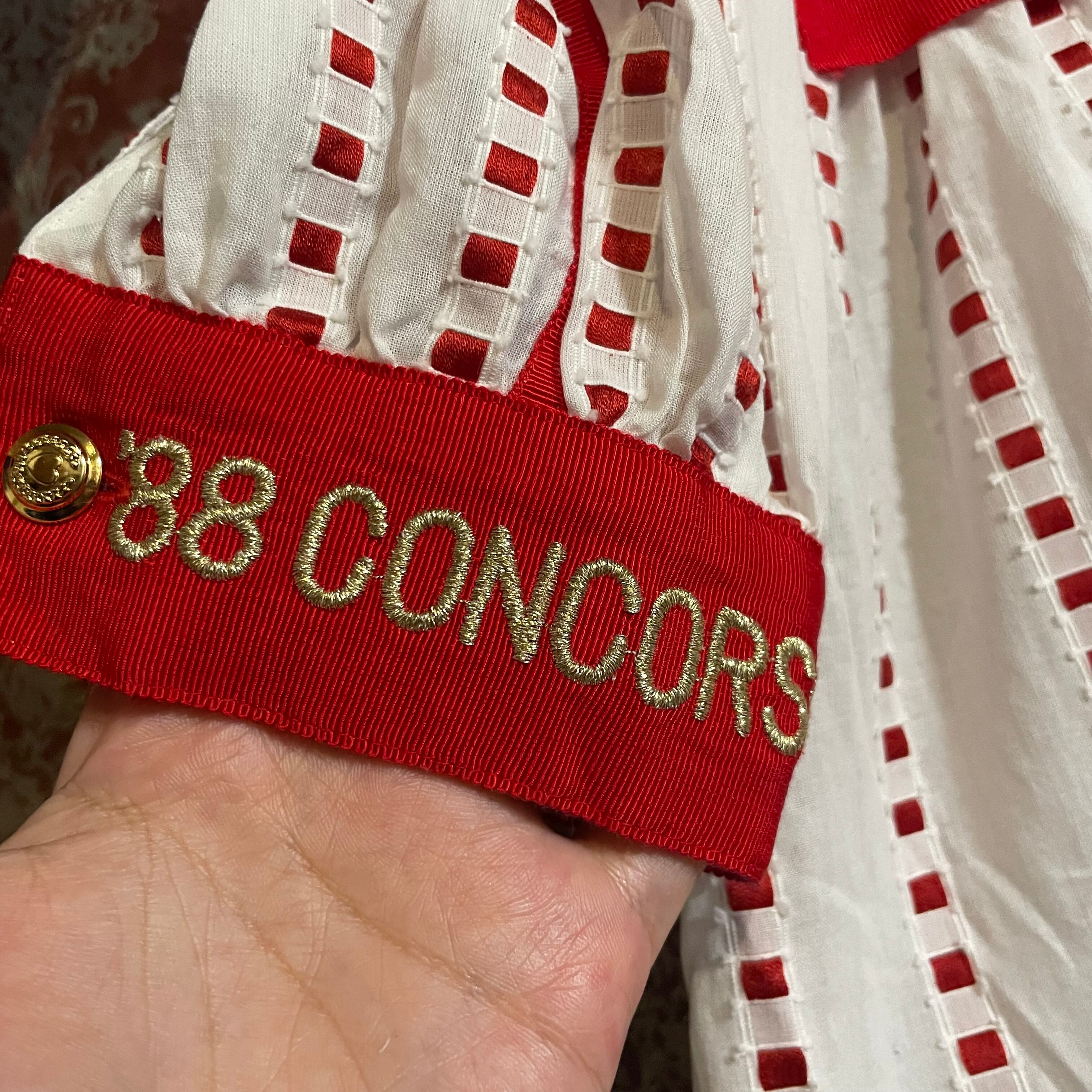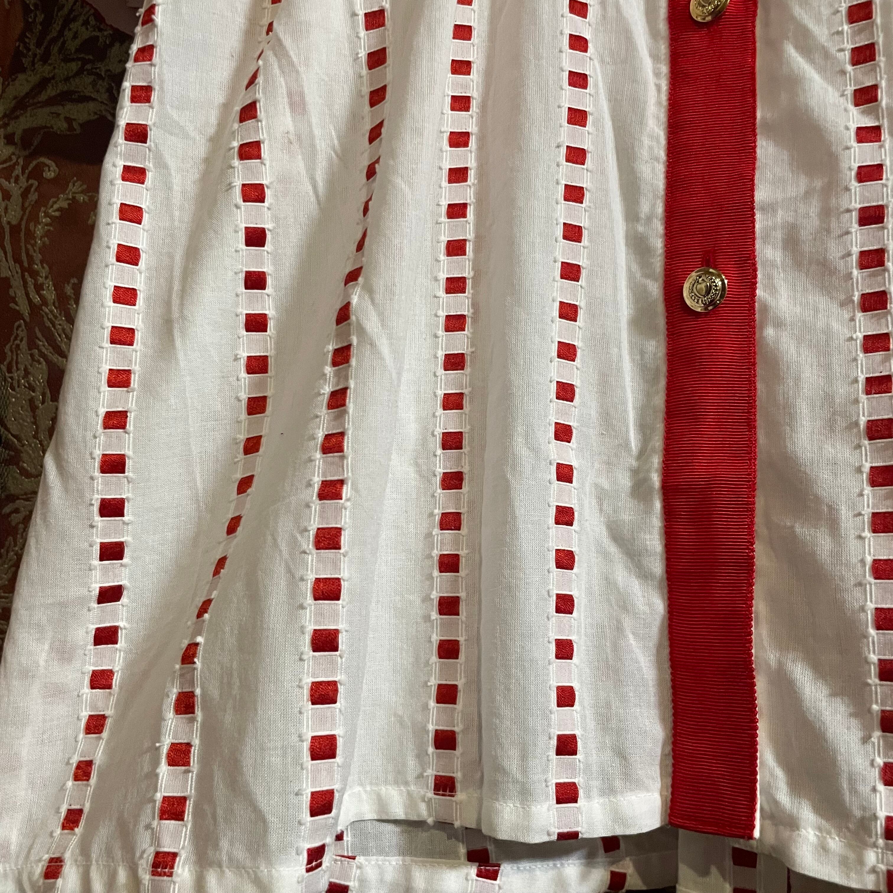 白と赤の組み合わせが可愛らしく、フロントのボタンとカフスのゴールドがアクセントになっています。