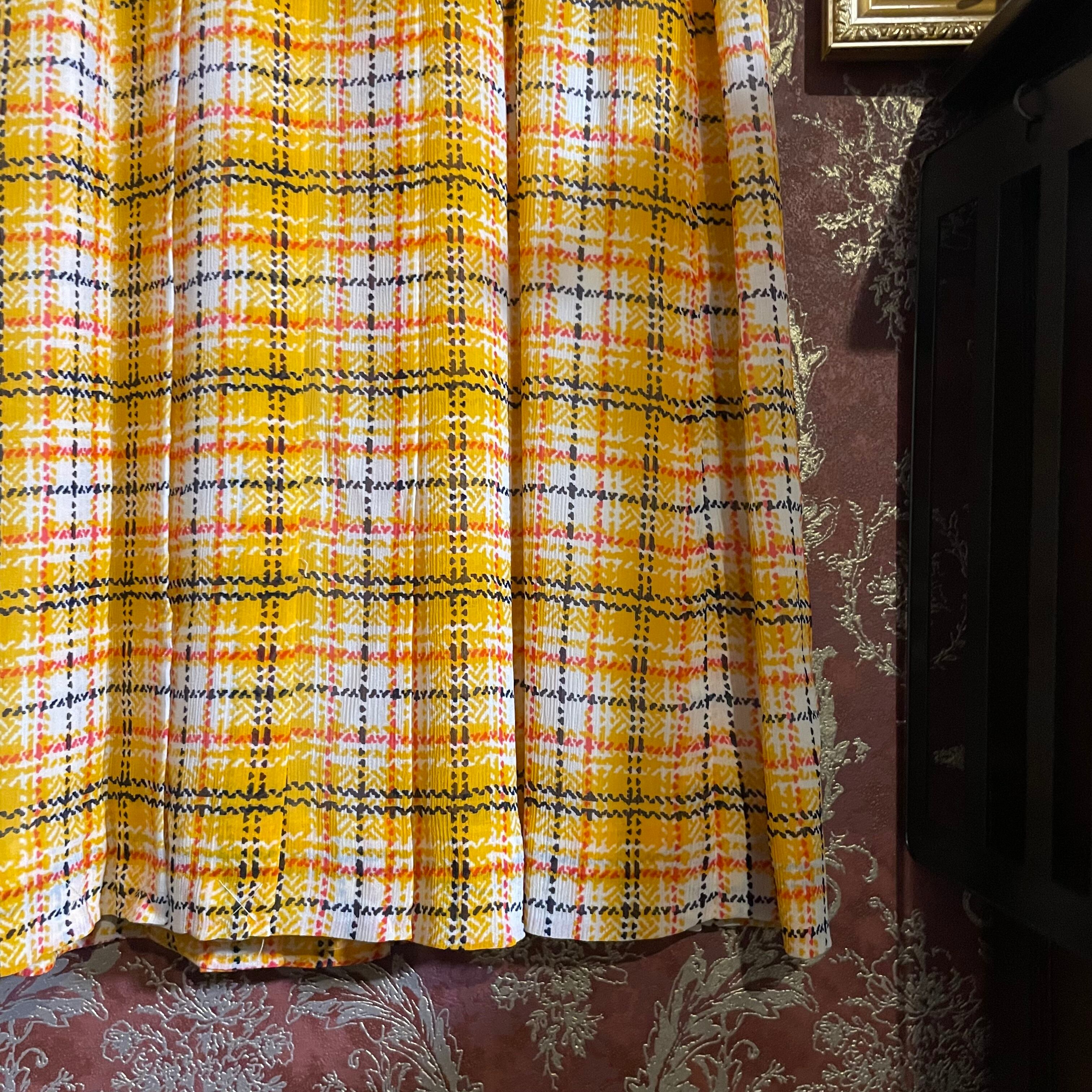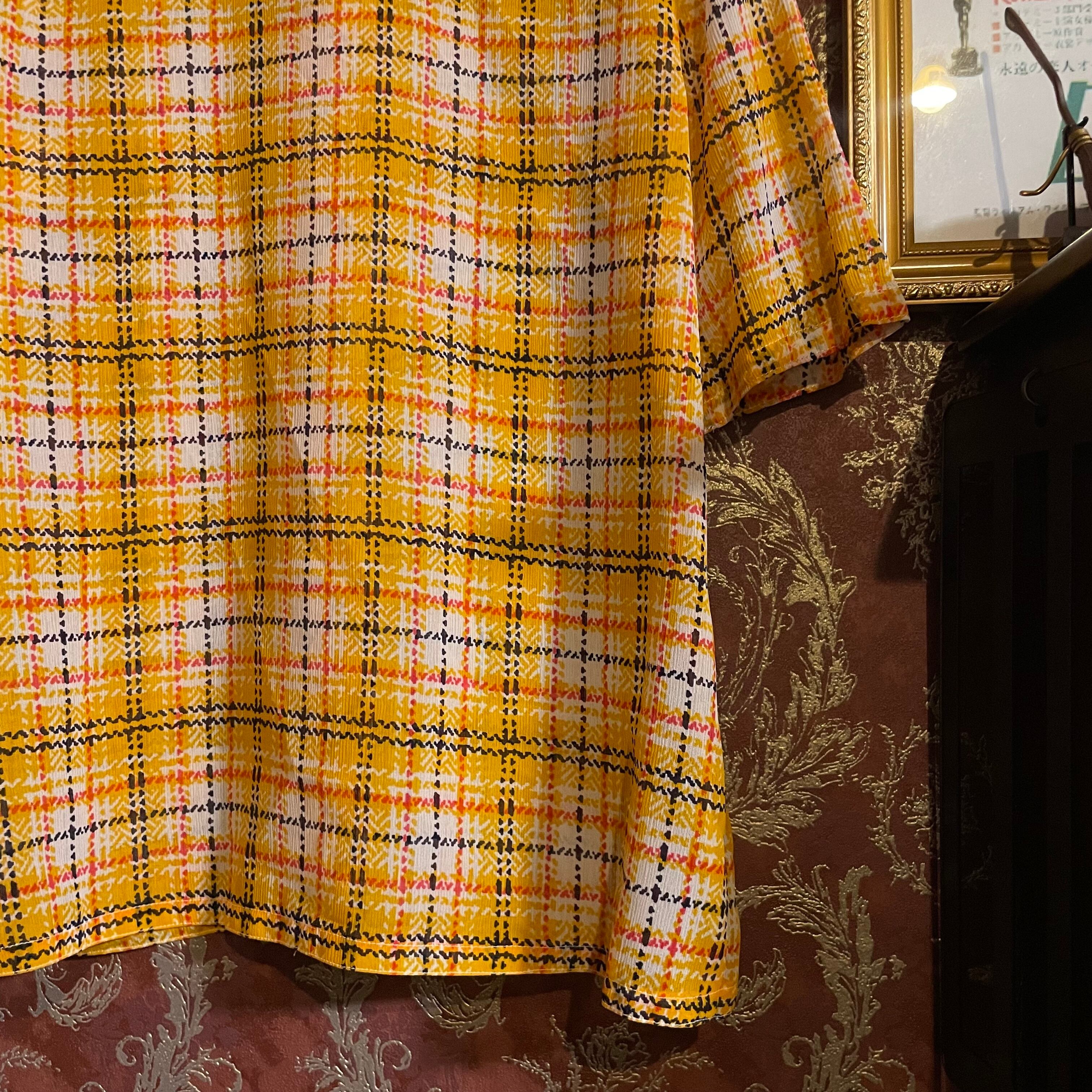 山吹色のレトロなチェック柄が魅力のセットアップです。