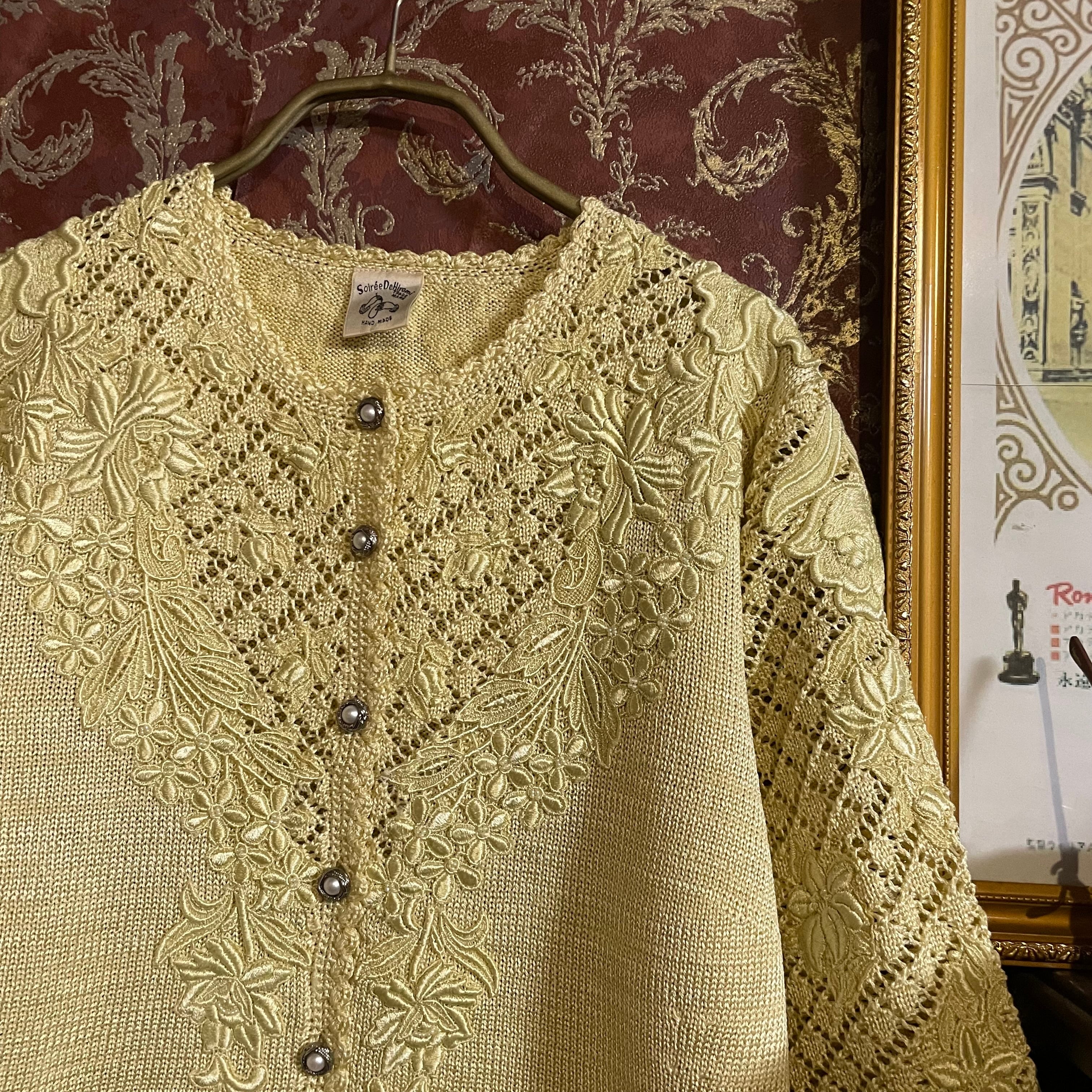 淡い黄色が爽やかな印象を与える、絹と麻の素材を使用したサマーカーディガン。