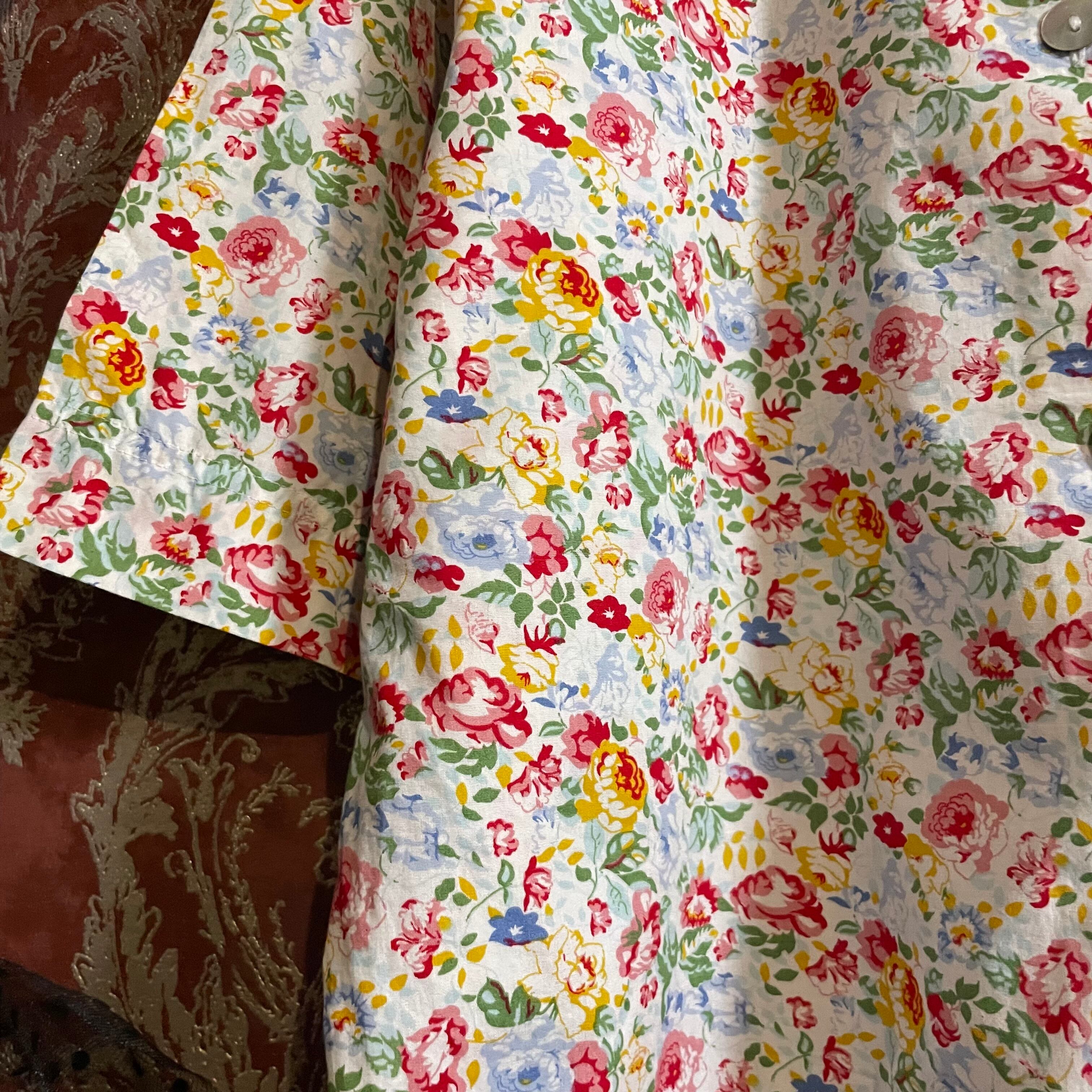 清涼感あふれる白地に、ビビッドな色彩の花々が映えるコンビネーションは、きっとあなたの着こなしの主役になることでしょう。