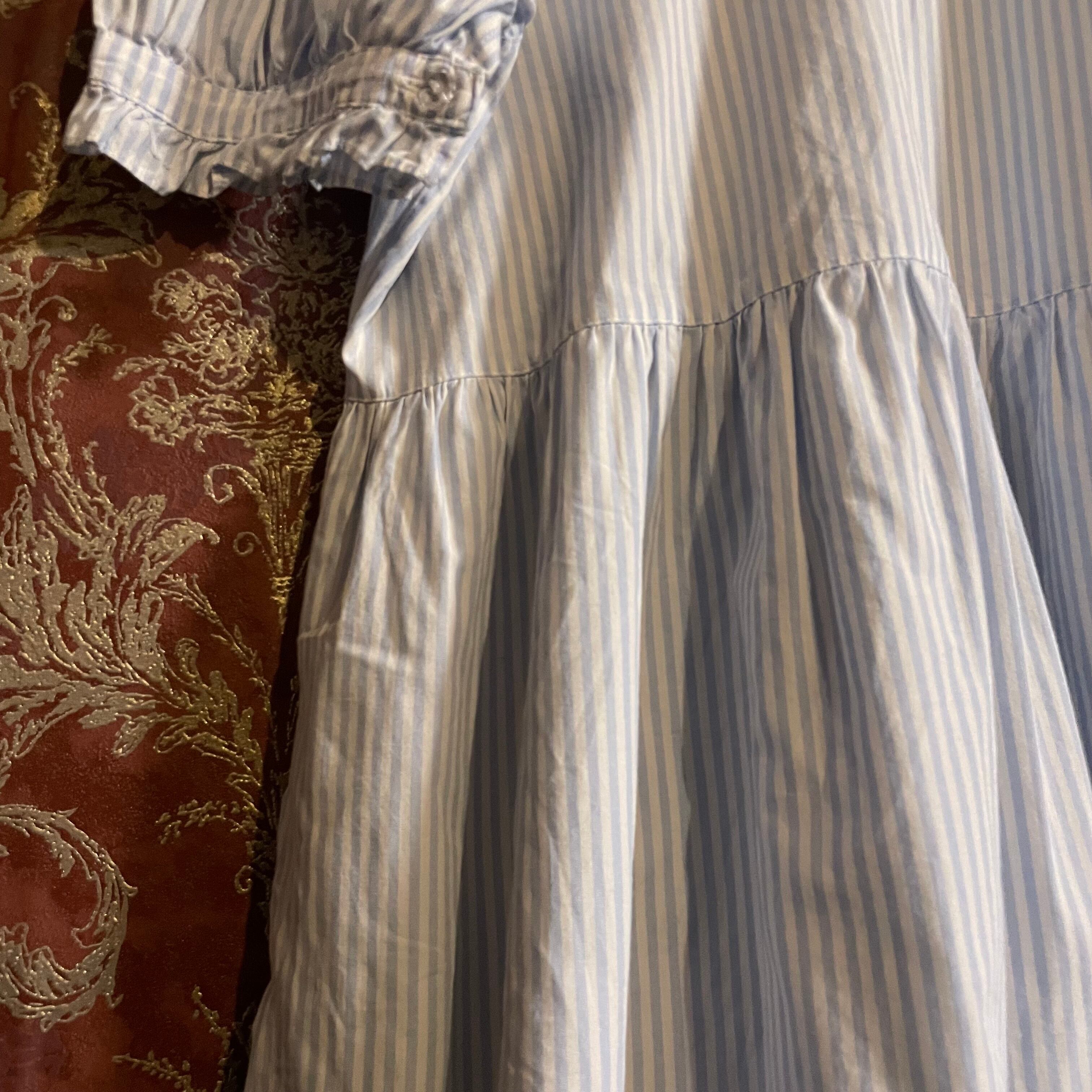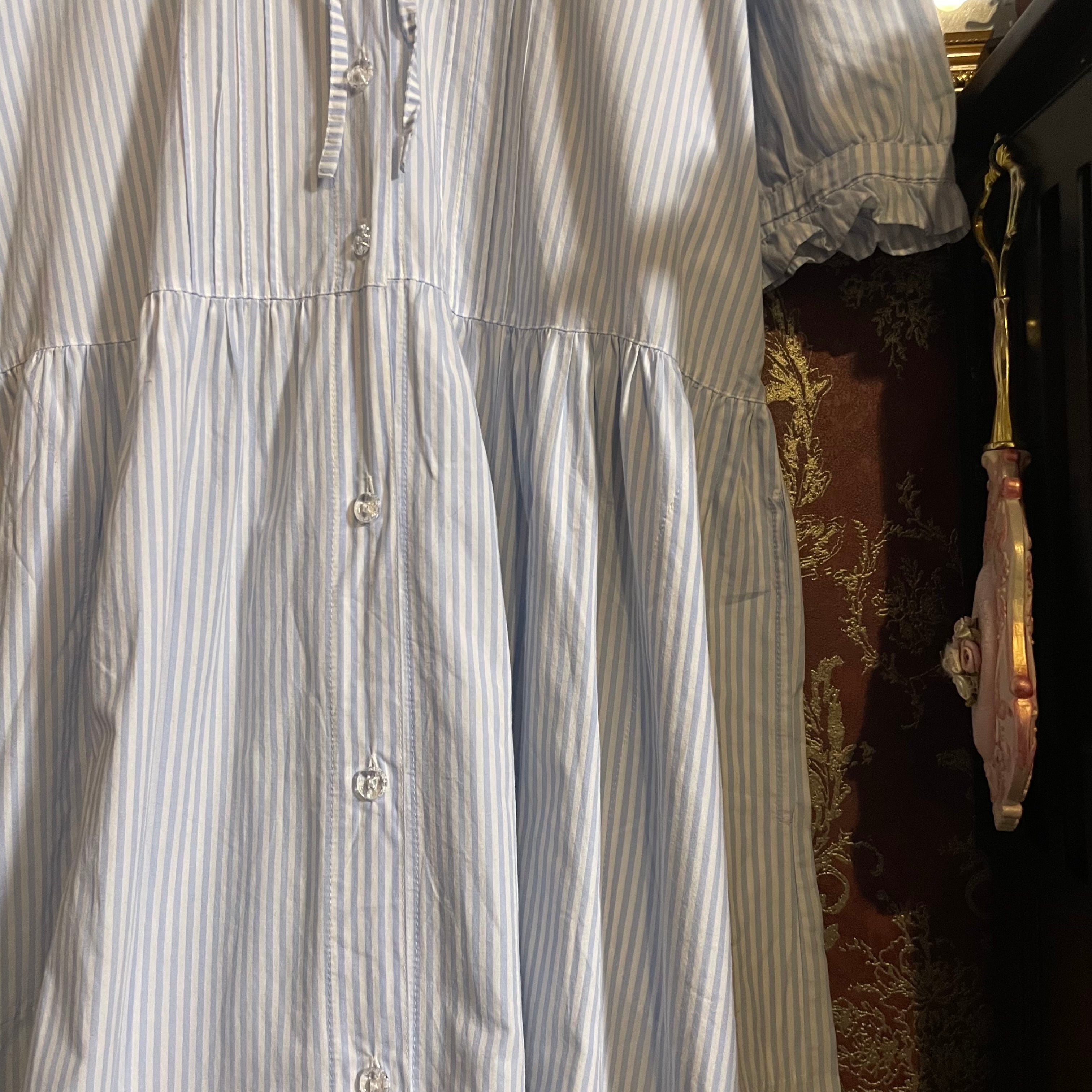春夏にぴったりな爽やかな雰囲気漂う、水色×白のストライプワンピースです。