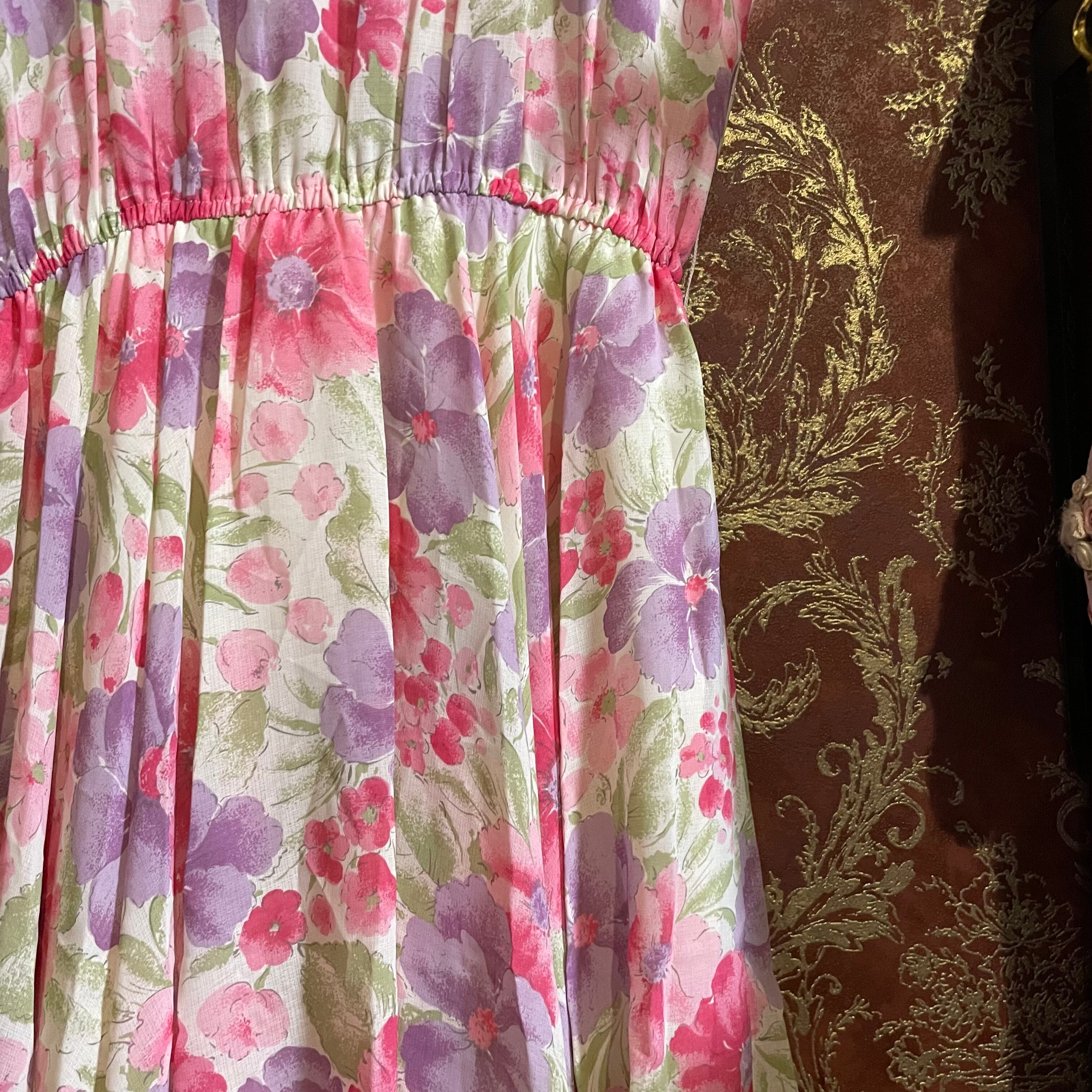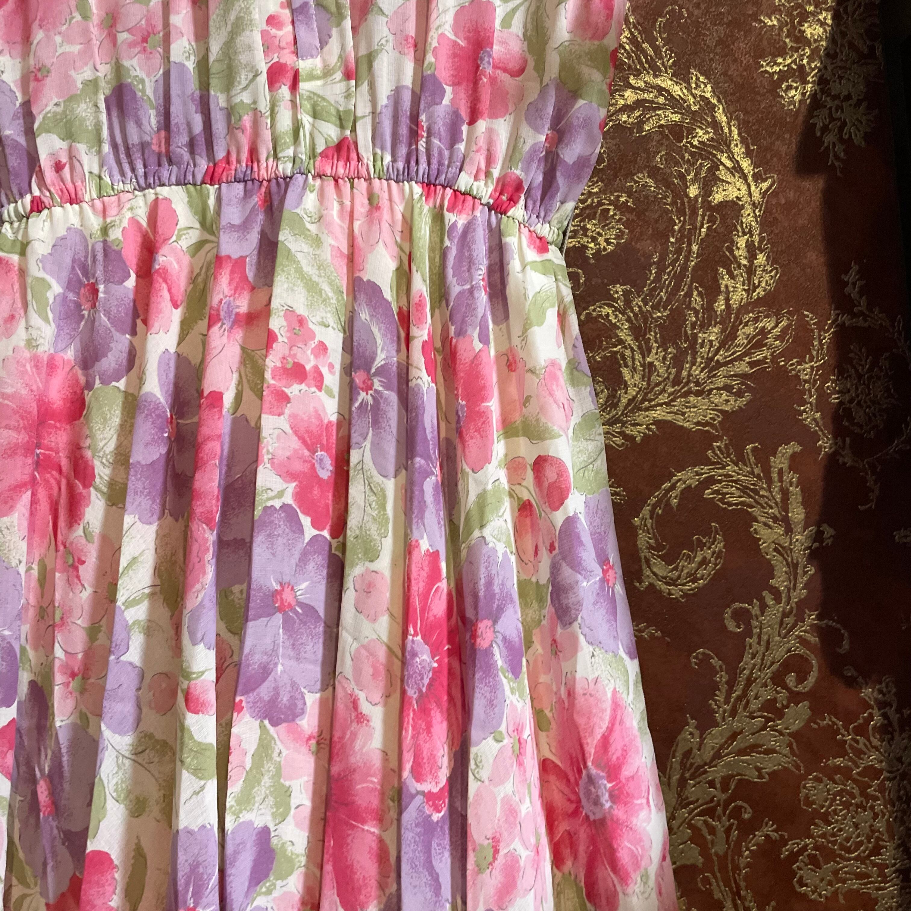 洗練されたデザインが魅力のピンクの花柄ワンピースです。