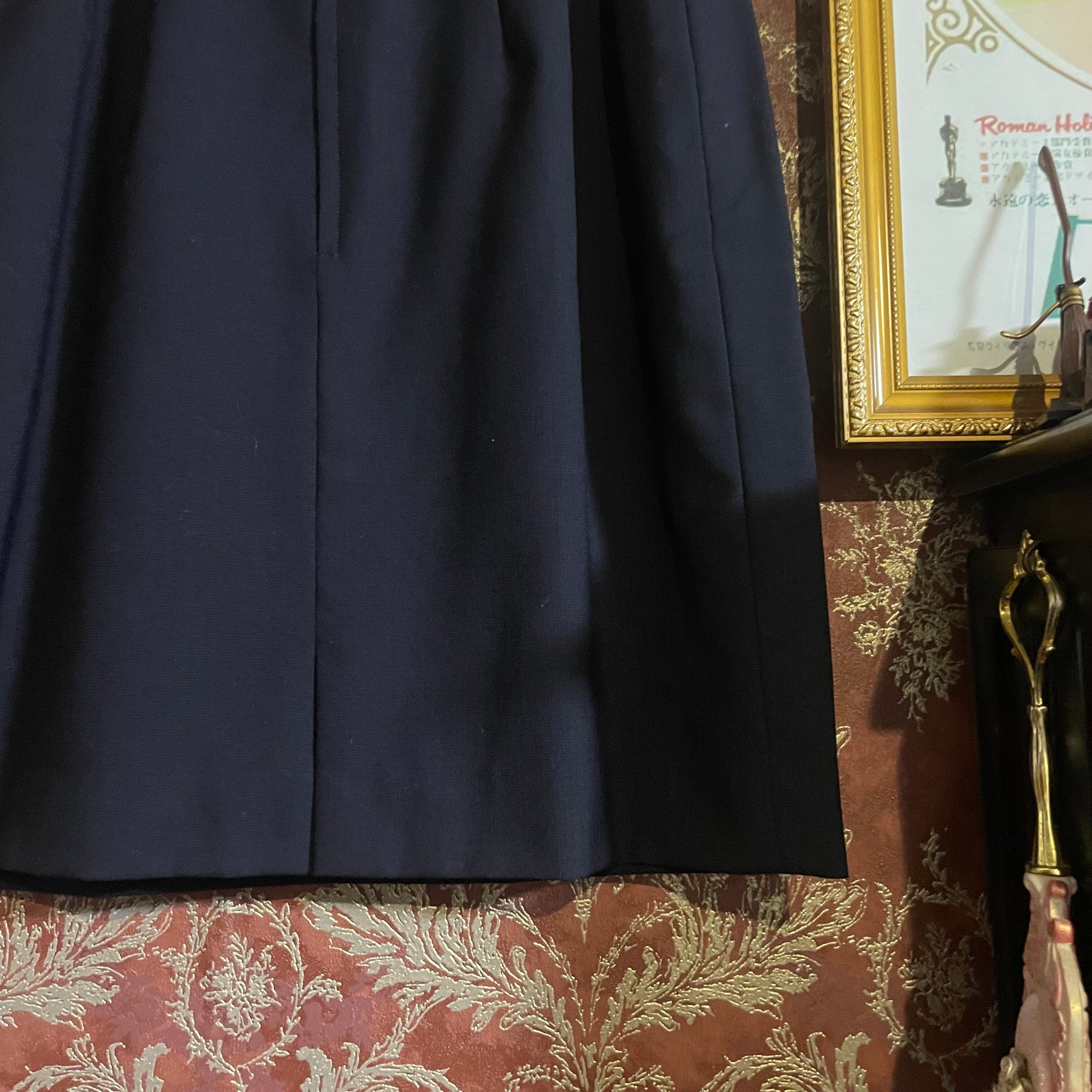 上質な紺色をベースにしたジャケットとスカートのセットで、洗練された印象を演出します。