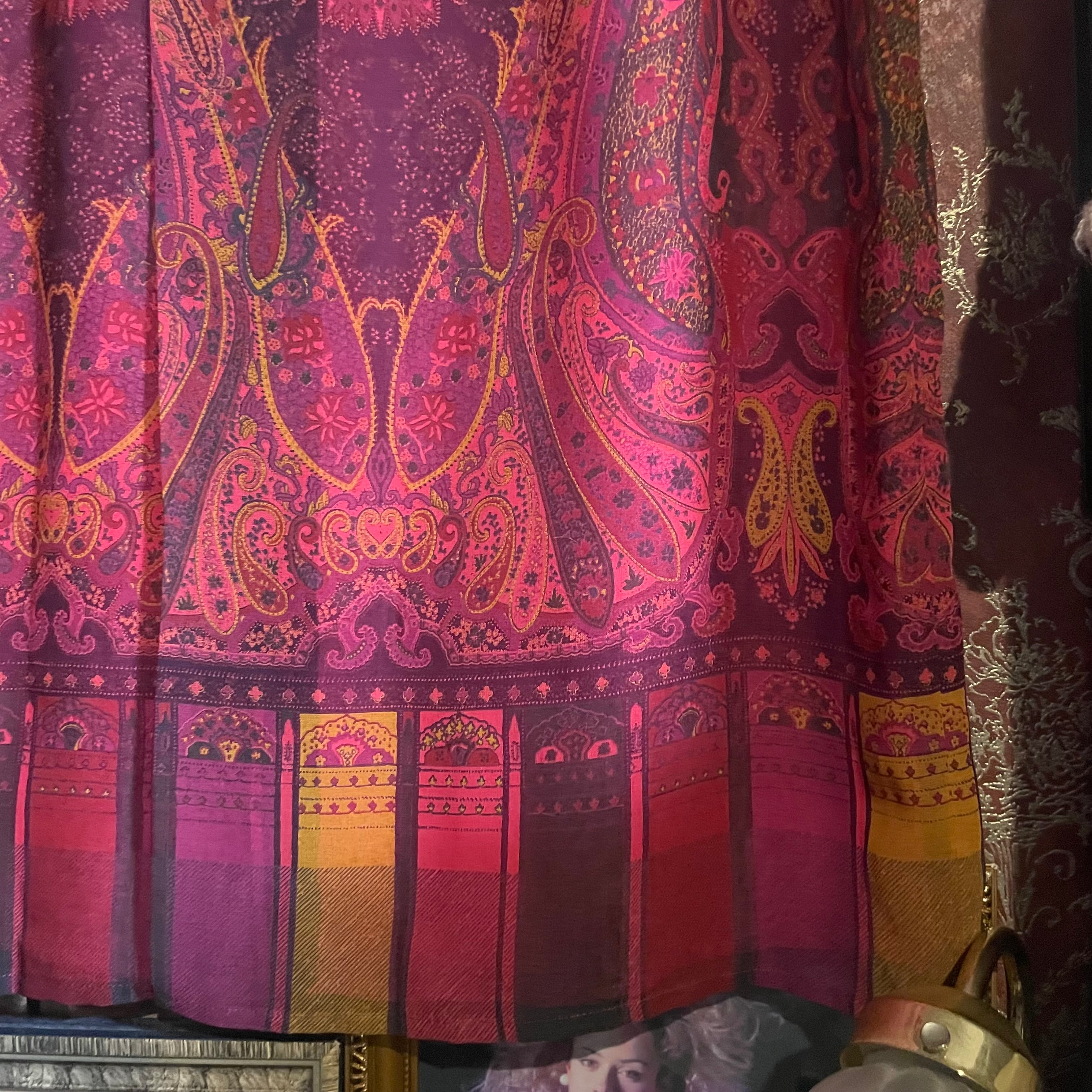 軽やかな素材感と、カラフルな柄が夏の装いにぴったりな一枚です。