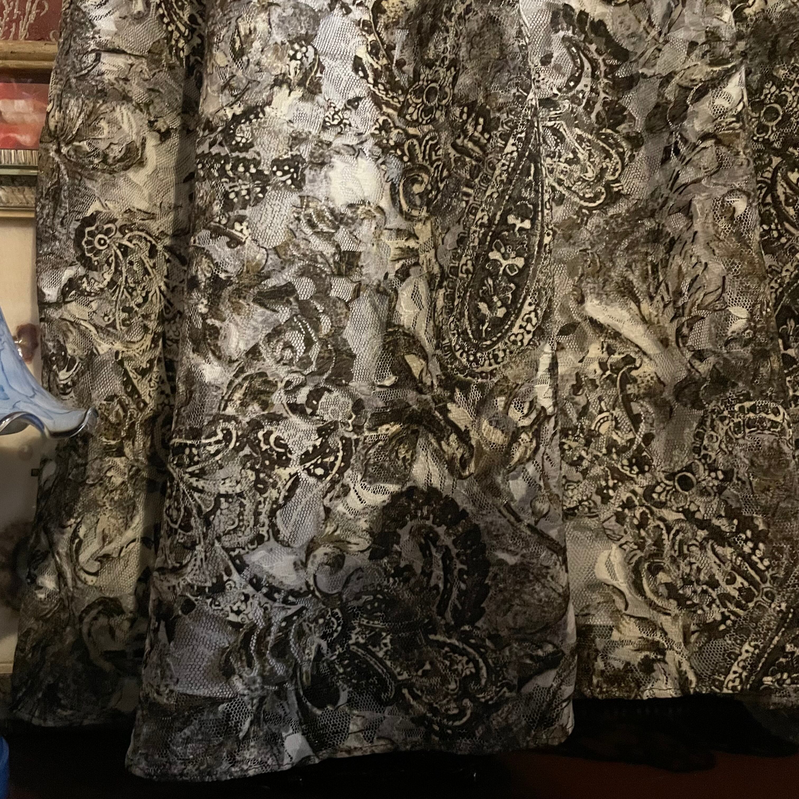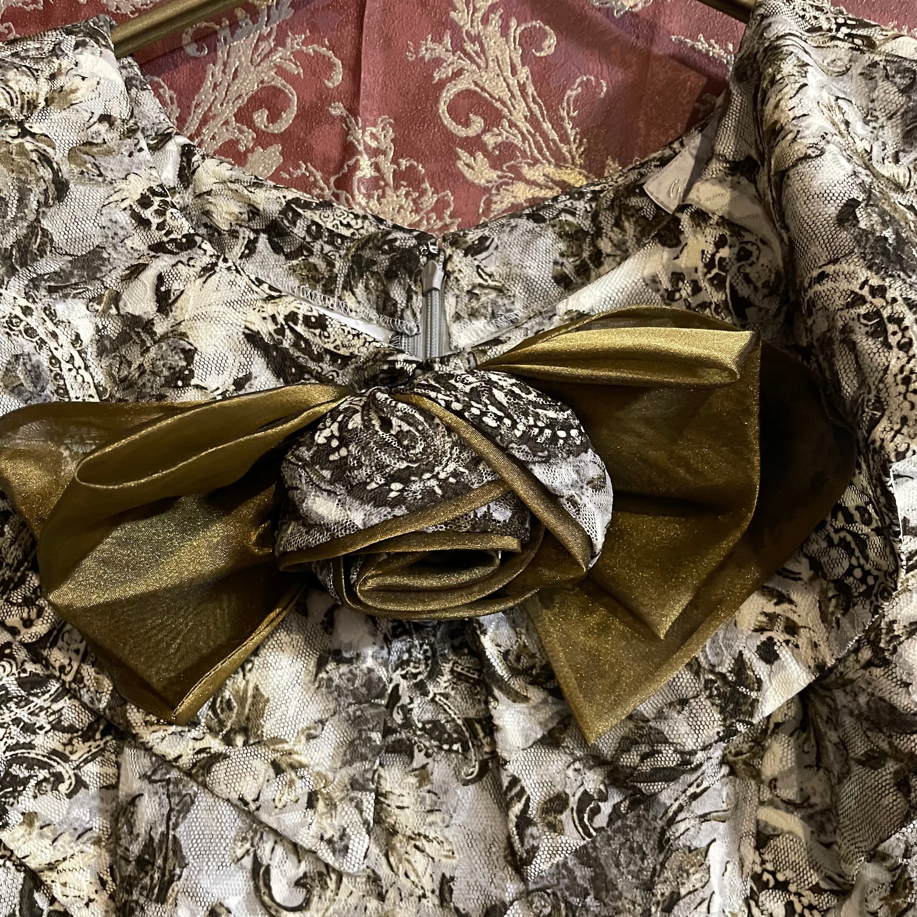 洗練された白と茶色のレースが美しさを引き立てる、ビッグカラー ドレスです。