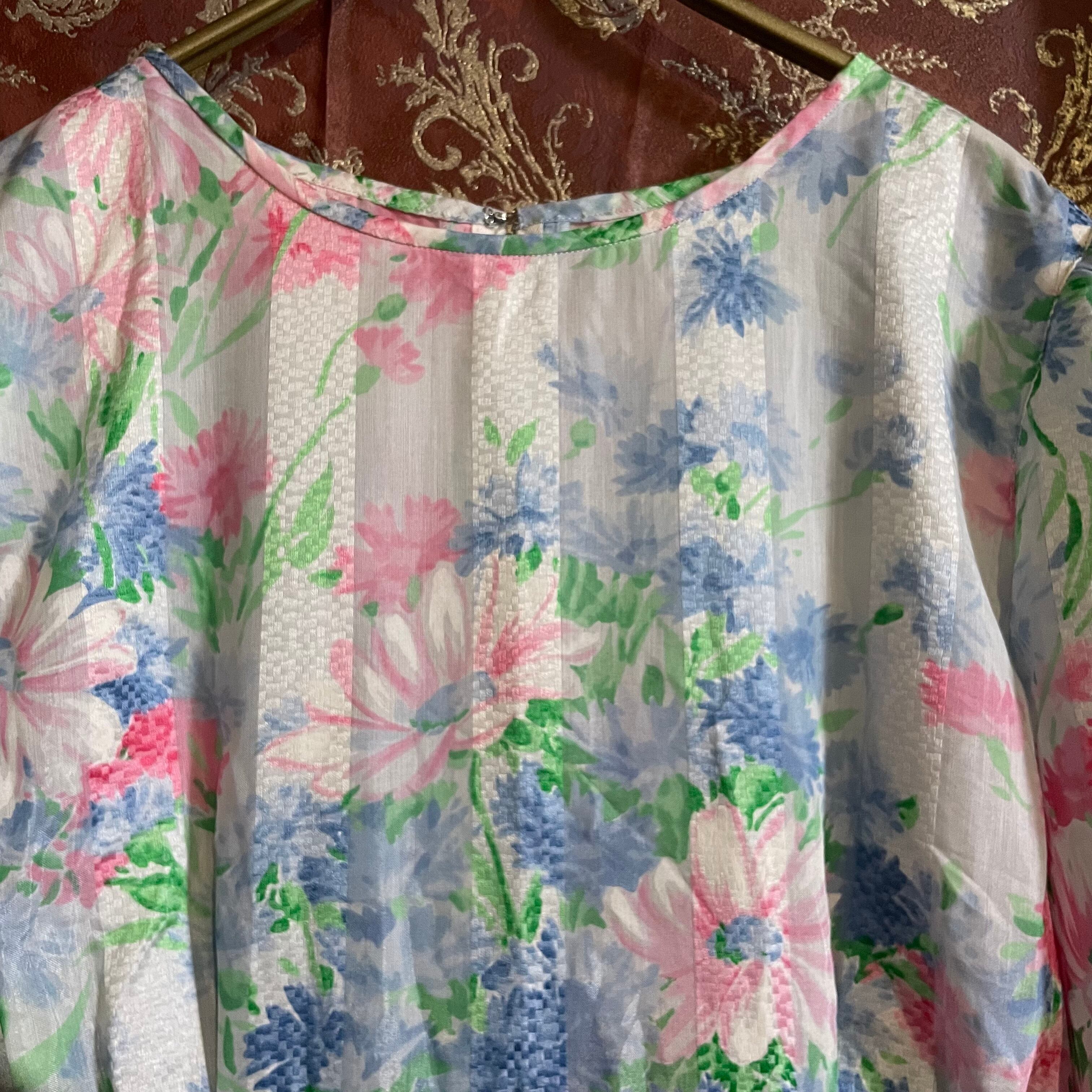 水彩画のような美しいタッチのヴィンテージワンピースです。