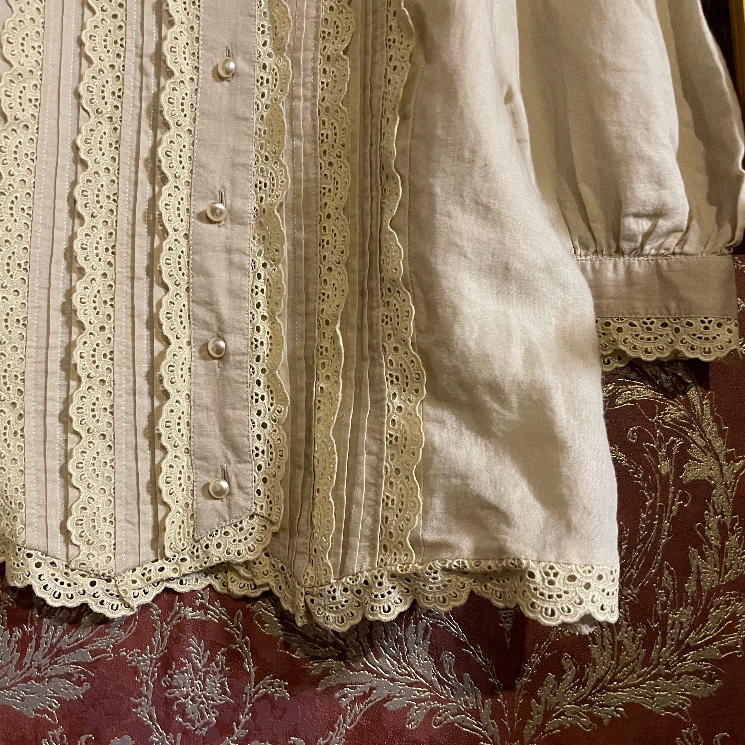 ナチュラルで上品な印象を与えるこのブラウスは、美しいレースが程よいアクセントになっています。