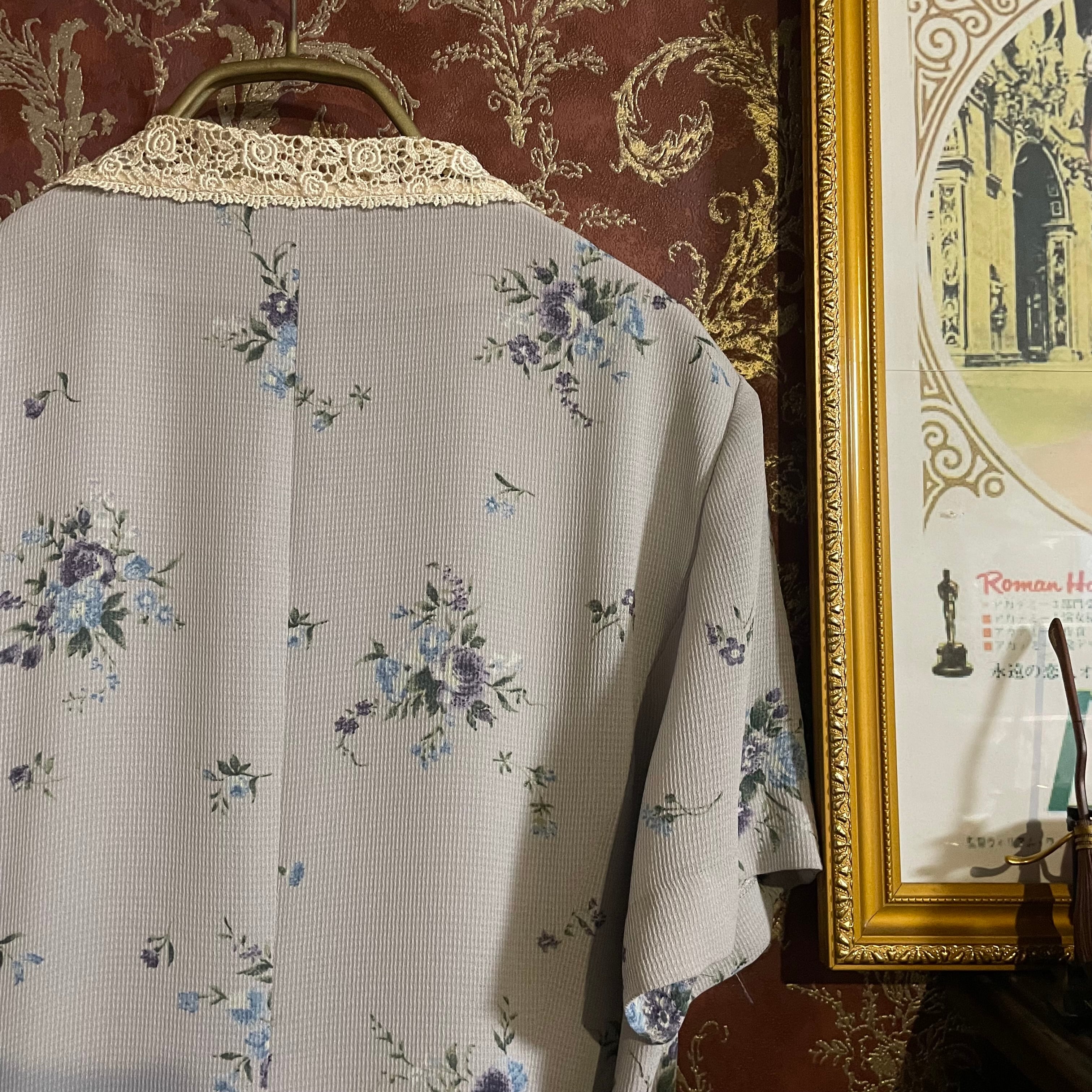 涼やかなアイスブルーカラーが映える、花柄レース襟のワンピースです。