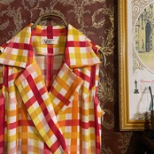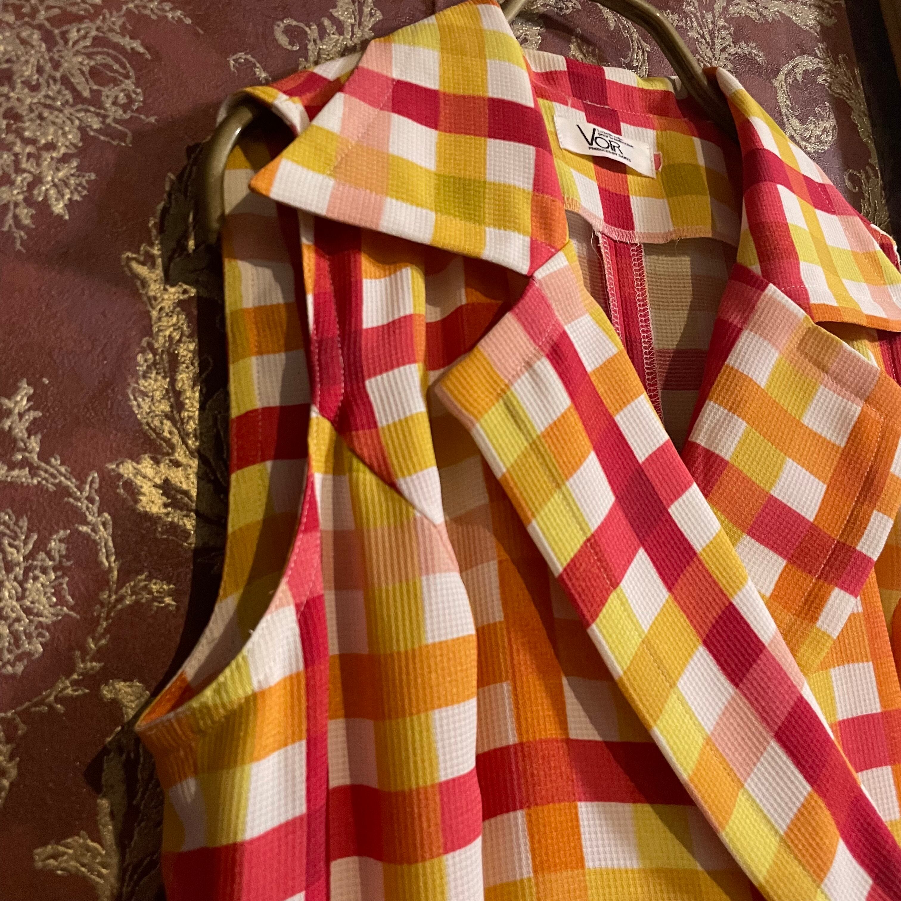 赤、オレンジ、黄のチェック柄が爽やかな夏ワンピースです。