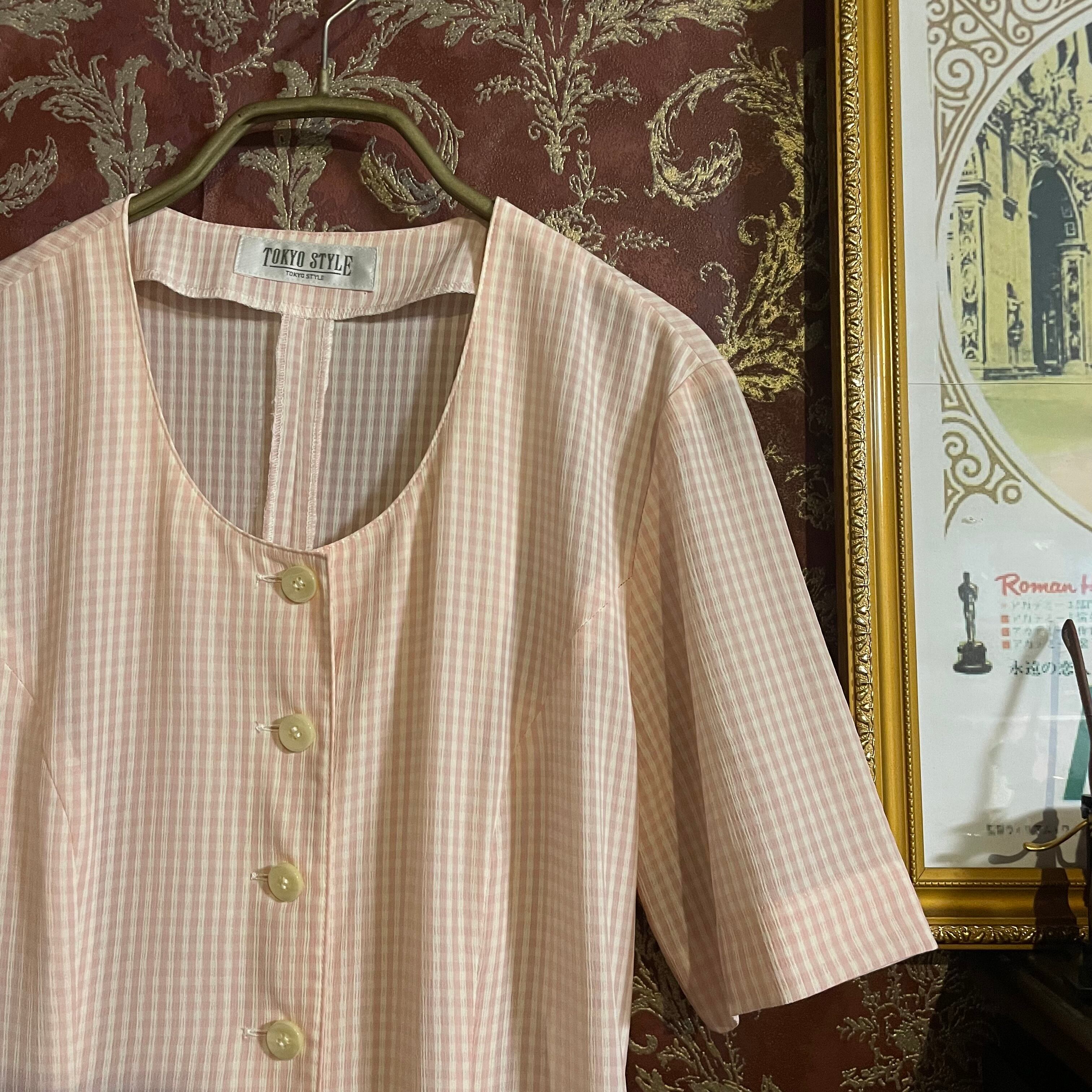 ピンクと白のギンガムチェックが可愛らしいワンピースです。