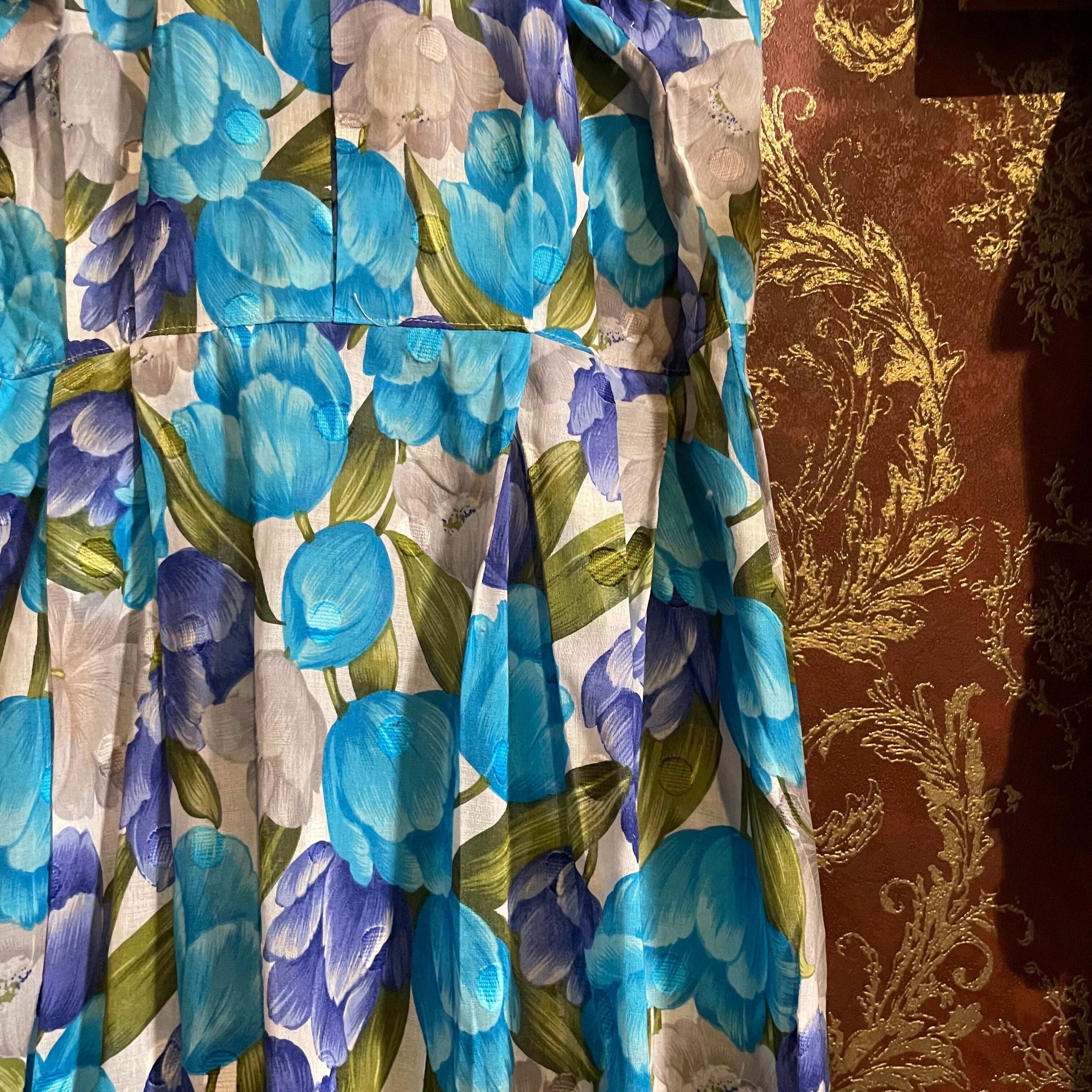 涼やかな白と青の花柄が魅力のワンピースです。