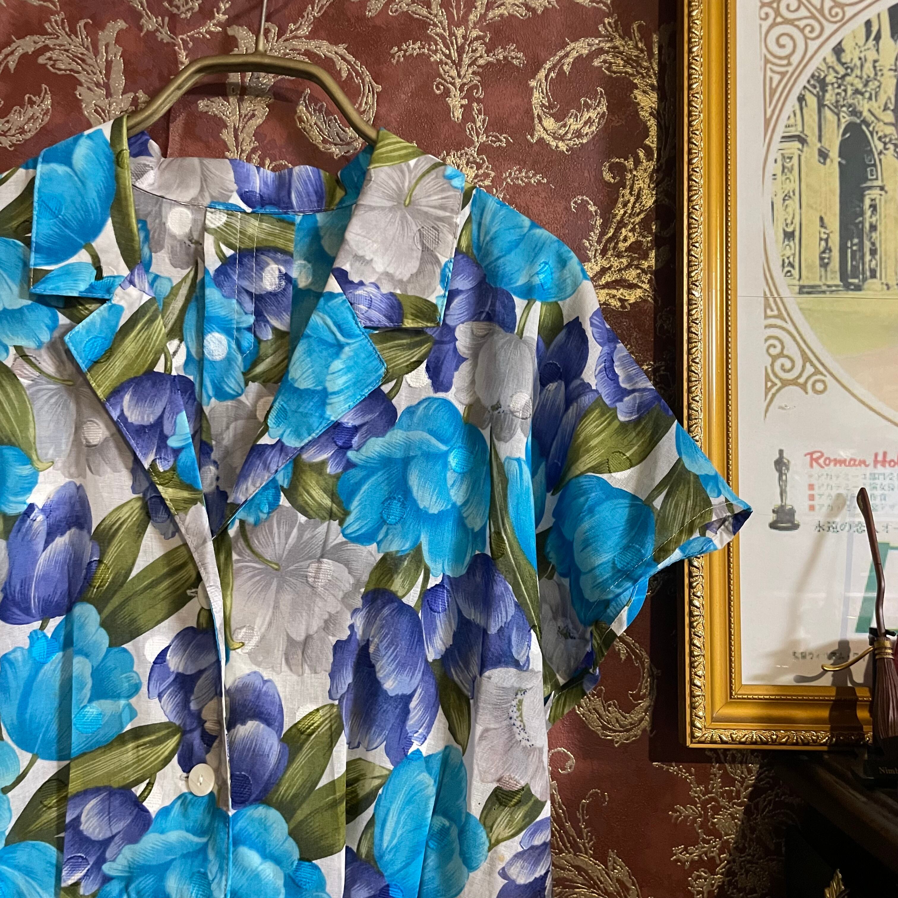 white × blue flower cotton one piece