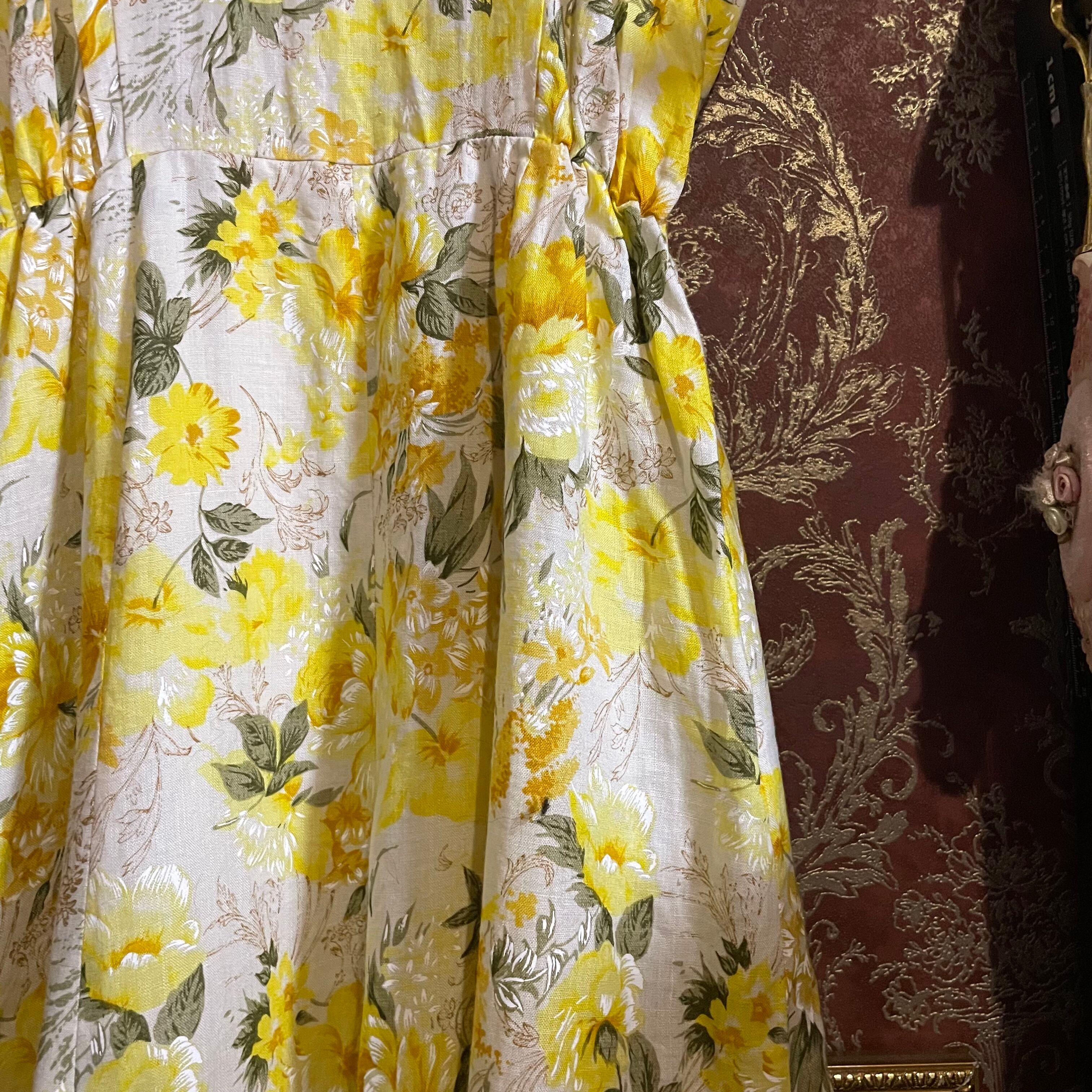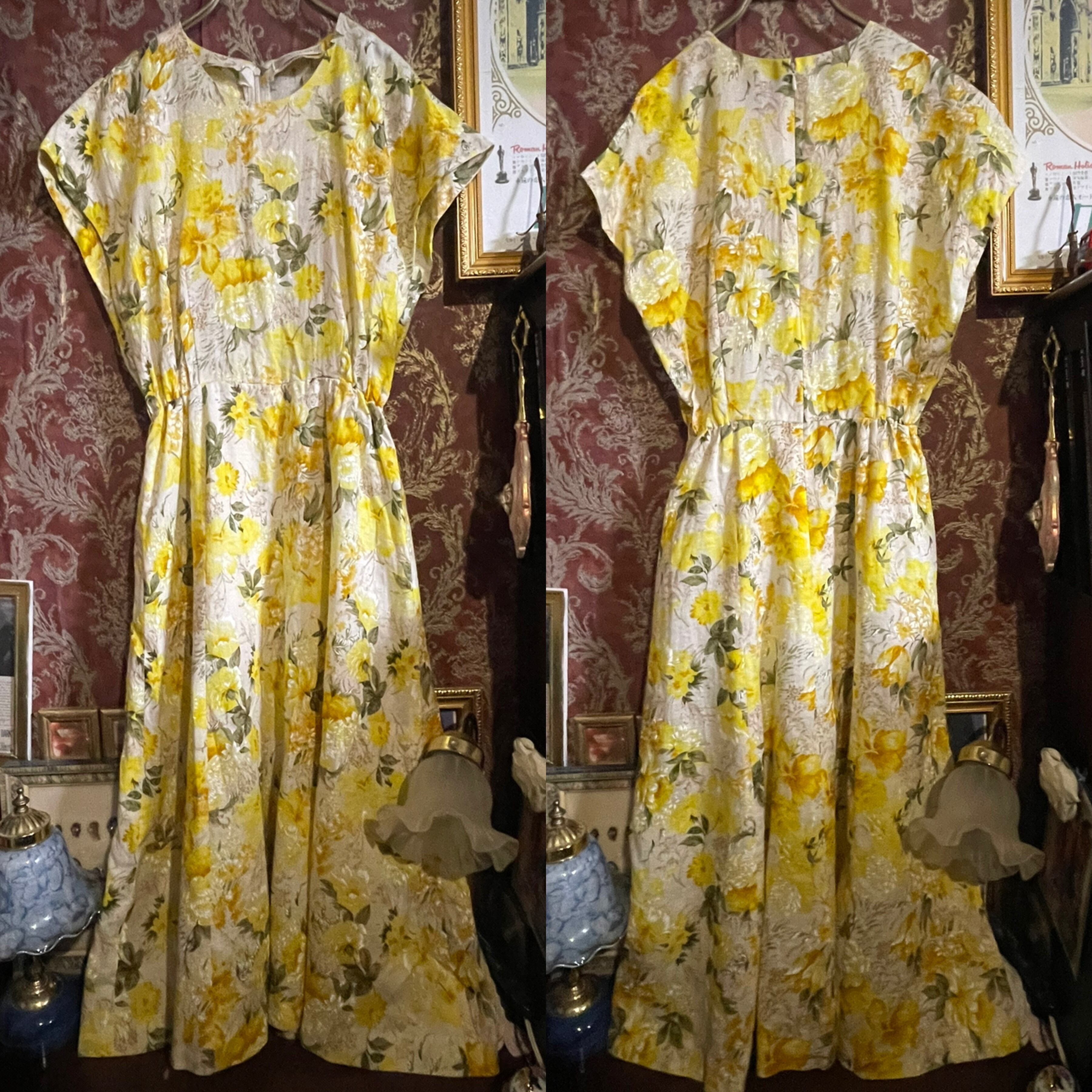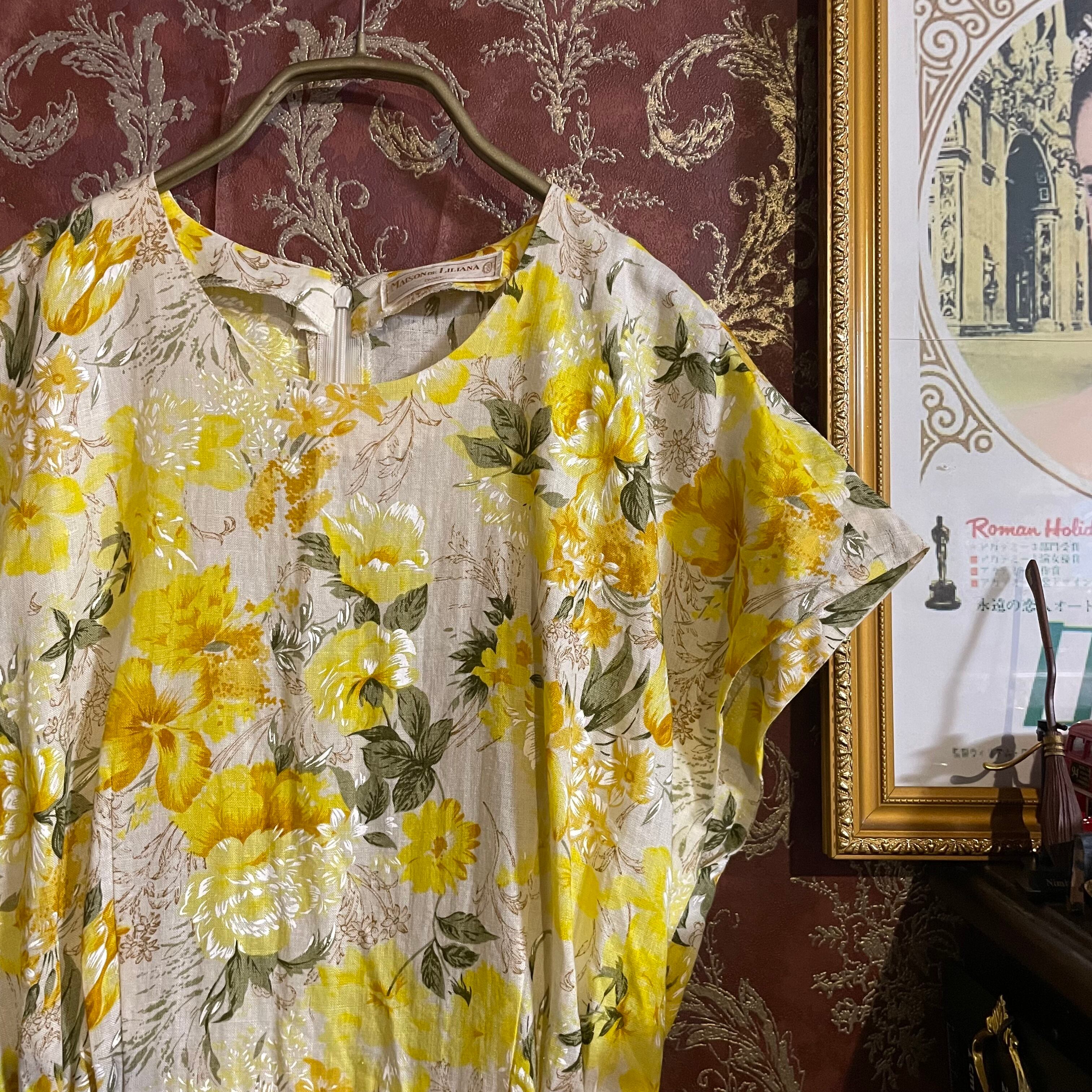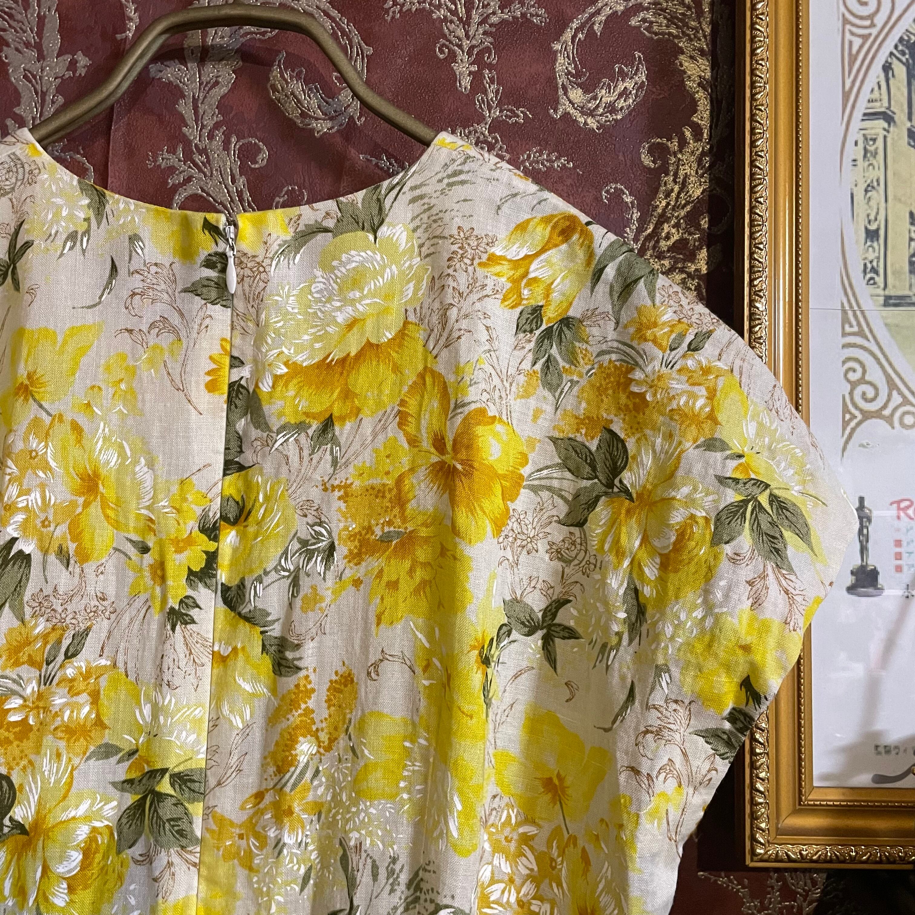 白をベースに黄色の花柄が映える夏らしいワンピースです。