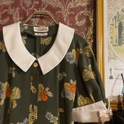 襟とカフスは上品な白で、カフスには可愛らしいリボンが付いており、女性らしさを引き立てます。