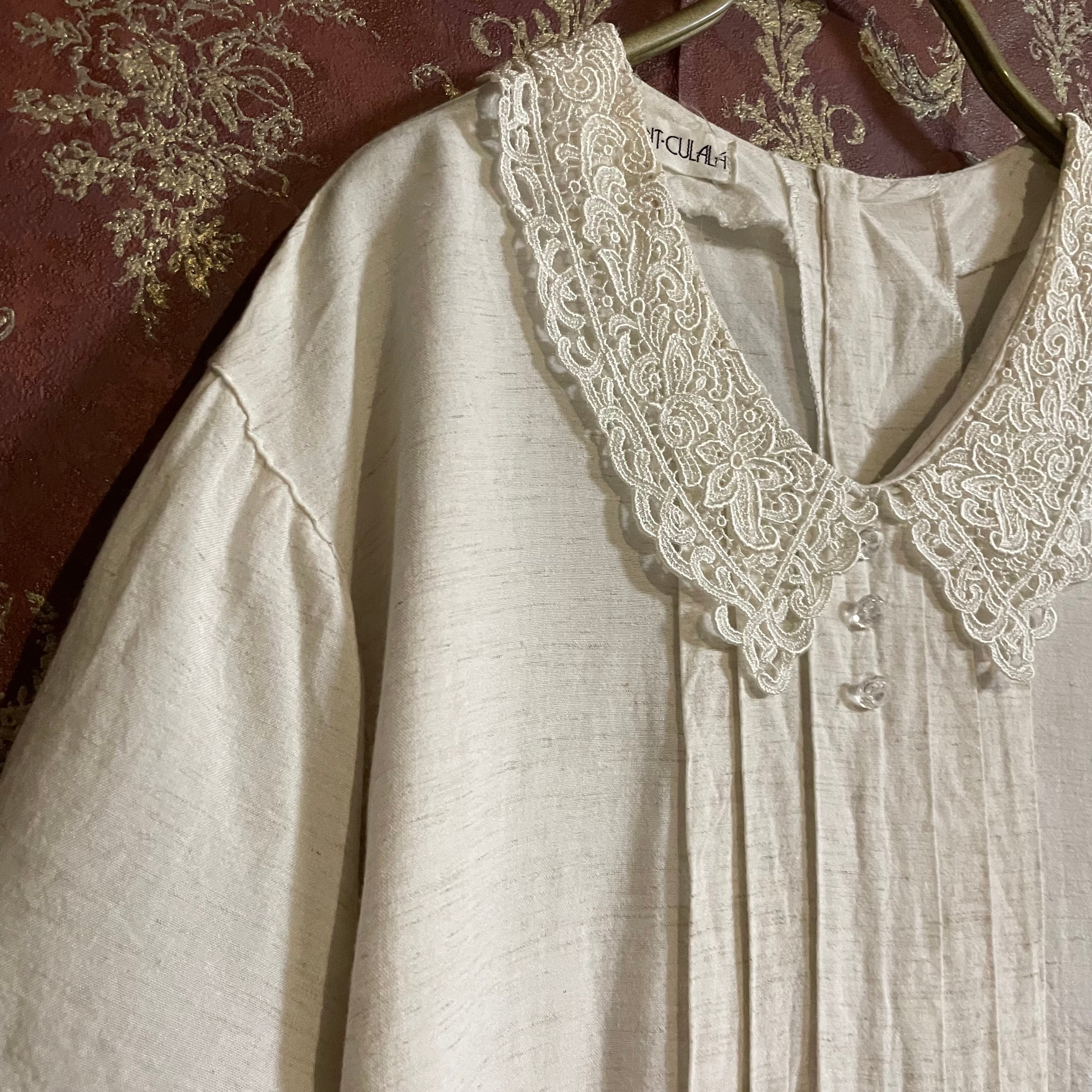 ナチュラルで優雅な印象を纏う、レース襟のブラウスです。