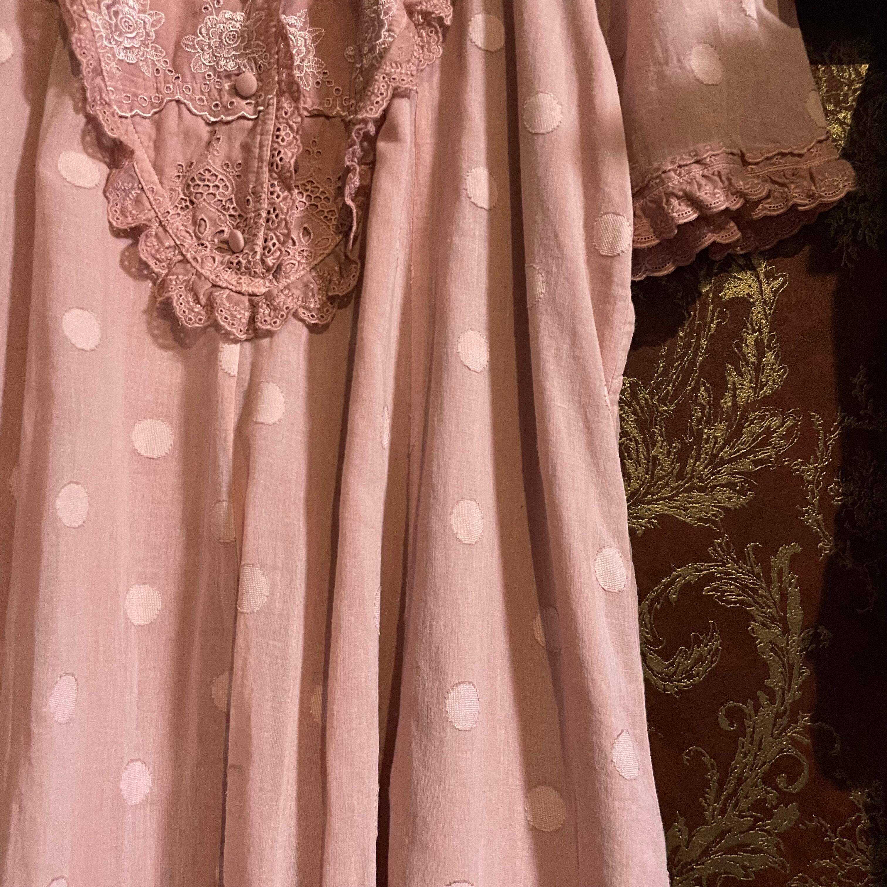 コインドット柄のジャガードをメインに、同色のレースで豪華に装飾されています。