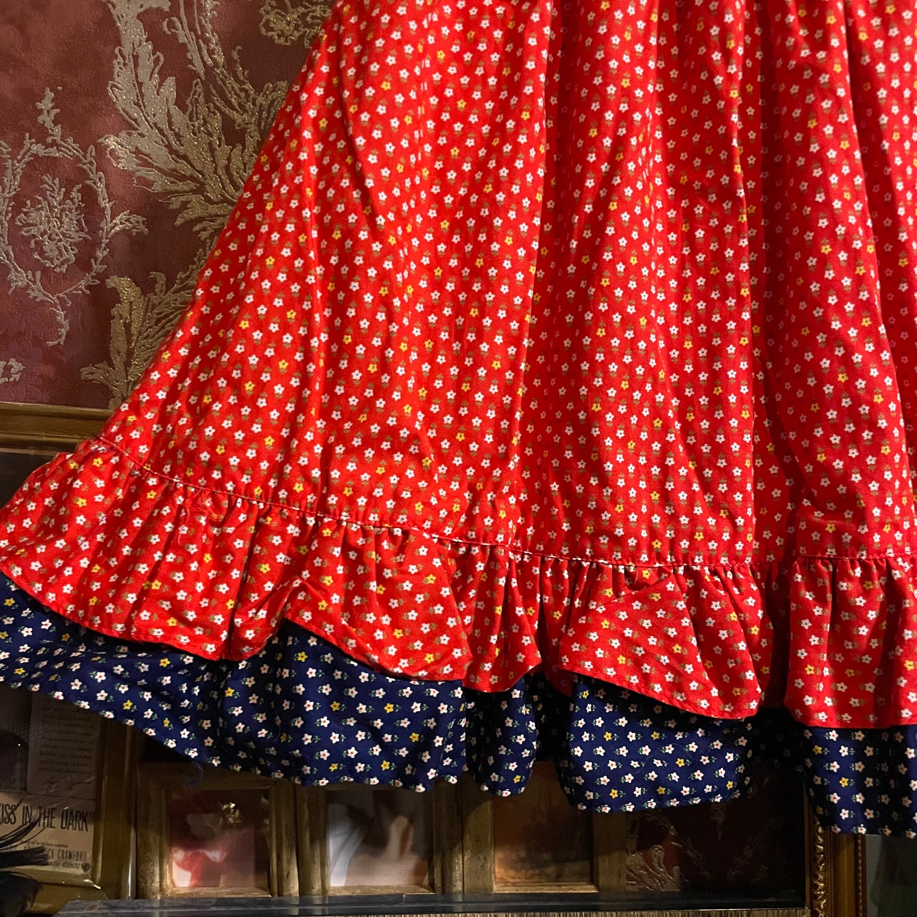 60-70s vintage red flower dress