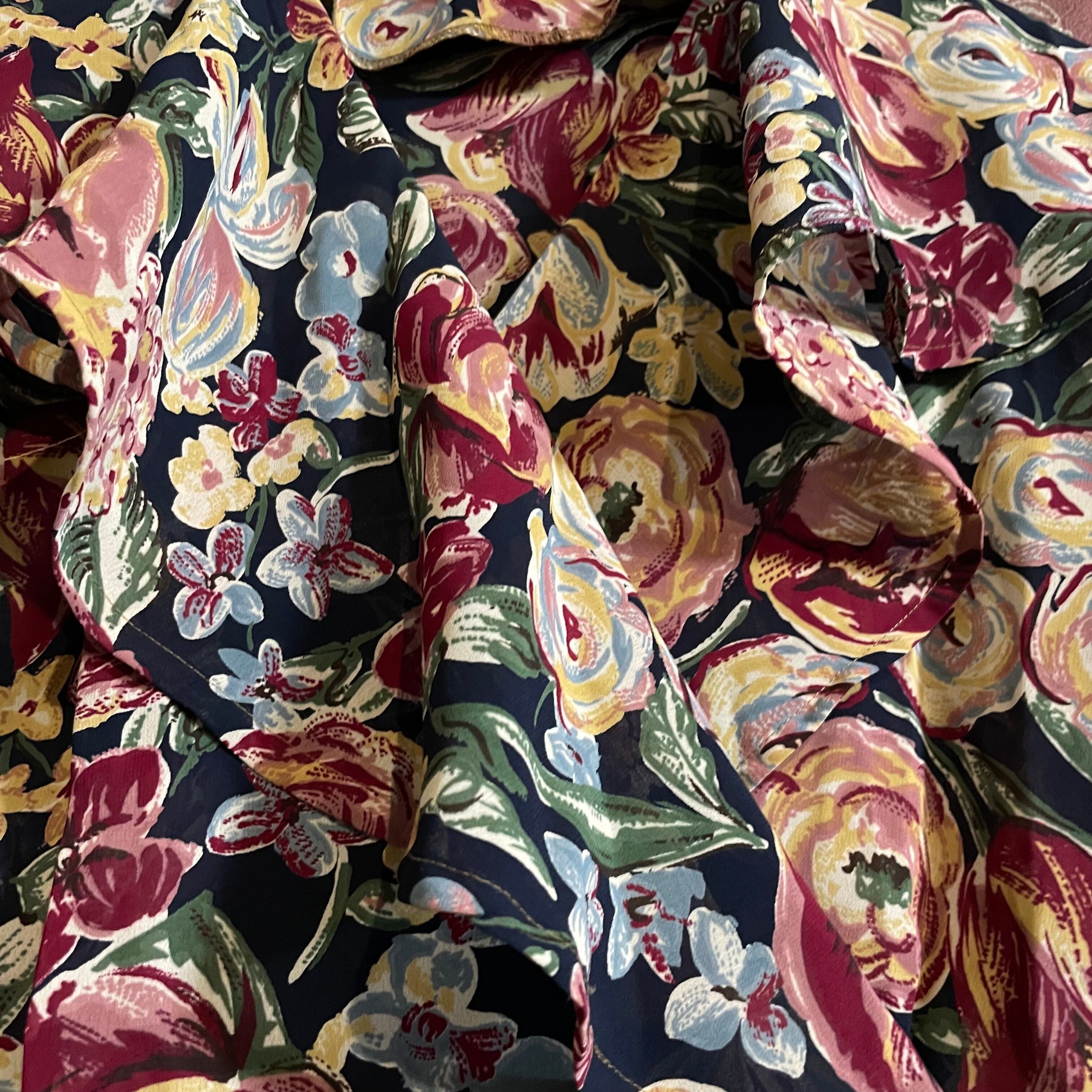 まるで絵画のような美しい花柄が特徴のワンピースです。