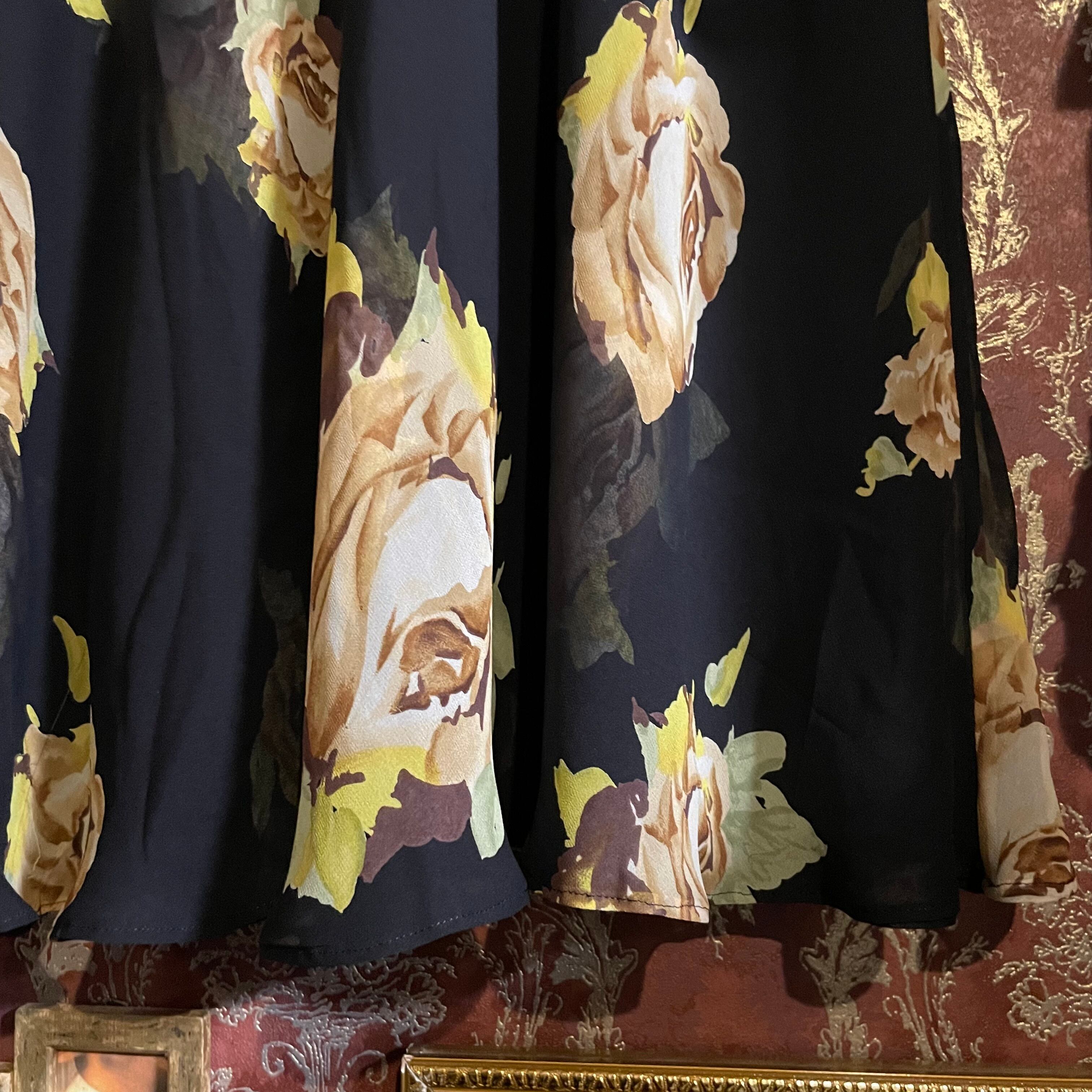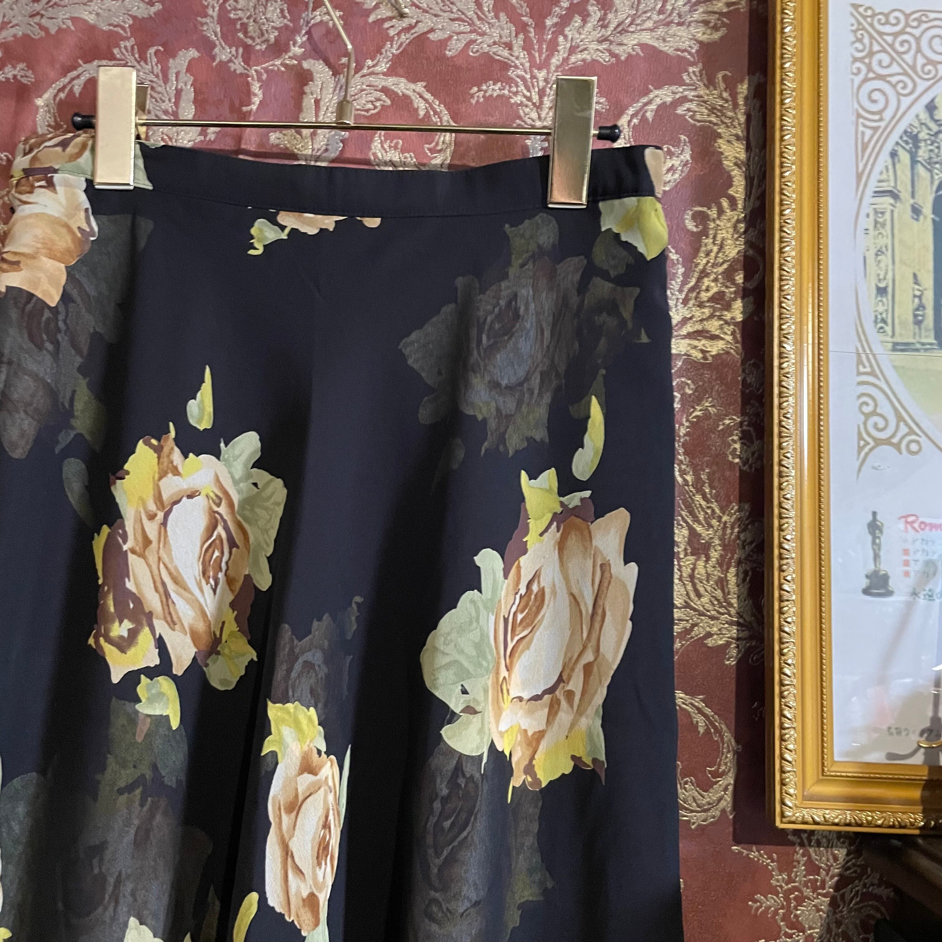 黒をベースにすけ感のあるバラ柄のスカートです。