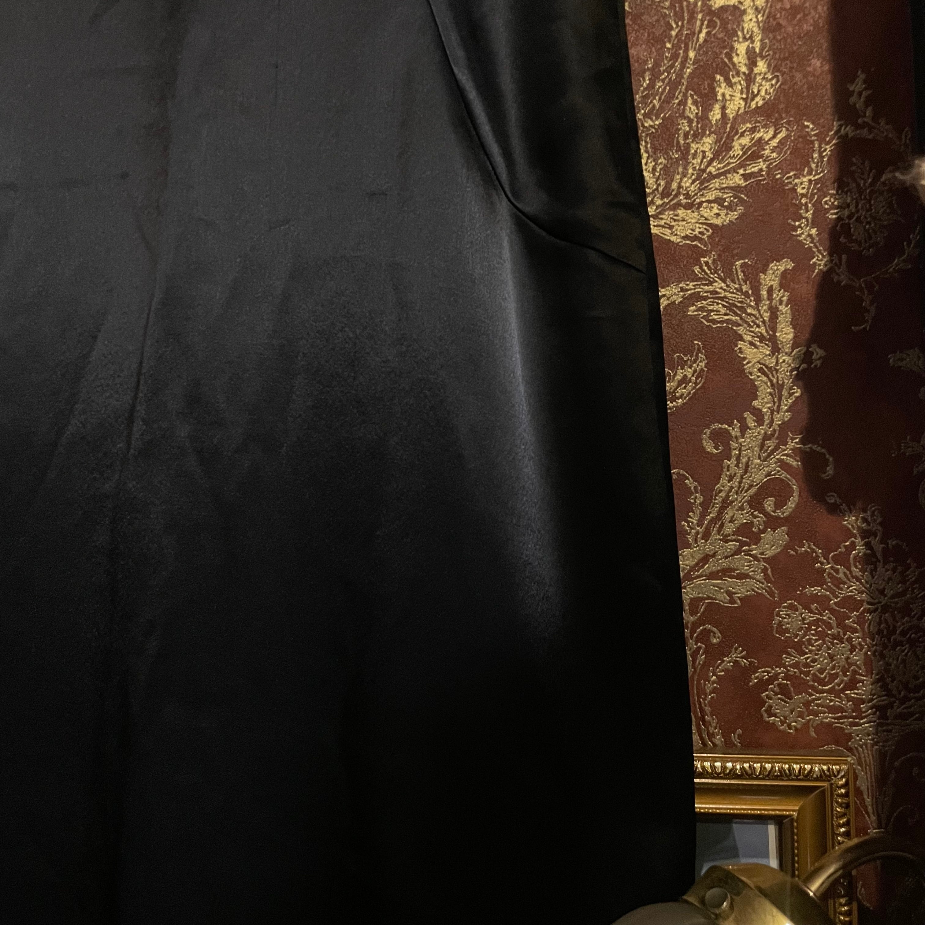 艶のある滑らかな素材とウエストラインを美しく見せるフィット感が、着るだけで優雅な雰囲気を醸し出します。