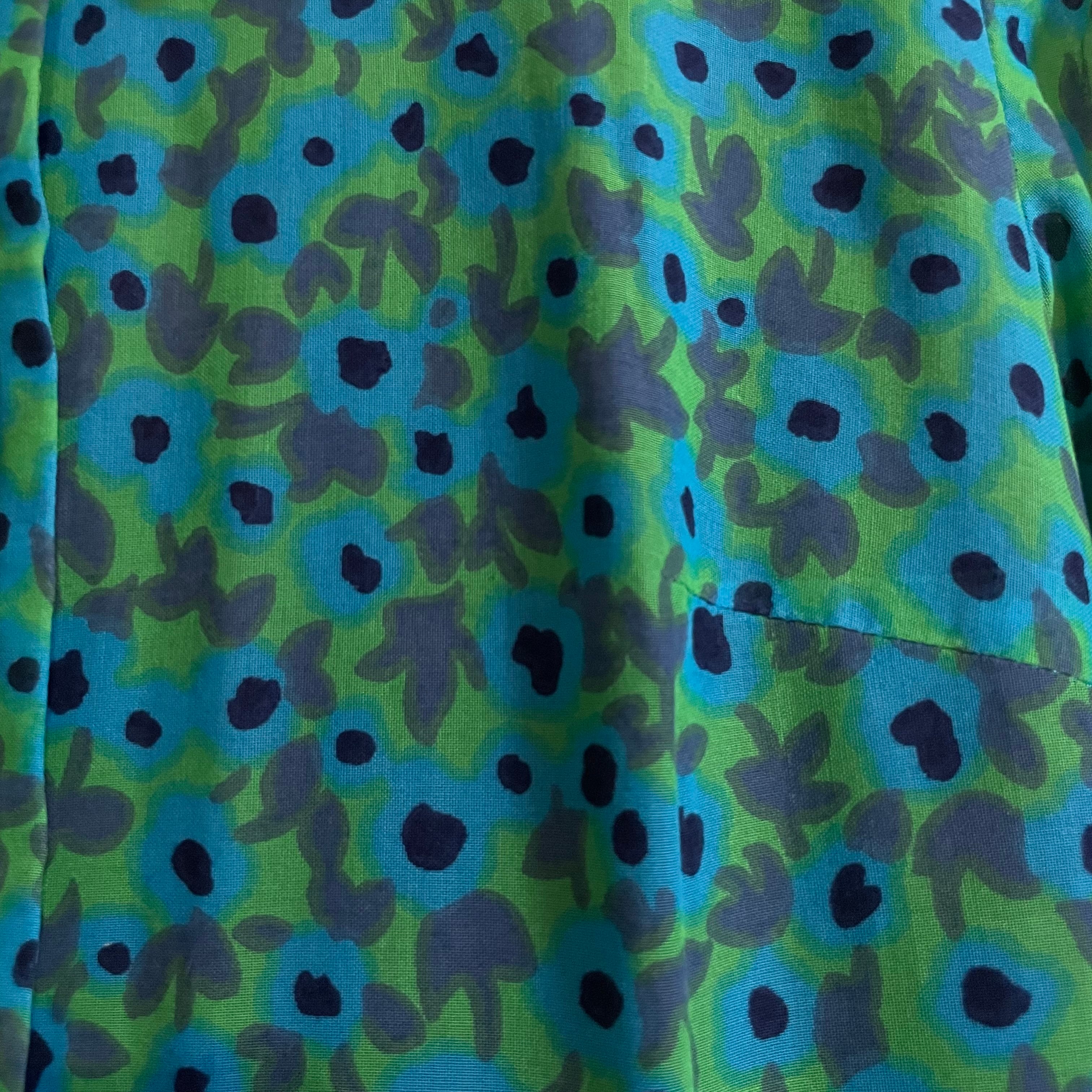 緑とオレンジのアクセントが施されたレトロなデザインは、どこか懐かしくておしゃれな一着です。