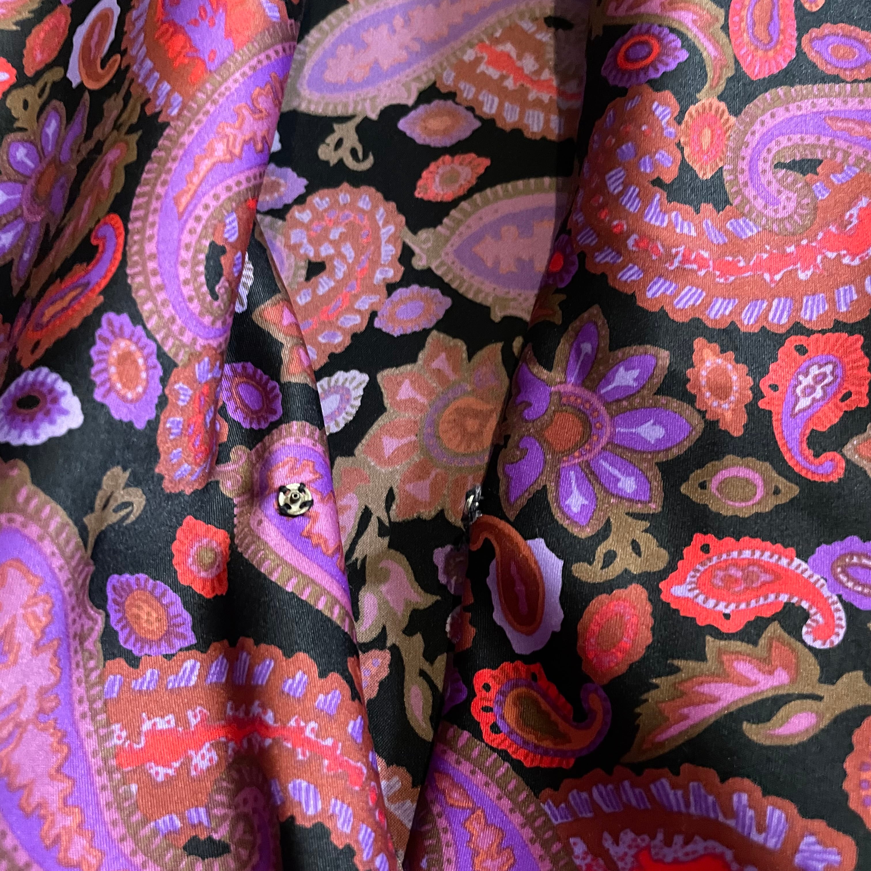 とても繊細な柄とミックスベリーのような毒っ気のある色味がとても美しい一着です。