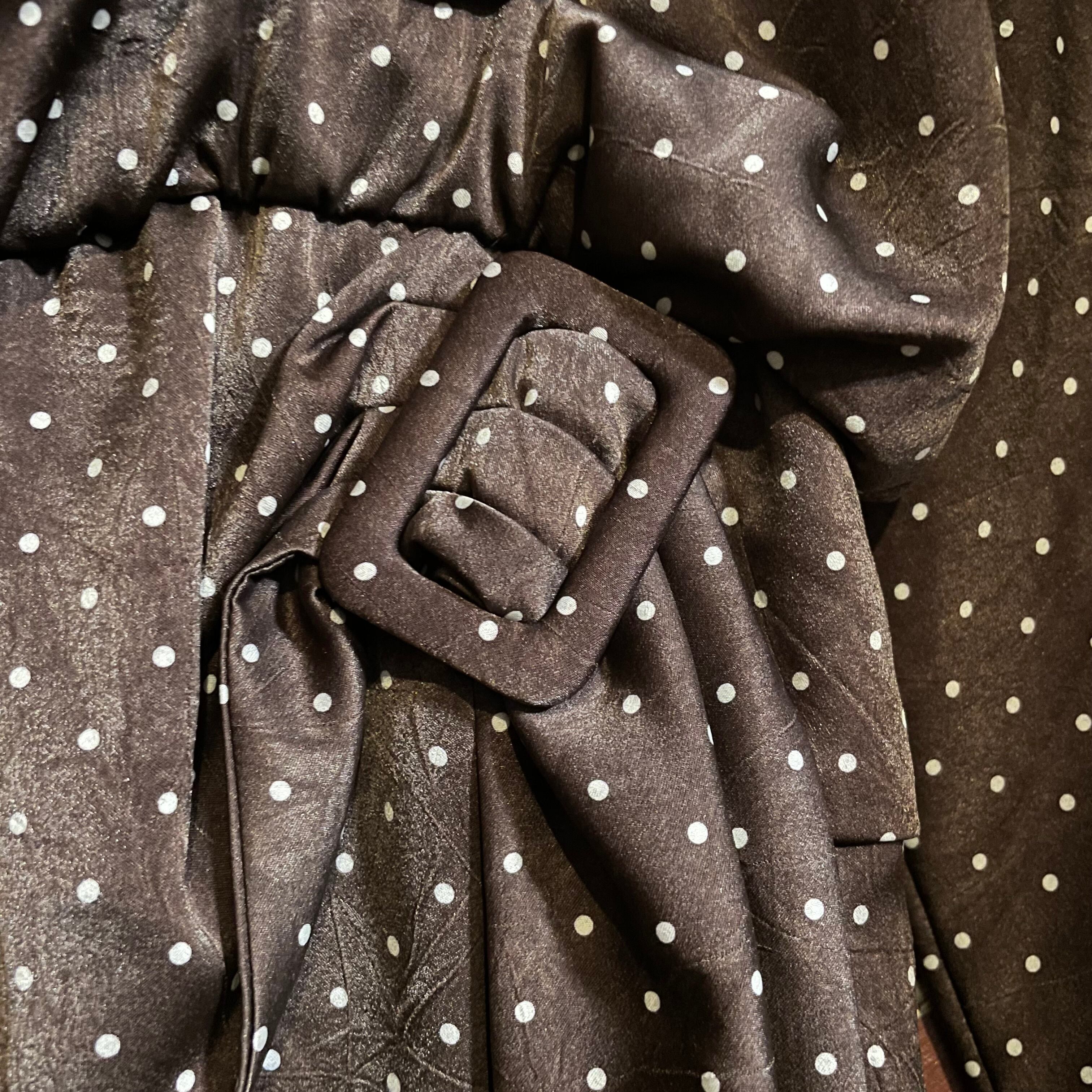 上身頃はゆったりとしたドルマンスリーブで、ウエストにはベルト風の装飾がついています。