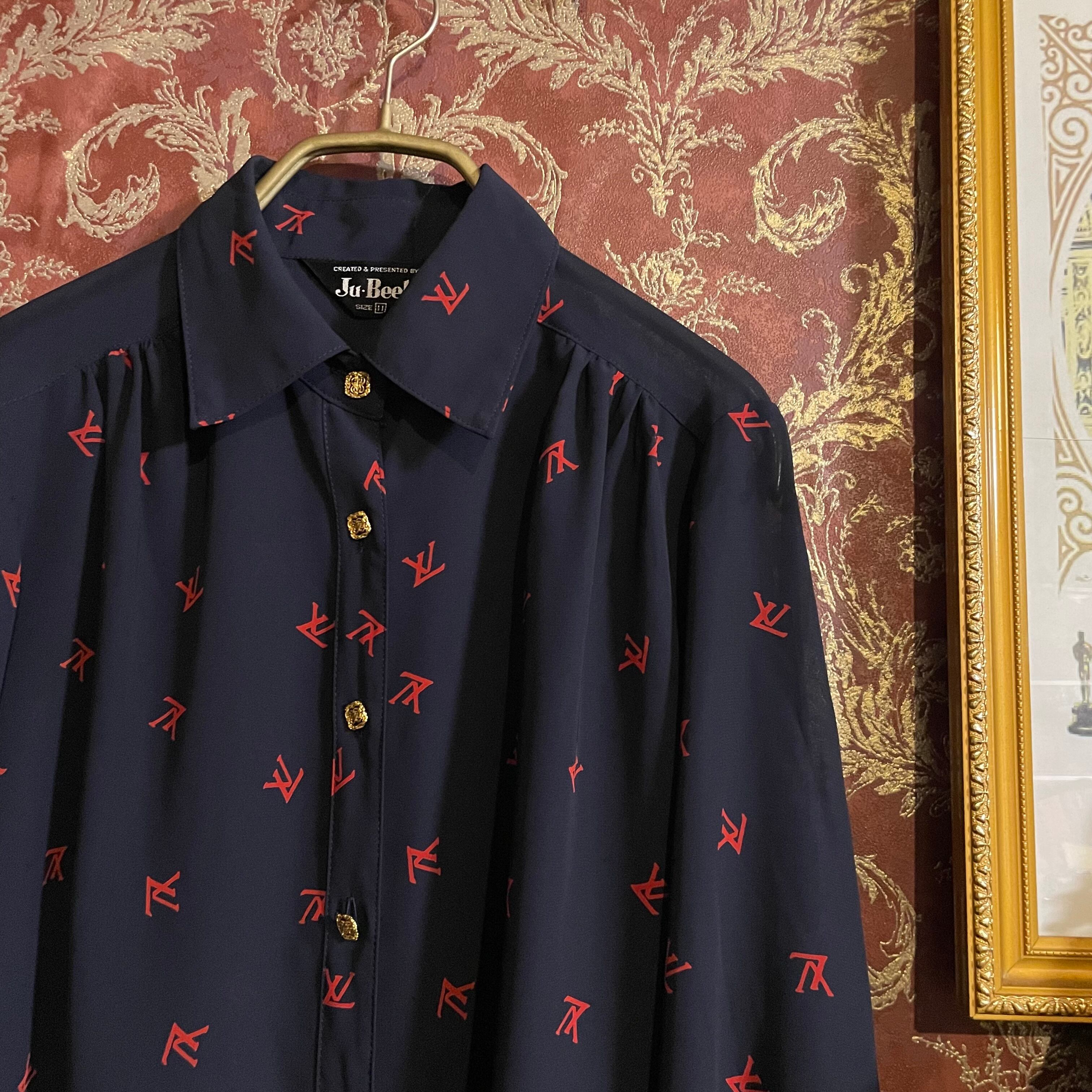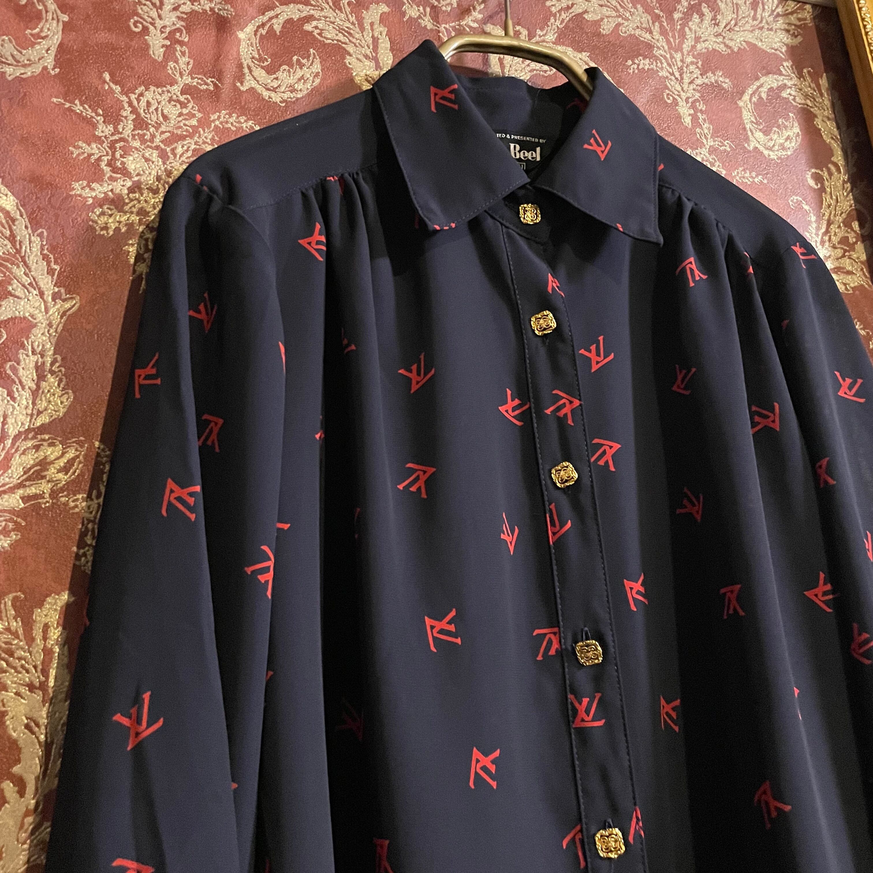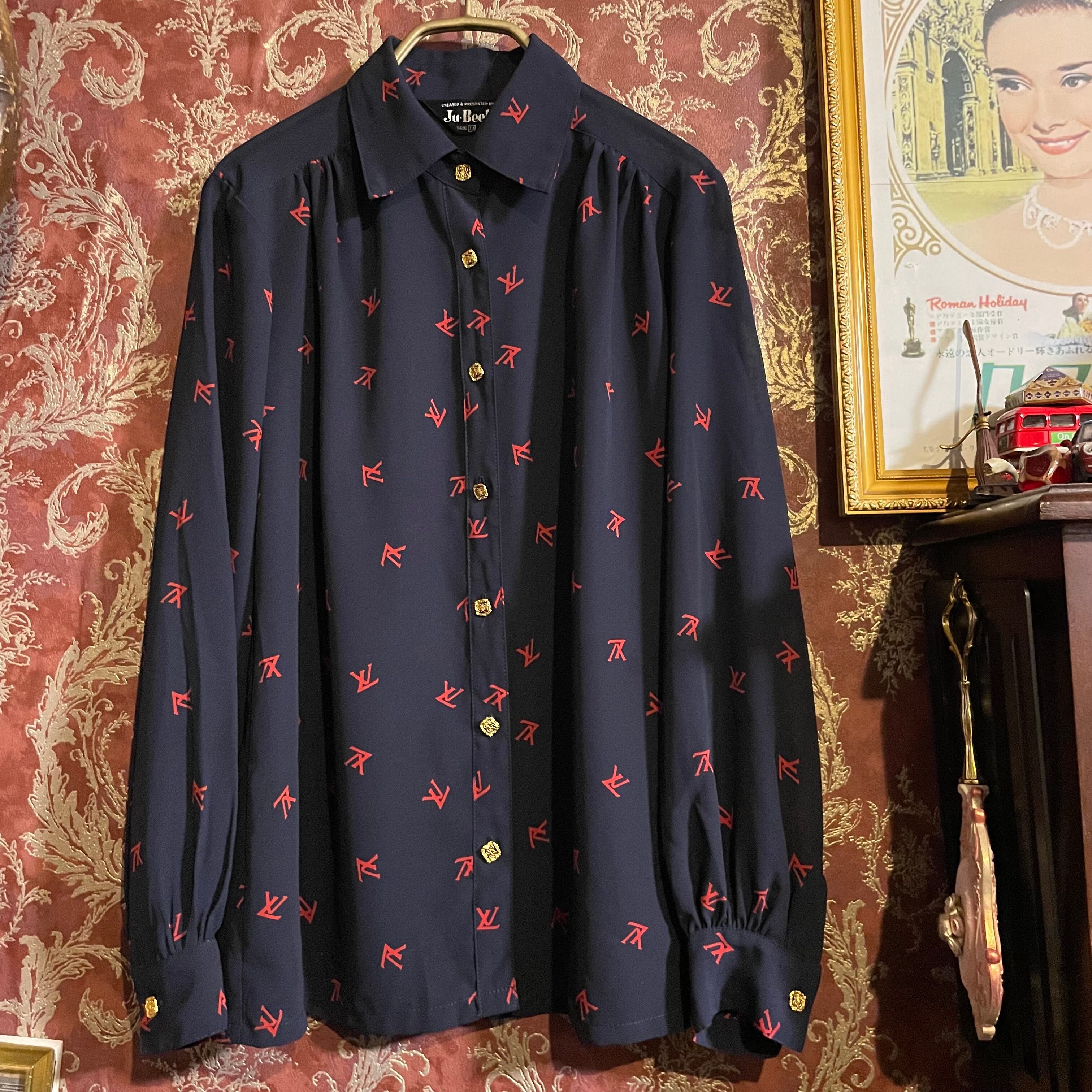 紺をベースに赤のLVロゴが映えるヴィンテージブラウスです。