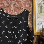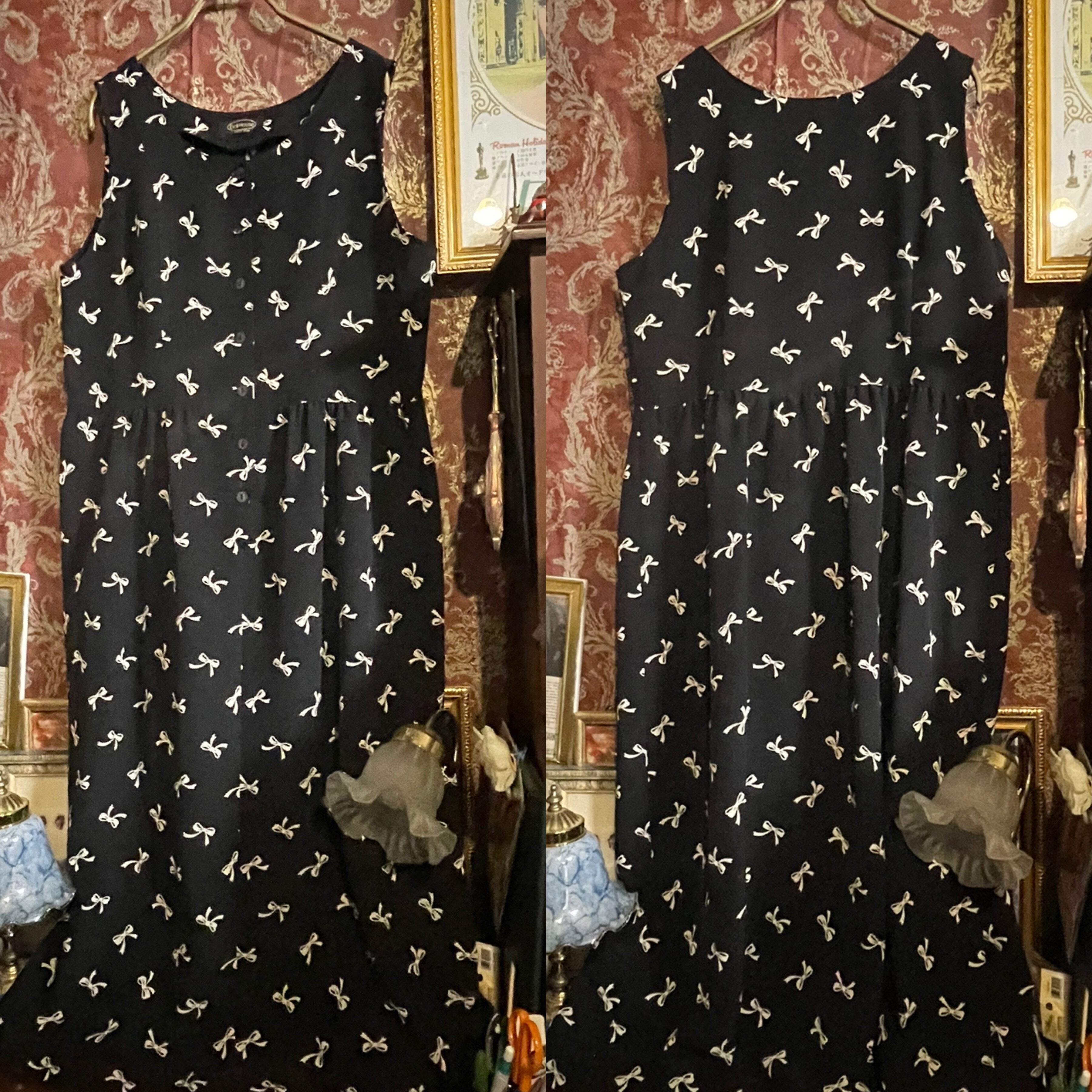 黒をベースに、白のリボン柄ジャンパースカートです。